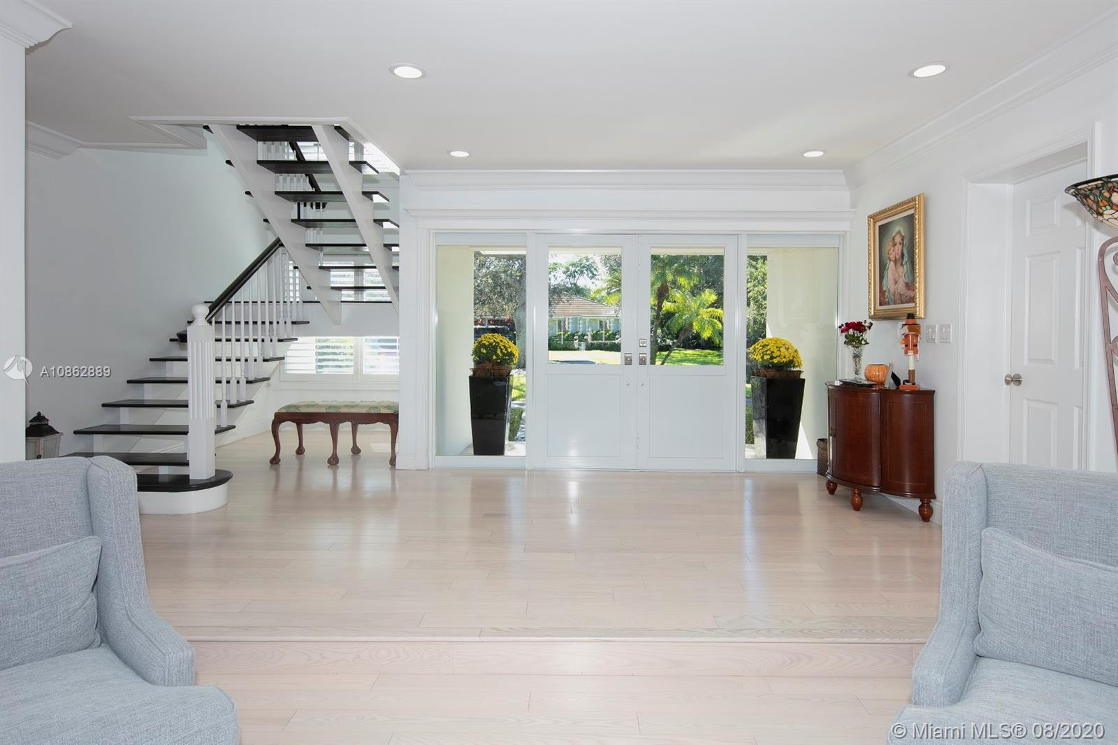 New price below the at “At Bank” appraised value. This home checks all the boxes! Pinecrest half acre corner lot with a circular driveway offers plenty of parking and green areas. Open and bright floor plan with wood and porcelain floors. Living room, kitchen and family room all open to pool patio and large covered terrace. Downstairs master suite with sitting area and 2 walk-in closets. Four bedrooms and two bathrooms upstairs. Large laundry room. All 2019 appliances. New floors in 2014. Other updates in 2014 and 2019. All impact windows and doors, Plantation shutters, additional driveway to 2 car garage.