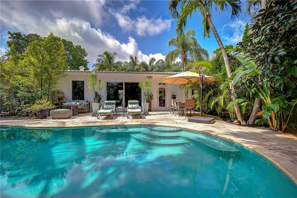 GORGEOUS MID CENTURY STUNNER - 3 BEDS; 2 BATHS; OPEN CONCEPT LAYOUT - THIS HOUSE HAS EVERYTHING AND ALL RECENTLY RENOVATED. EXTREMELY HIGH QUALITY WORKMANSHIP AND MATERIALS USED THROUGHOUT. SPLIT BEDROOM PLAN, ALL IMPACT WINDOWS AND DOORS, GOURMET KITCHEN WITH CUSTOM CABINETS, A 9 FOOT COOKS ISLAND, CHEF QUALITY APPLIANCES, AN UNDERCOUNTER ICE MAKER, BRAZILIAN QUARTZ COUNTERS AND GENEROUS LAUNDRY AND PANTRY. HIGH END WINDOW TREATMENTS THROUGHOUT WITH MOST REMOTE CONTROLLED. THE BACKYARD IS A TROPICAL OASIS - TOTALLY PRIVATE W/MATURE TREES ALL AROUND, GORGEOUS SALT WATER HEATED POOL W/ RAISED JACUZZI. MOSQUITONIX SYSTEM IN BOTH FRONT AND BACKYARDS TO KEEP THE PESKY MOSQUITOS AWAY. THIS HOUSE IS A DREAM.