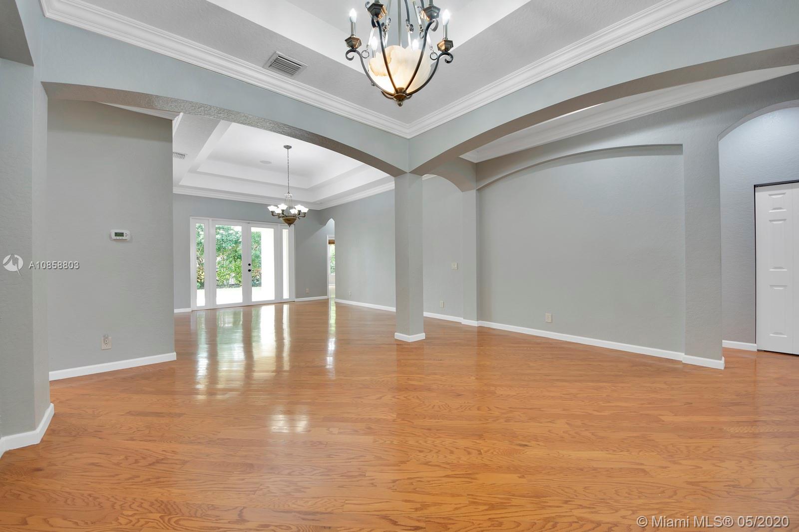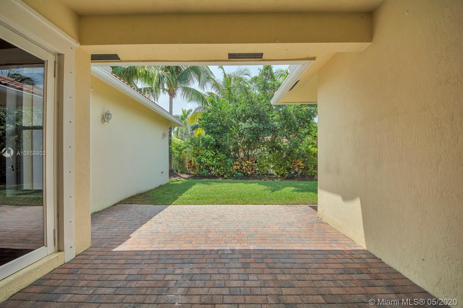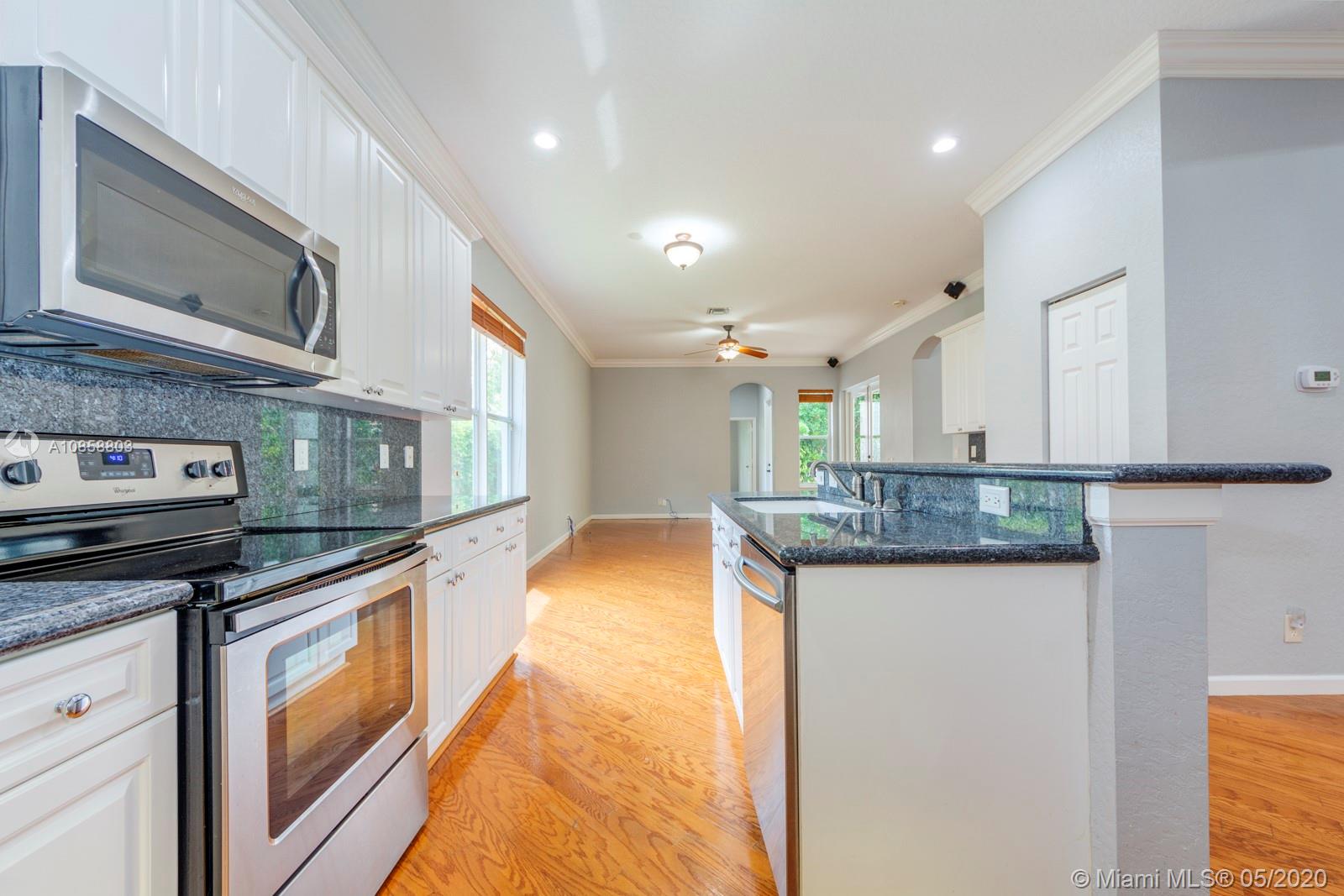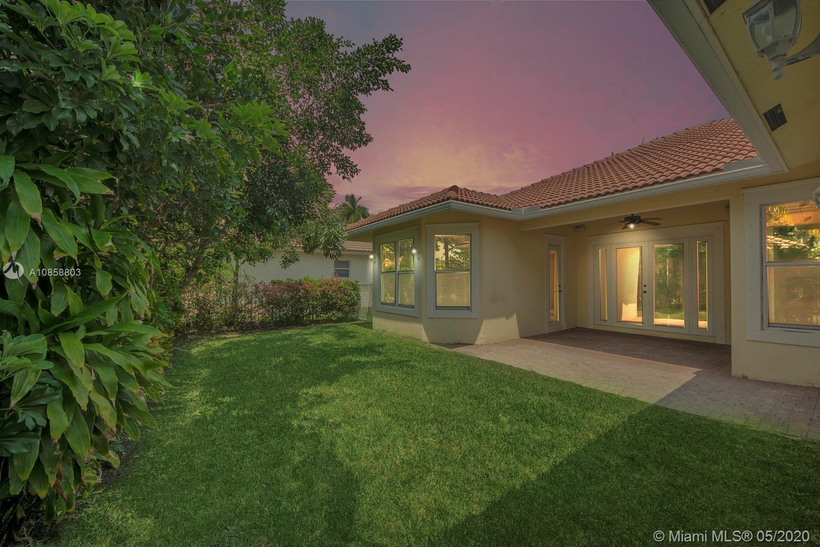 Fabulous four bedroom three bathroom one story home in Weston Hills Country Club. Upgrades include wood floors throughout, center island kitchen with stainless steel appliances, granite counter tops and snack bar overlooking family room. French doors open to covered patio for outdoor enjoyment and fenced yard surrounded by lushly landscaped for ultimate privacy. Triple split floor plan. Recently painted. AC 2017. Two car garage and circular driveway for easy parking. Guard gated community in the heart of Weston.
