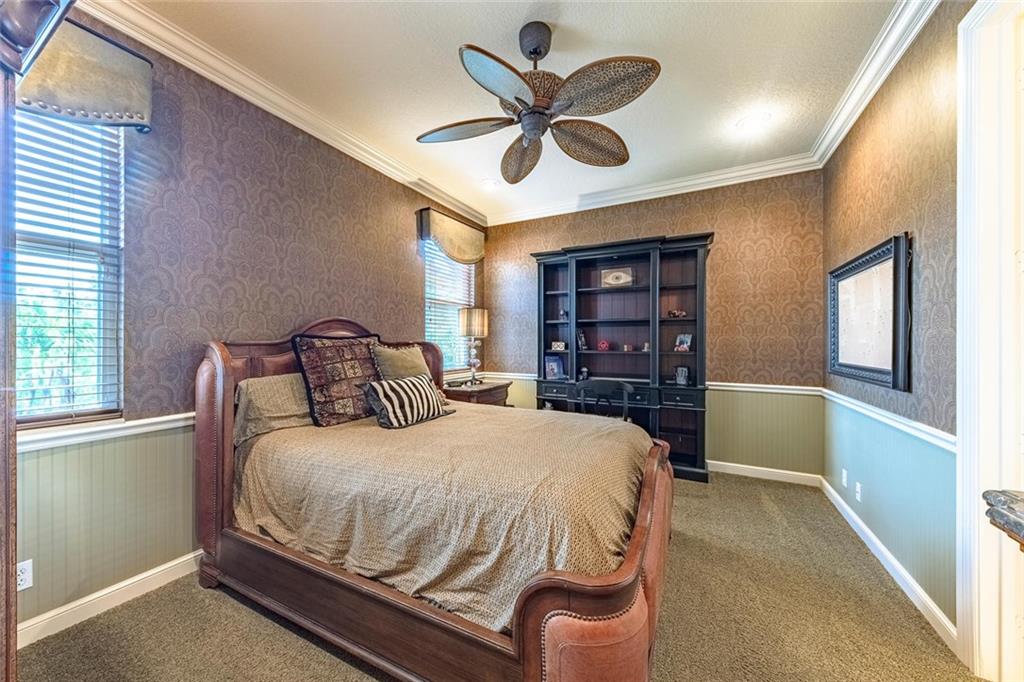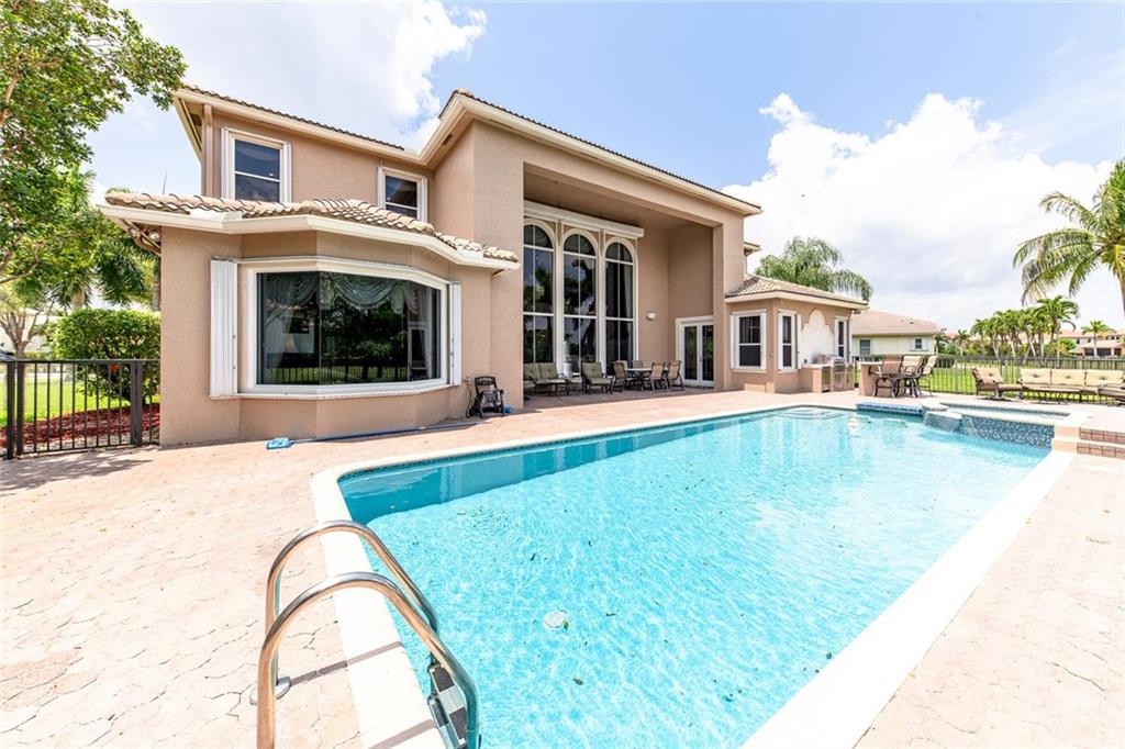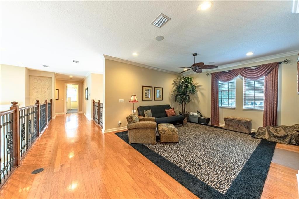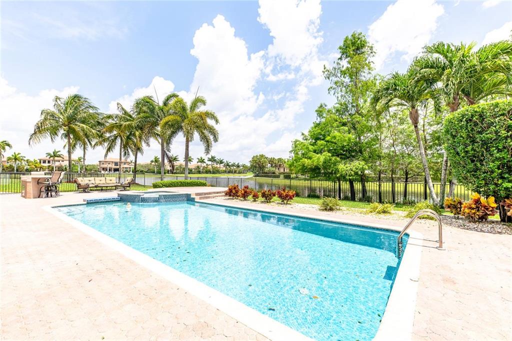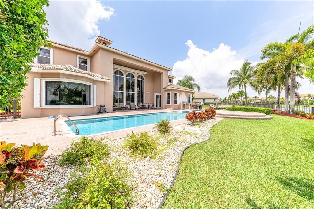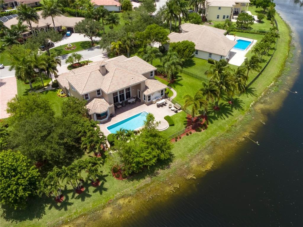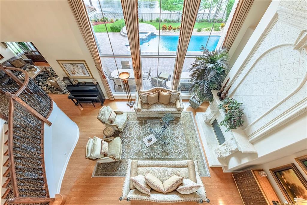 Breathtaking views--water as far as the eye can see! This stunning 1/2 acre estate boasts a circular driveway to a 4-car garage, & per blueprint, offers 4821 sf under air! Outstanding features incl: exquisite hardwood flrs; living room w/2-story windows & custom FPL; gorgeous built-ins in family rm, office & upstairs loft/6th brm; butted glass windows viewing lake from breakfast rm & MBR; beautiful kitchen w/custom cabinets, granite counters & walk-in pantry; crown molding, numerous hi-hats & surround sound; MBR & office down--5 brms w/3 baths (2 Jack & Jill & 1 en suite) upstairs; all custom closets; spacious covered patio w/outdoor kitchen (DCS grill, side-burner, bar w/storage, marble tile, etc); partially fenced yard, spa & oversized, htd pool w/swim-up bar & stools. Five star view!!