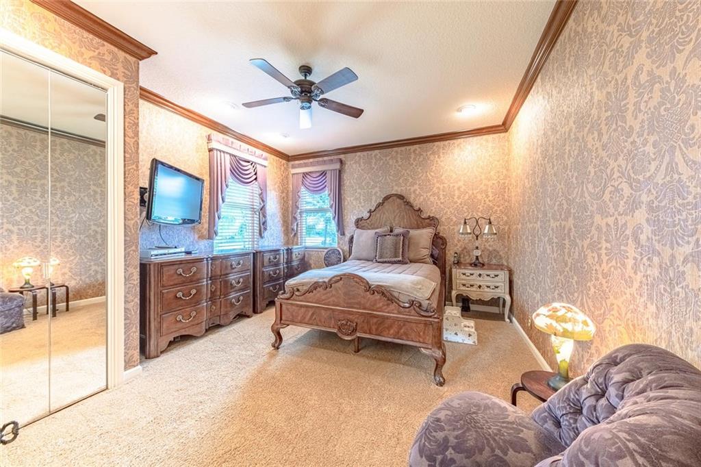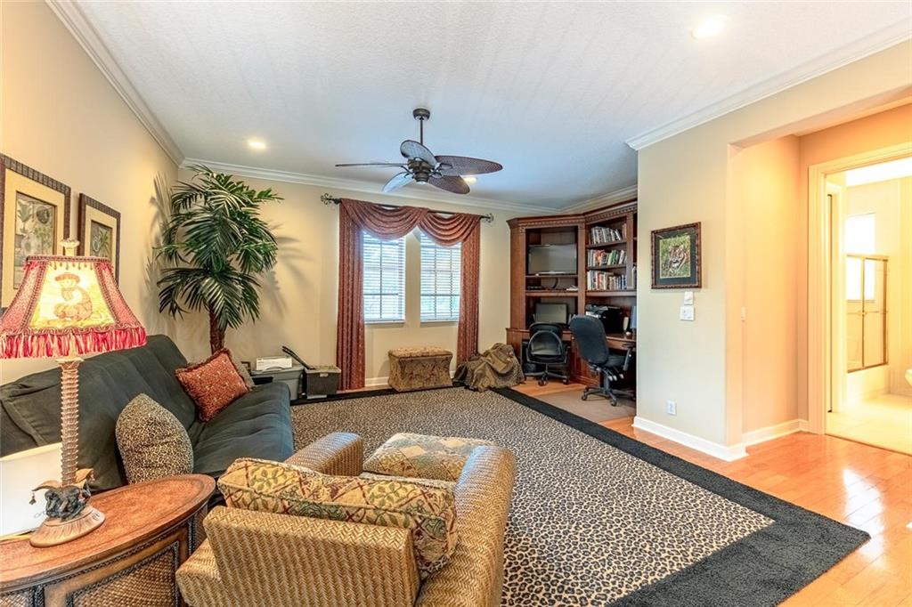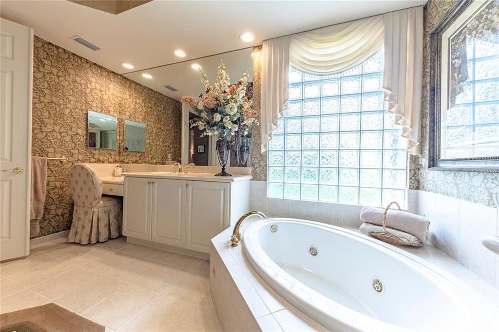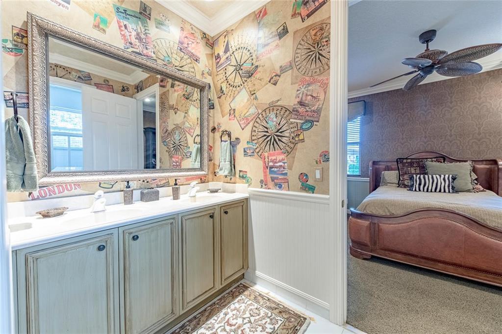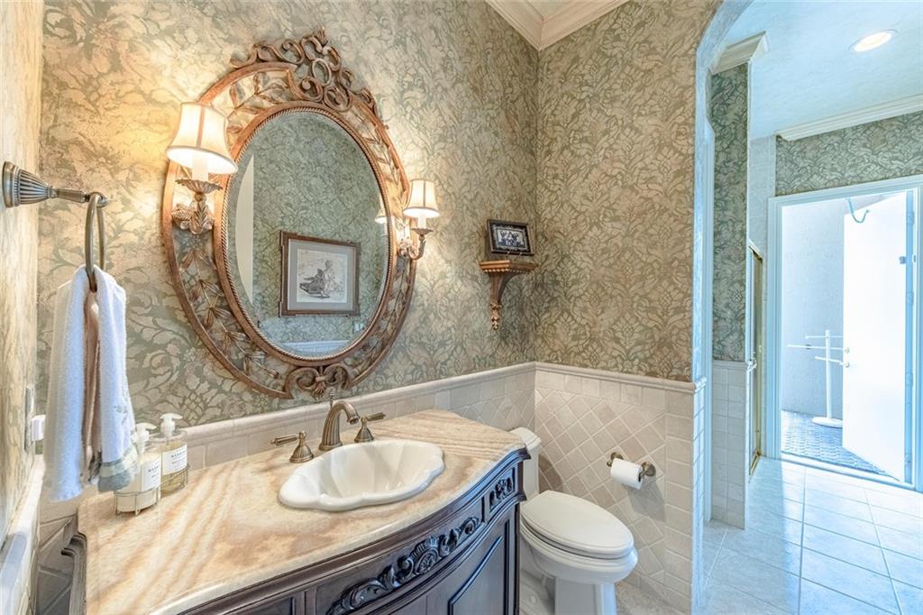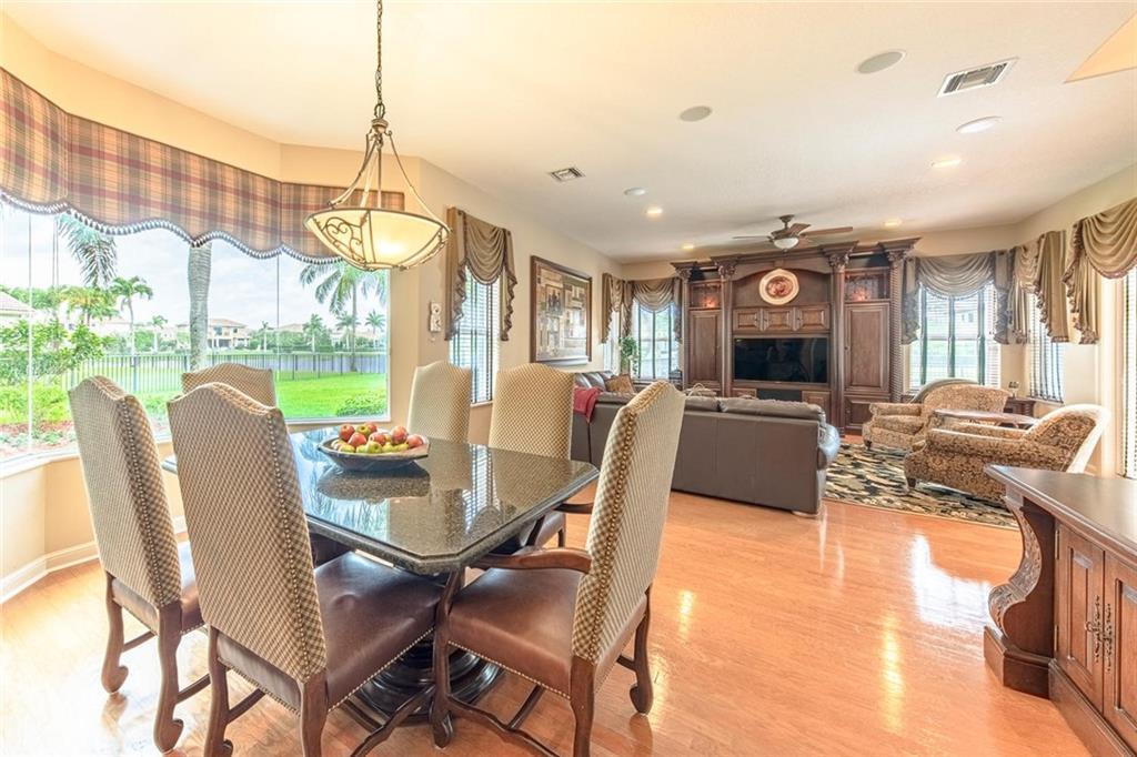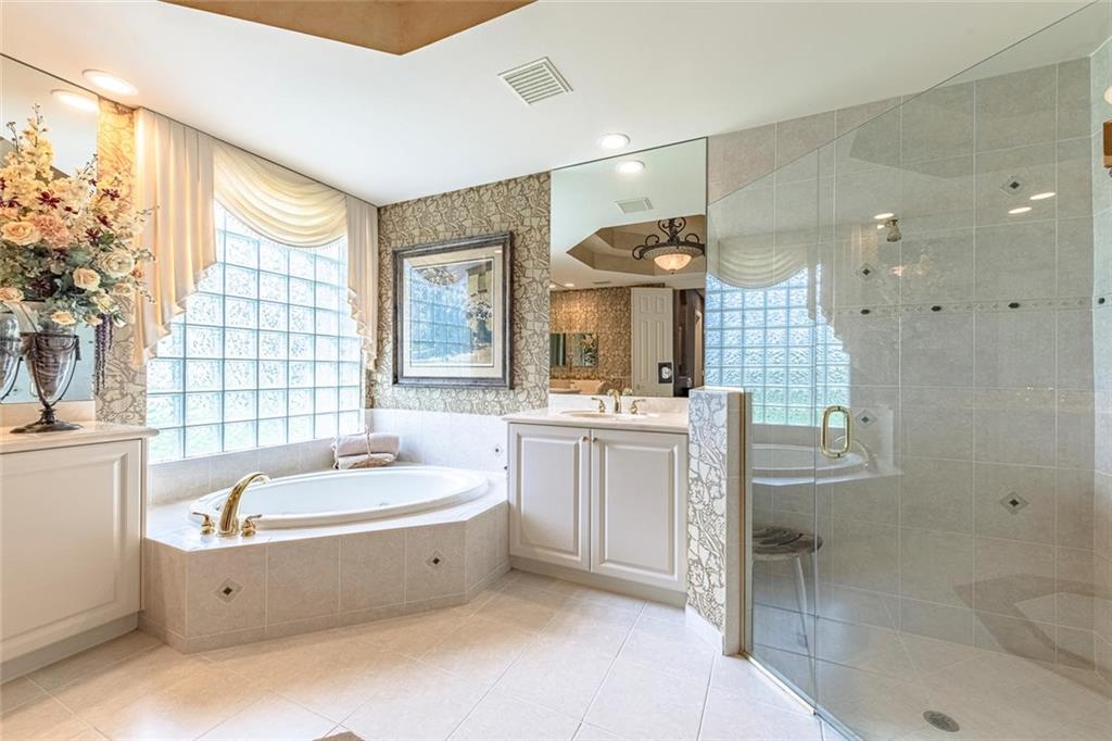 Breathtaking views--water as far as the eye can see! This stunning 1/2 acre estate boasts a circular driveway to a 4-car garage, & per blueprint, offers 4821 sf under air! Outstanding features incl: exquisite hardwood flrs; living room w/2-story windows & custom FPL; gorgeous built-ins in family rm, office & upstairs loft/6th brm; butted glass windows viewing lake from breakfast rm & MBR; beautiful kitchen w/custom cabinets, granite counters & walk-in pantry; crown molding, numerous hi-hats & surround sound; MBR & office down--5 brms w/3 baths (2 Jack & Jill & 1 en suite) upstairs; all custom closets; spacious covered patio w/outdoor kitchen (DCS grill, side-burner, bar w/storage, marble tile, etc); partially fenced yard, spa & oversized, htd pool w/swim-up bar & stools. Five star view!!