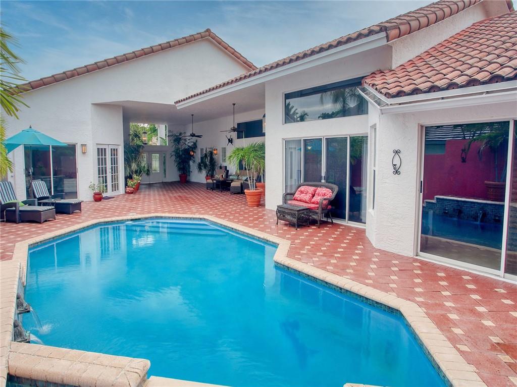 BACK ON THE MARKET AND MOVE IN READY WITH NEW A/C UNITS AND NEW WATER HEATERS. Spectacular courtyard home with 4 bedrooms/3 bathrooms in desirable Eagle Trace Community. Separate guest house offers:one bedroom/bathroom and walk in closet. This space is ideal for an office, gym or in-law quarters. This open concept home is perfect for entertaining.Pool with a raised spa and lots of covered outdoor space. Circular driveway for extra parking. Upgraded bathrooms; kitchen has stainless steel appliances and granite counter-tops. Low HOA fee of $210.00 per month includes:3 guarded security gates, tot lot, tennis, basketball and pay as you play golf with no mandatory membership. Owner has converted two bedrooms into one large bedroom if desired, new buyer can convert back to its original design.