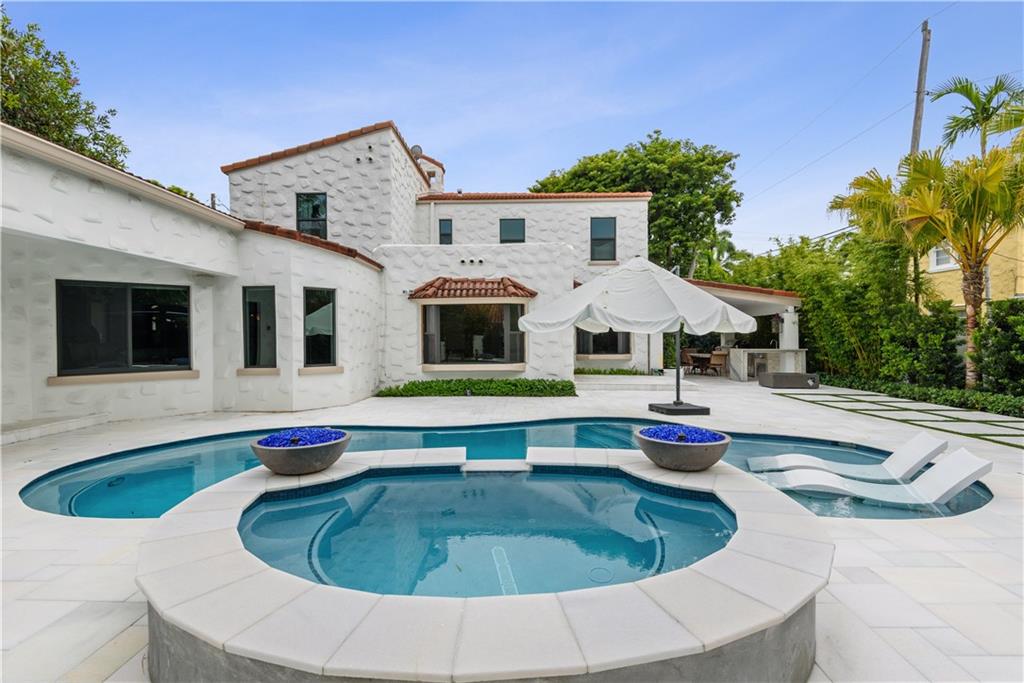 Beautiful Francis Abreu home!! This gated 2-story residence is located in the highly desirable Idlewyld Community. Spanish-style architecture with substantial upgrades. Light and bright with a warm welcoming feeling upon entrance. Features include chef's kitchen with high end appliances, large ground level master suite with spa bathroom, family room, dining room, cabana bath, office & fireplace. 2 bedroom suites and loft area upstairs. Gorgeous French doors open up to the ultimate outdoor entertaining area which includes a private garden, fire pit, covered loggia, gazebo, summer kitchen, pool with tanning shelf & outdoor shower! All impact doors and windows. Walking distance to the Beach and just moments to Las Olas shopping and dining!