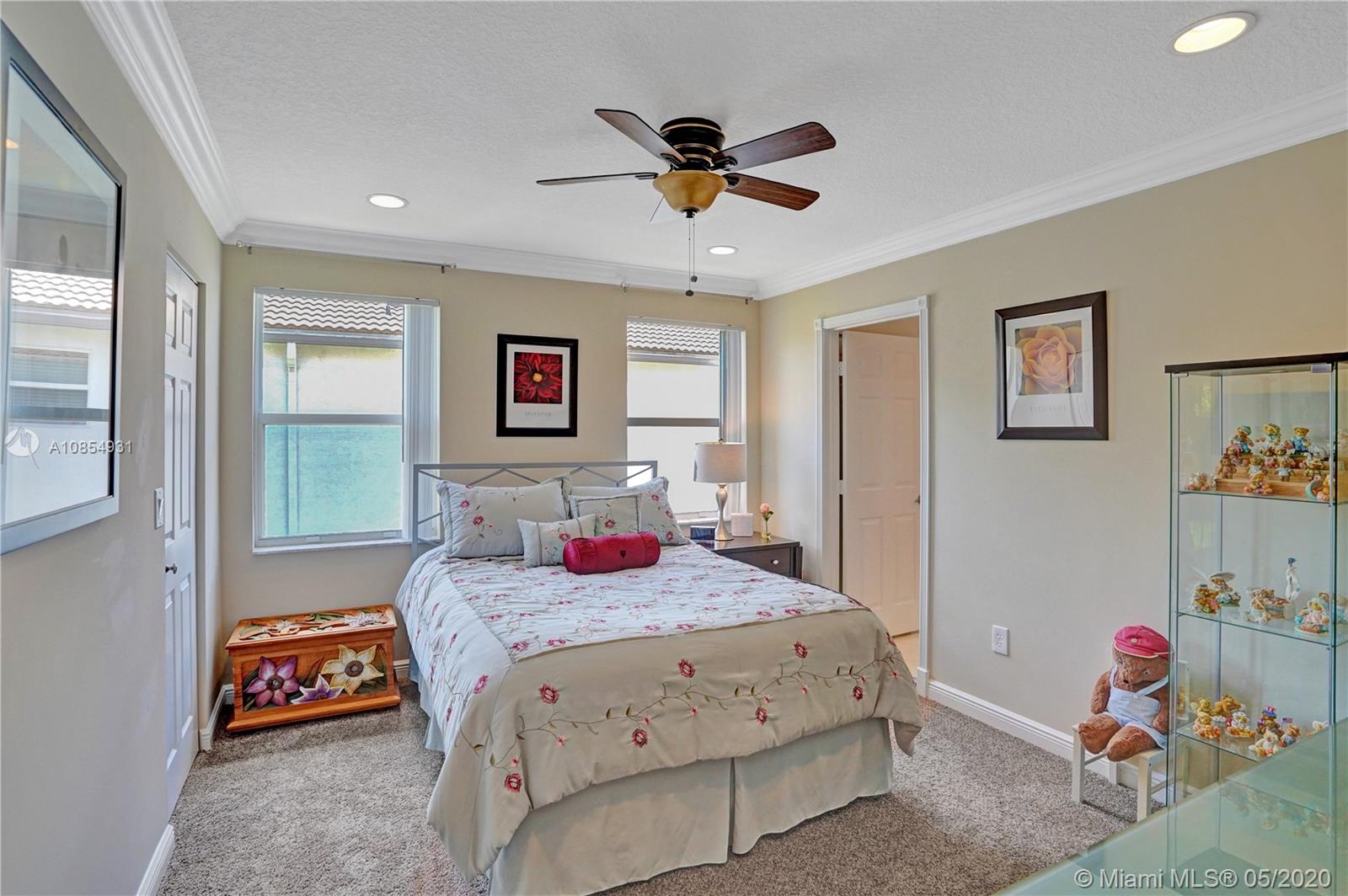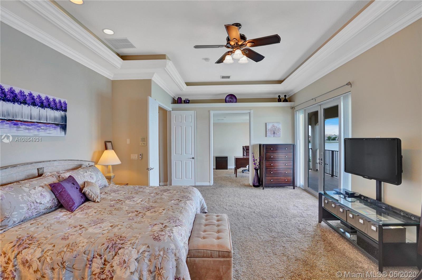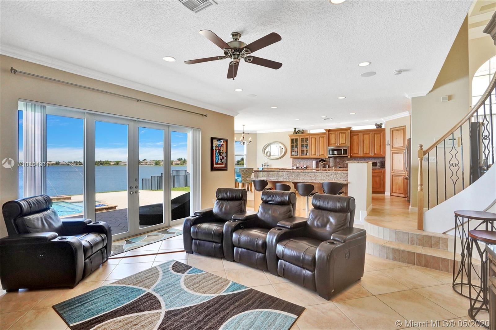 Location! Location! Longest lakeview in Miramar! From the moment you step in you are drawn to the expansive west facing lakeview. This TURNKEY home is a must see! Large, open and airy 6 BR 4 1/2 Bath home has ALL the upgrades and is move in ready.20x20 ceramic tile in all living areas. Upgraded solid wood pecan cabinets with 2 ISLANDS! All granite counters & newer SS appliances.Gorgeous crown molding in EVERY room . 2 new Carrier AC's and New Water Heater. Master Bedroom spans the entire back of the house with large private covered balcony. Master Bath is gigantic and is a separate his and hers with shower entry from both sides. Gorgeous professional landscaping with fountain. 5 star resort community with easy access to I 75. VACANT and SAFE TO SEE! Hurry before your dream home is gone.