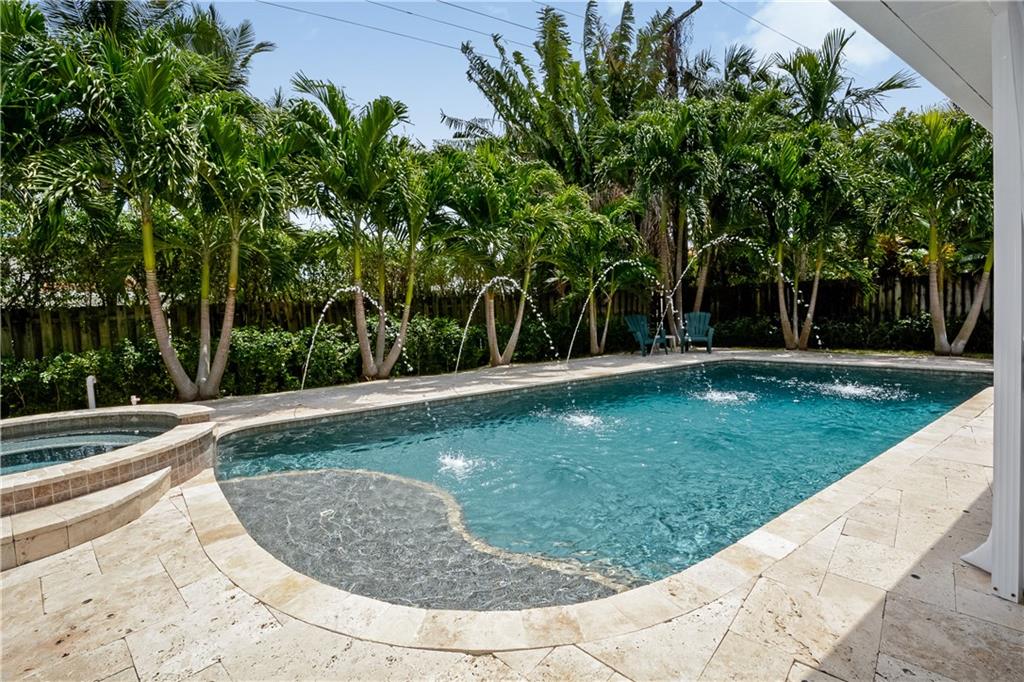 Ready to move in, completely remodeled. Marble floors, granite counters, impact windows, fireplace, split floor plan, open area for liv, din and kit. Heated 15x30 pool/hot tub, w/ blue Pebble Tech finish, shallow area & fountains. 2 separate covered outdoor sitting areas w/ fans, hot/cold outdoor shower, full 2 car garage, 2 sheds. Backyard fully fenced in, mango & avocado trees, large lot & circle driveway for easy access & room for 8 cars. Pleated shades, drapes. New roof, A/C & upgraded appliances.