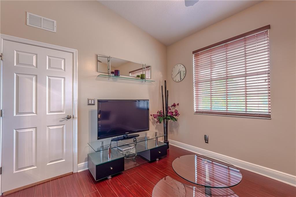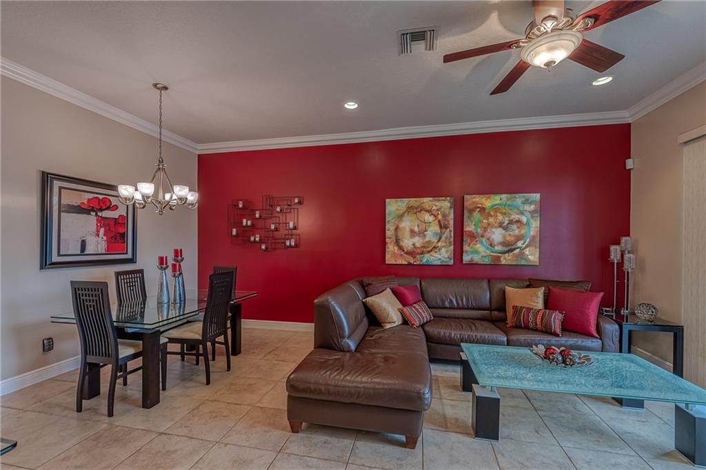 Immaculate 4 Bed 2.5 Bath 1 CG Townhouse overlooking the Lake! 4th Bedroom currently being used as a Den. Den can be converted back to 4th bed with a door. 2 Dogs up to 50lbs allowed. Hurricane Shutters. The Foyer entry opens up to a spacious living room overlooking a huge screened-in patio, the width of the home, w/ Lake Views. This unit is very upgraded w/ Tile floors Downstairs & beautiful Laminate Wood upstairs. Crown Moldings,Smooth Walls,Knockdown texture ceilings (No Popcorn) add to the contemporary look. Upstairs Master & Guest baths boast dual sinks & Granite Countertops. Master has a Lake view with Walk-In California Closet. All closets have built-ins. Front Loading Washer & Dryer upstairs. Large 1 CG w/ Attic storage & wall cabinet built-ins. Newer A/C. Community Pool. WOW!