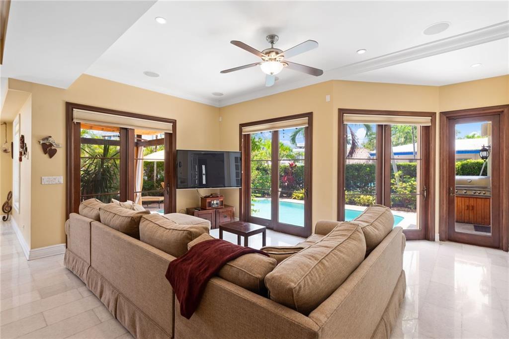 Rebuilt (circa 2006) Tucked Away Location Just East of Victoria Park Rd. 10 Ft Ceilings on Both Levels. 8 Ft Interior Doors. Impact Glass. S-Tile Roof Replaced circa 2006. Newer Seawall to New Code with Trex Dock & 15,000+ Lb. Boat Lift. Heated Salt Water Pool & Marble Paver Pool Deck. Outdoor & Indoor Gas Lanterns. White Marble Floors Throughout. Kitchen has Cherry Cabinetry, Granite Tops, Natural Gas Cooking, Stainless Appliances. 2B/2BA on first Level plus Additional In-Law Suite with Kitchenette. The second Level has Open Living Area with Vaulted Ceiling & Fireplace. Master Suite has Wet Bar, Two Walk-in closets & Access to an Outdoor 20' x 12' Terrace. Master Bath has a Spa Tub, Separate Shower, & Dual Sinks.