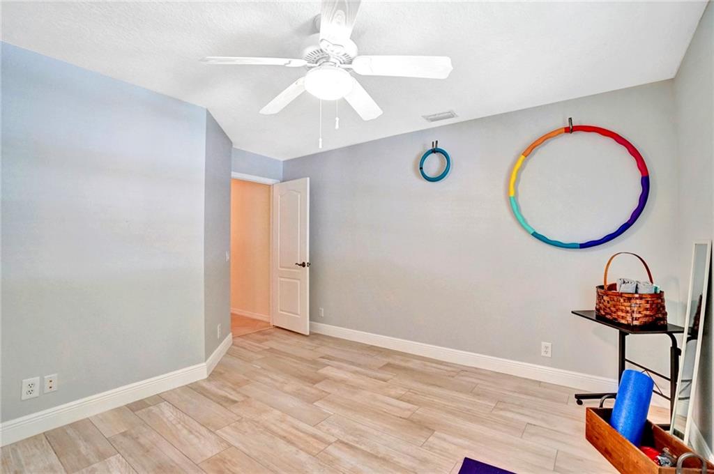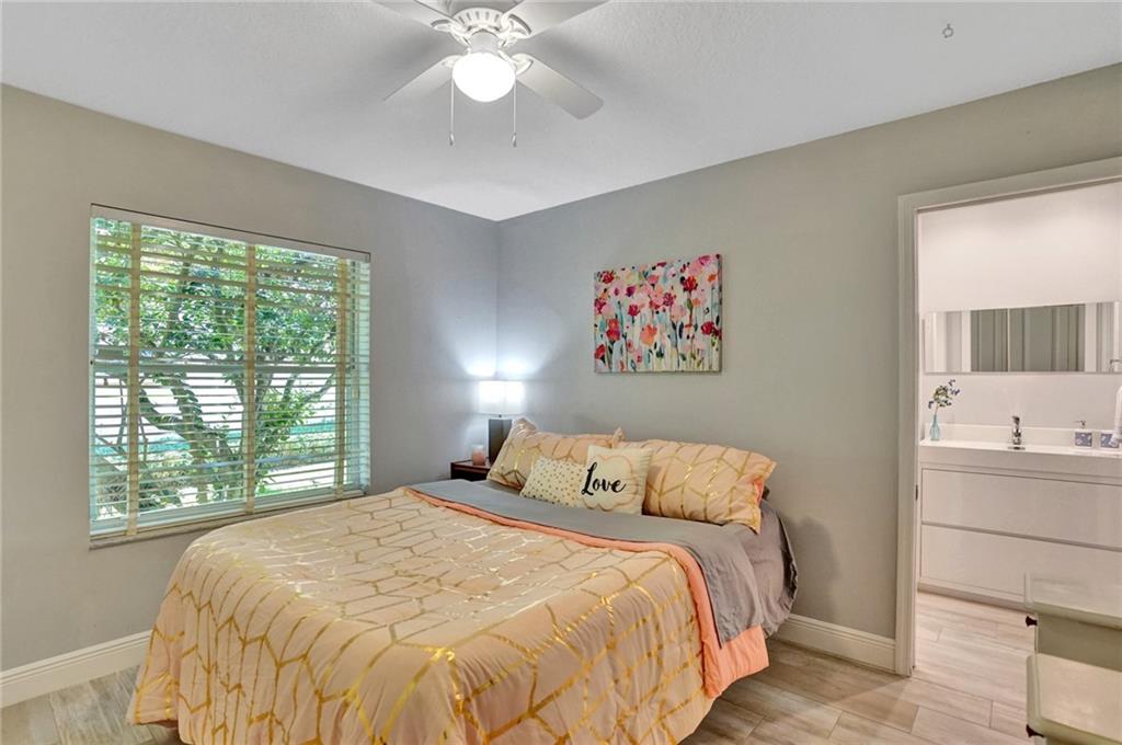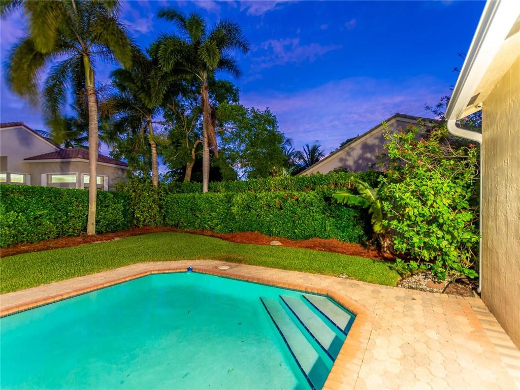 Nestled across a picturesque passive park, this beautifully updated 5BD/4BA/2CG single story of almost 3000 SF/AC, has a peaceful, private backyard retreat of over 1/4 acre, with POOL, covered patio, gorgeous manicured landscaping illuminated by outdoor lighting & tons of room for play! 2019 remodeling includes a BRAND NEW ROOF, NEW AC, NEW PORCELAIN FLOORING in secondary bedrooms & NEW wood laminate in master bedroom. 2018 updates include three stunning completely REMODELED modern bathrooms & NEW extra capacity washer & dryer. Split floor plan with spacious family room, breakfast area flanked by large windows & granite kitchen with stainless appliances including NEW dishwasher & microwave. Pre-wired cameras, mostly all ACCORDIONS. Guard-gated, comm pool, playground, ball park, A+ schools!