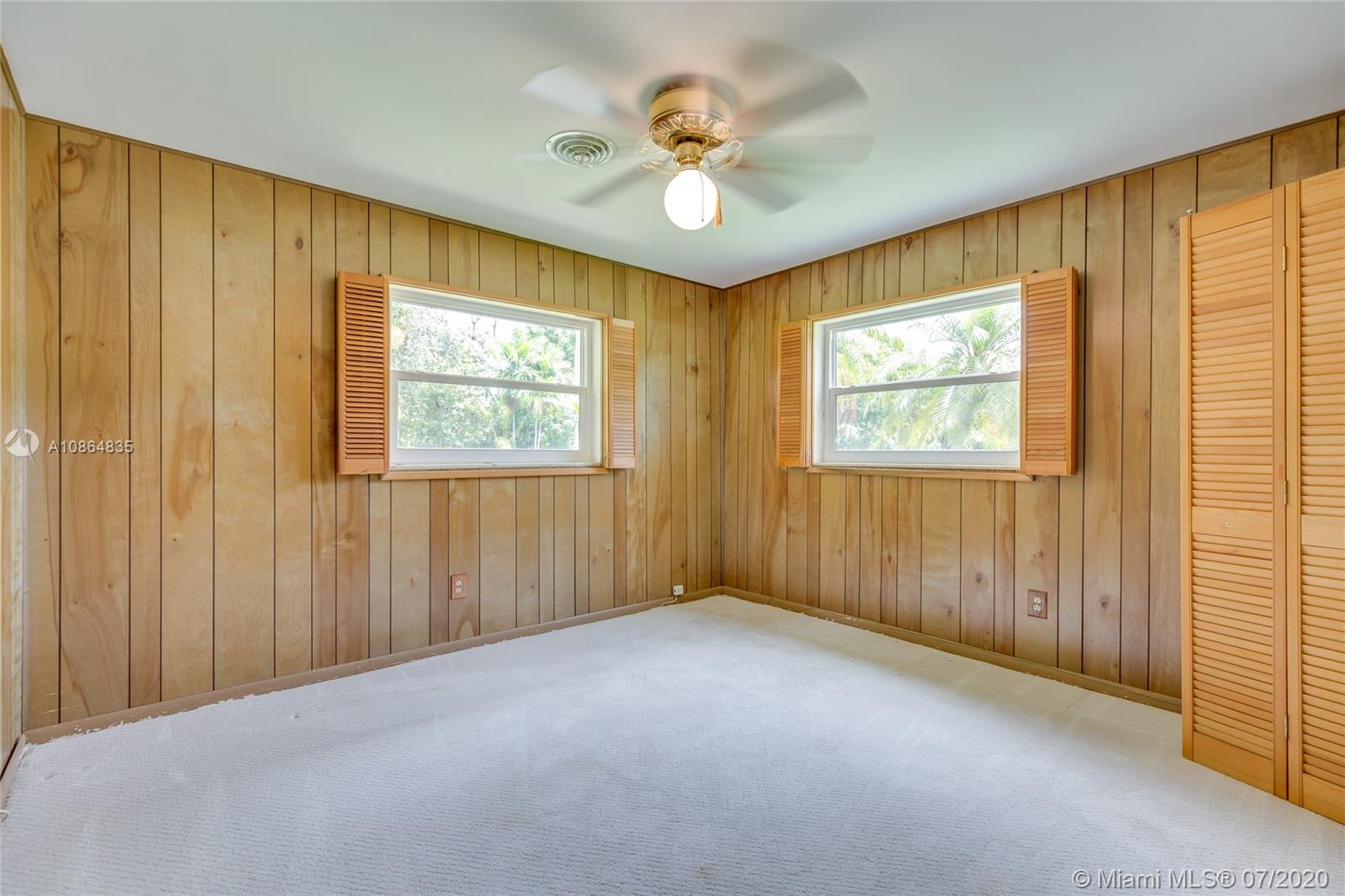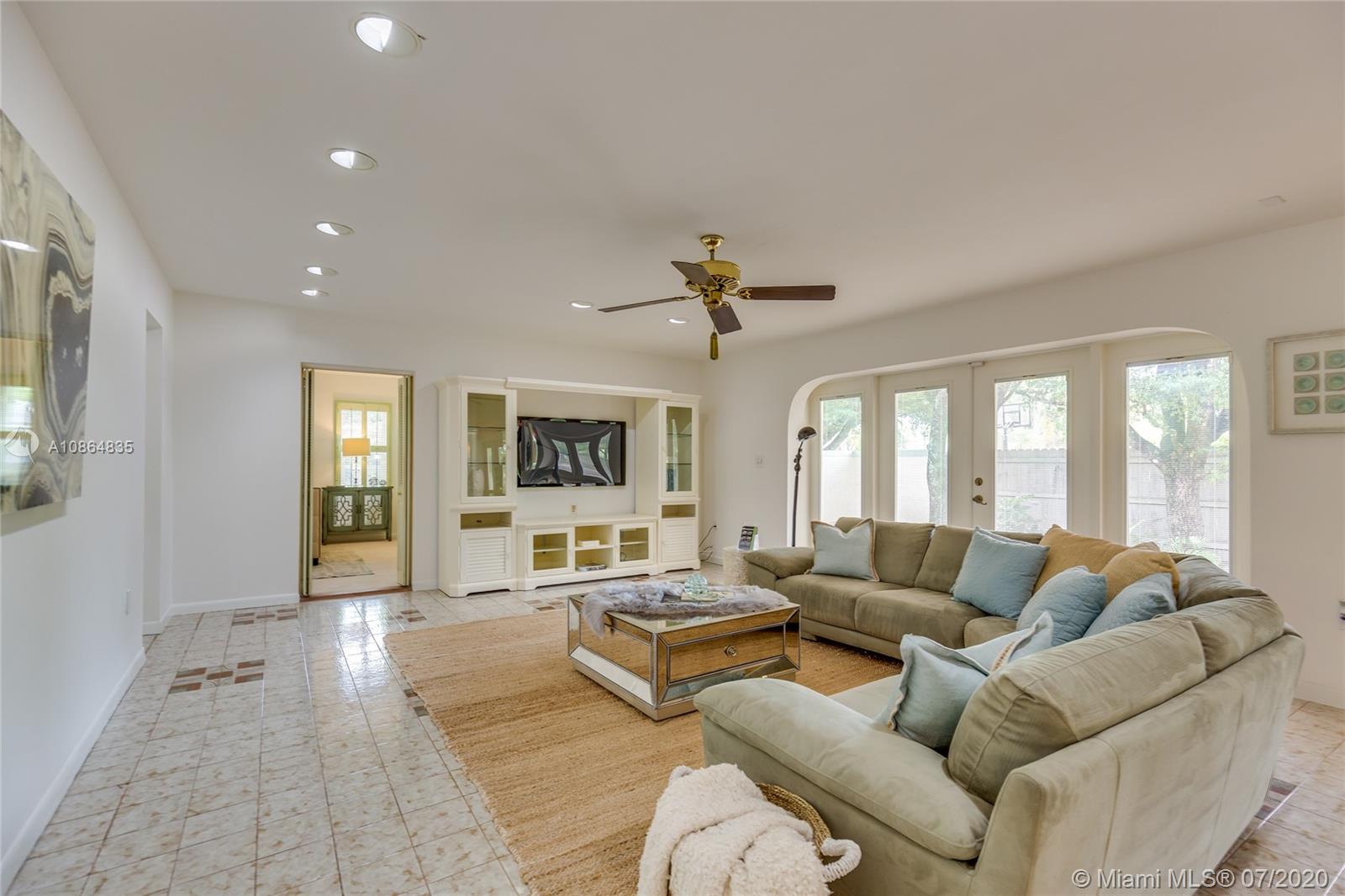 Fabulous opportunity in N. Pinecrest. Update this charming 3 bedroom, 2 bath, 2,300 SF home on a quiet, no-through street in a wonderful family neighborhood. This bright and cheerful home features an open floor plan with a sun lit living room that flows to a huge family room, large enough to include a bar and gaming area. French doors extend all along the family room providing beautiful views of the tree-shaded brick patio. The private, walled back yard has room for a pool and expansion on this 1/3 acre corner lot. This home offers a surprising number of great options for updating. It has impact windows, a metal roof, all new copper plumbing and a 1-car garage. All Pinecrest schools.