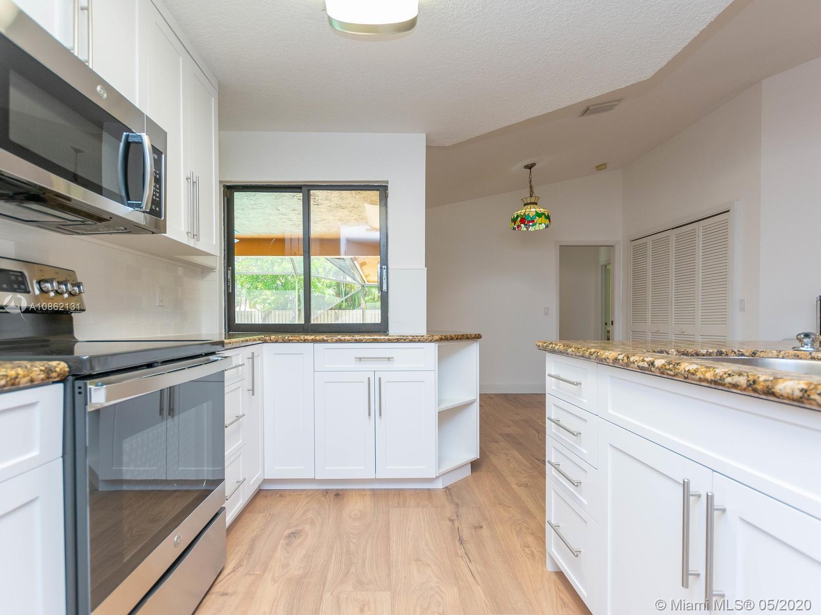 MOVE IN READY AND UPDATED TO SELL FAST, THIS FABULOUS ONE STORY CORNER LOT 4/2.5 WESTON HOME WAS RECENTLY REMODELED. NEW LARGE PLANK FLOORING THROUGHOUT MAIN AREA! WARM & INVITING VIBES FLOW FROM THE MOMENT YOU ENTER THE COZY SITTING ROOM W/ POOL VIEW. FROM THE LOVELY MODERN KITCHEN W/ BRAND NEW APPLIANCES AND CABINETS TO THE FRESHLY PAINTED INTERIOR, TO THE EXTENDED COVERED PATIO WITH ROOM FOR DINING AND LOUNGING YOU CAN ENJOY & ENTERTAIN IN STYLE. COMPLETELY FENCED BACKYARD, NEWLY SCREENED POOL WITH LOTS OF GRASS SPACE TO PLAY. WALK ACROSS THE STREET TO TOP RATED ELEMENTARY SCHOOL, MULTIPLE PARKS WITH WALKING TRAILS AND SHOPPING, DINING AND ENTERTAINMENT AT NEARBY WESTON TOWN CTR. SEE 3D TOUR AND VIDEO OF THIS METICULOUSLY CARED FOR UPGRADED HOME WAITING FOR NEW FAMILY TO MAKE MEMORIES.