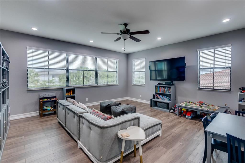 Popular 4500 sf expanded Laurel model sits on expanded lot. Space for a large family or suite for childcare. 5BR PLUS Loft & Office & Media Room. Full bedroom & bathroom downstairs plus large laundry room. Open concept kitchen, Gas Stove, large dining room, formal living room, large family room. Upstairs a large master suite, en-suite bedroom w/ bath, guest bedrooms, bonus room, another bathroom & Loft. This is the most coveted floor-plan. Outside has a large yard to play and a brand new modern heated saltwater pool w/ Jacuzzi. Covered patio & Summer Kitchen for rainy days. Hurricane Ready w/ Generator Powers whole house including both AC units automatically when power is lost. Rainsoft water filtration system. A+ Rated Schools, Guard Gated Community, Clubhouse w/ Resort Style Amenities.
