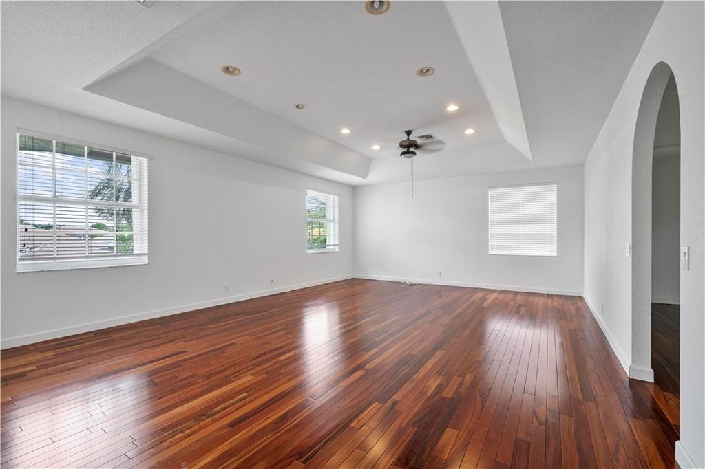 Lakefront +3400 SQ FT home with wide water view in gated Pelican Isle of Coral Springs. 2nd floor has Huge 28x19 game room with real hardwood floors as well as in all 3-upstairs BR's including in-law suite! Master BR/ bath on 1st floor, double vanity,roman tub and shower. 16x16 ceramic tile floors downstairs with 42-inch Oak kitchen cabinets and granite counter-tops with an island overlooking the family room. Updated SS appliances including front load W/D. Accordion shutters on all openings & levels. Newer Dual A/C units, Lots of fruit trees in backyard (mango, jack, etc. Spacious covered/screened patio fenced-in back yard with gorgeous lake view. Low HOA only $135/mo covers lawn, landscaping, sprinklers,and irrigation. Close to top-rated schools, shopping and to Sawgrass Xpressway.