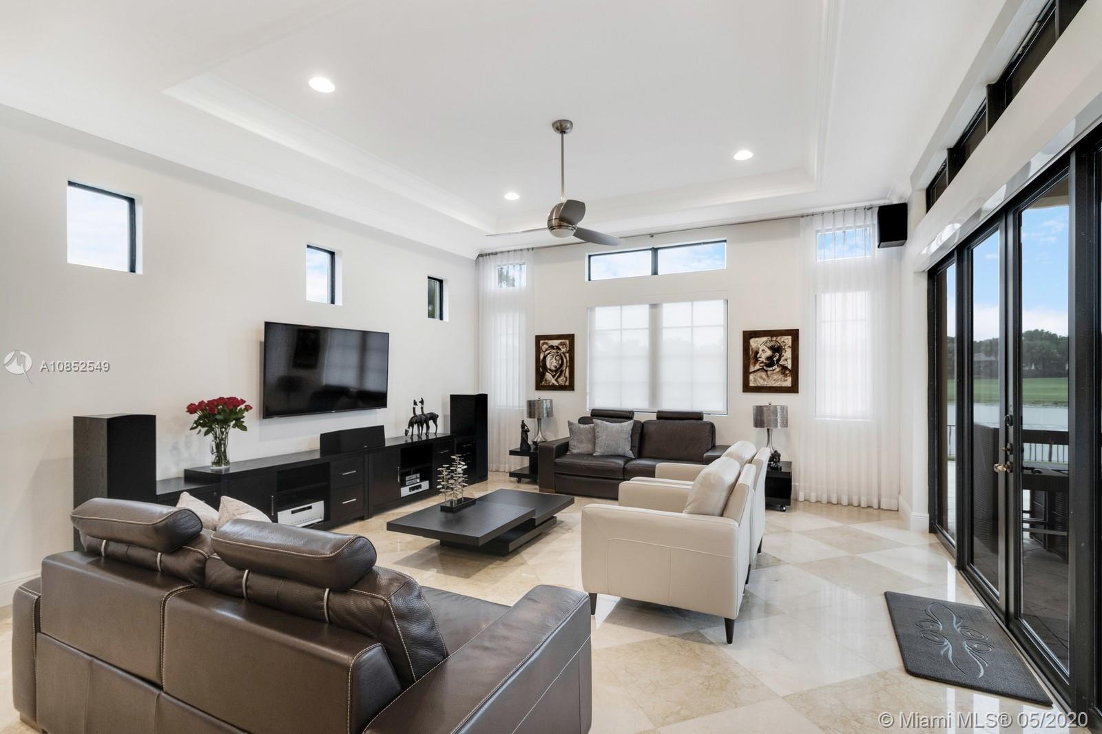 HUGE PRICE CUT ! Step inside and marvel at the merging of classic style and modern sensibilities in this exciting 8 bedroom (incl. office & game rooms) home featuring a 2-story open foyer. Designer lighting, profile crown moldings, impact glass, a private study, gorgeous living room with 3 levels of windows and loft ceilings, formal dining room with tray ceiling and butler’s pantry. Kitchen island, top of the line appliances w/ wine cooler. Gorgeous oversized patio offers entertainment venues, heated pool and spa, and striking landscaping with special lighting. Enjoy golf view of 4th hole across the serene lake from almost every window and outside from under the custom designed pergola or while BBQing in the summer kitchen setup. Full access to club (golf/tennis/spa/gym/dine)