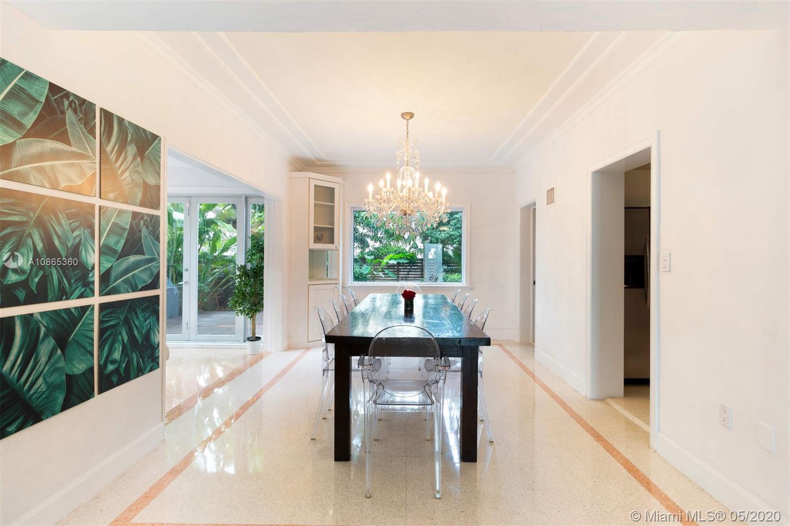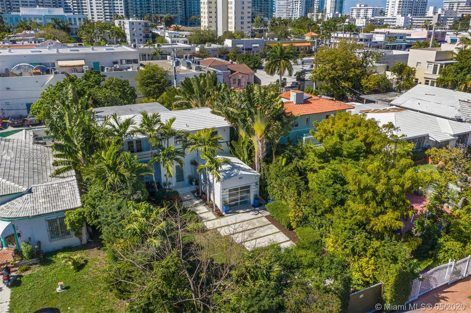 An ultra-chic home that has been updated while maintaining it's original era charm and architectural details. Complete privacy and conveniently located 2 blocks off Lincoln Road, this Art-Deco home with 5 bed, 4 bath, 2,910 SF under AC, is immersed with East Exposure natural lighting, terrazzo flooring, modernized interior design and custom built-ins. Its open concept-living areas and extended outdoor patio encourages ample family gatherings, entertaining, and dining. Located on a large fenced-in lot with a lush backyard complimented by fruit trees and enough space for a large private pool. Minutes from outstanding schools, world-renowned shopping/dining, and walking distance to the most beautiful beaches.