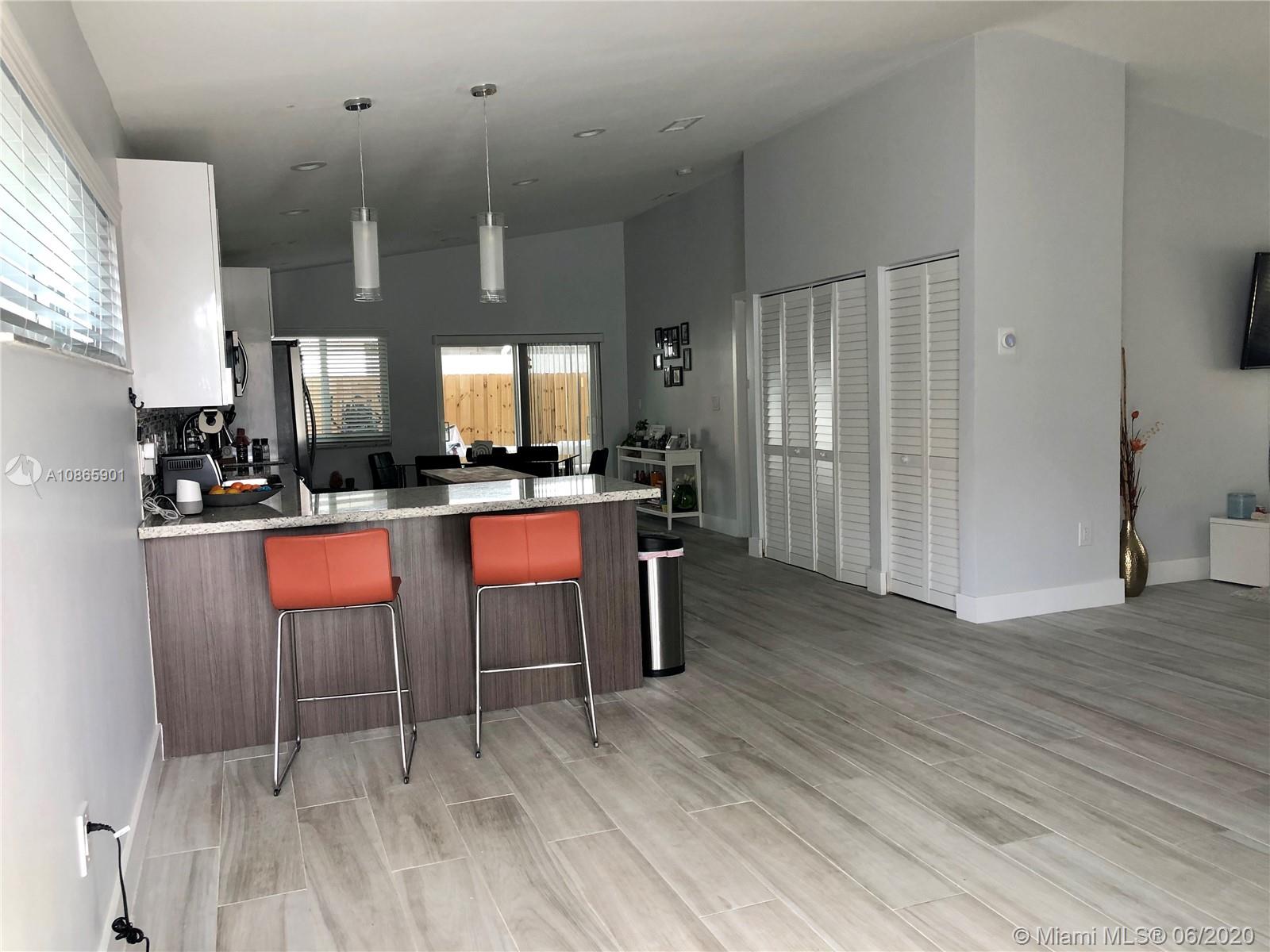 Completely remodeled home with 3 bedrooms plus den 2 bathrooms and nice covered patio. Open floor plan with amazing upgrades as stainless steel appliances , Quartz counter tops , modern kitchen cabinet , High efficiency washer and dryer , central control for cable /internet connections, nest a/c temperature control , Ring camera door bell for security, new AC unit and water heater , impact windows , porcelain title flooring throughout. Ready to move in. Highly desirable neighborhood close to major highways , parks , schools, shopping and entertainment.