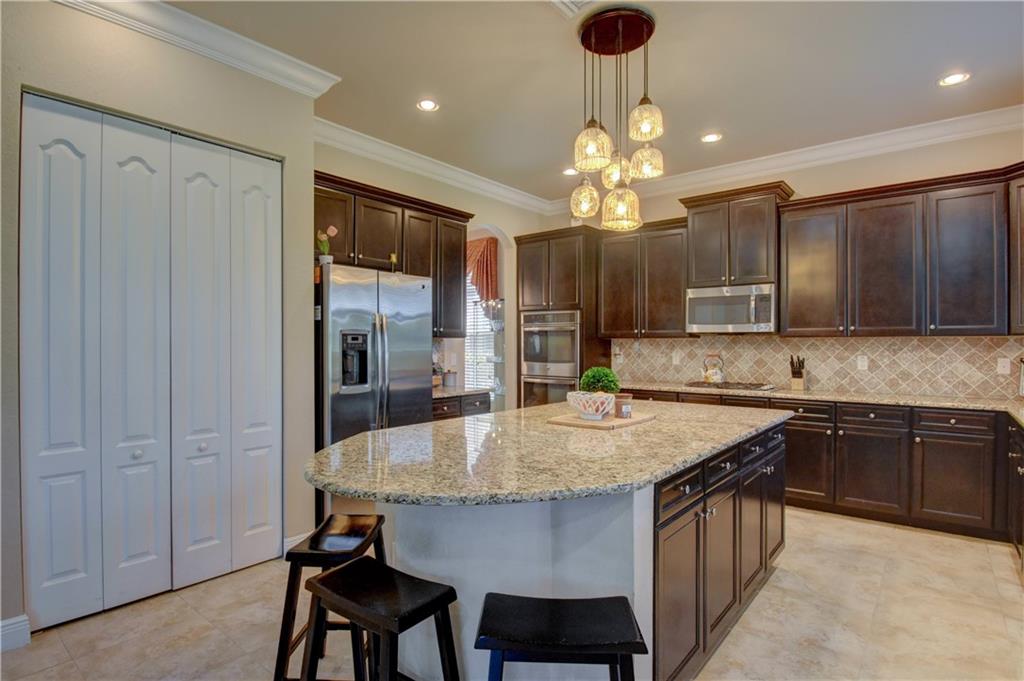 Over 3500 sq ft, 4 bedrooms, 4 bathrooms, loft, 3 car garage, and the most amazing kitchen, gas cooking. This gorgeous on half a cul de sac home in Resort Style Community of MiraLago. Double ovens, gas range, gas dryer, tank-less water heater, screen patio, over-sized yard, fenced, impact windows and doors, all CBS construction, granite & dark wood kitchen cabinets, crown moldings. Amazing community with resort-style clubhouse a few minutes walk, pool, gym, tennis, playground, and much much more. Covered outdoor patio with serene lake view. The best of MiraLago is right here.