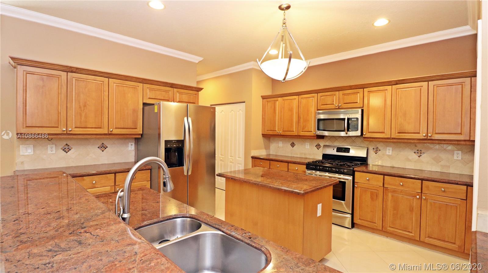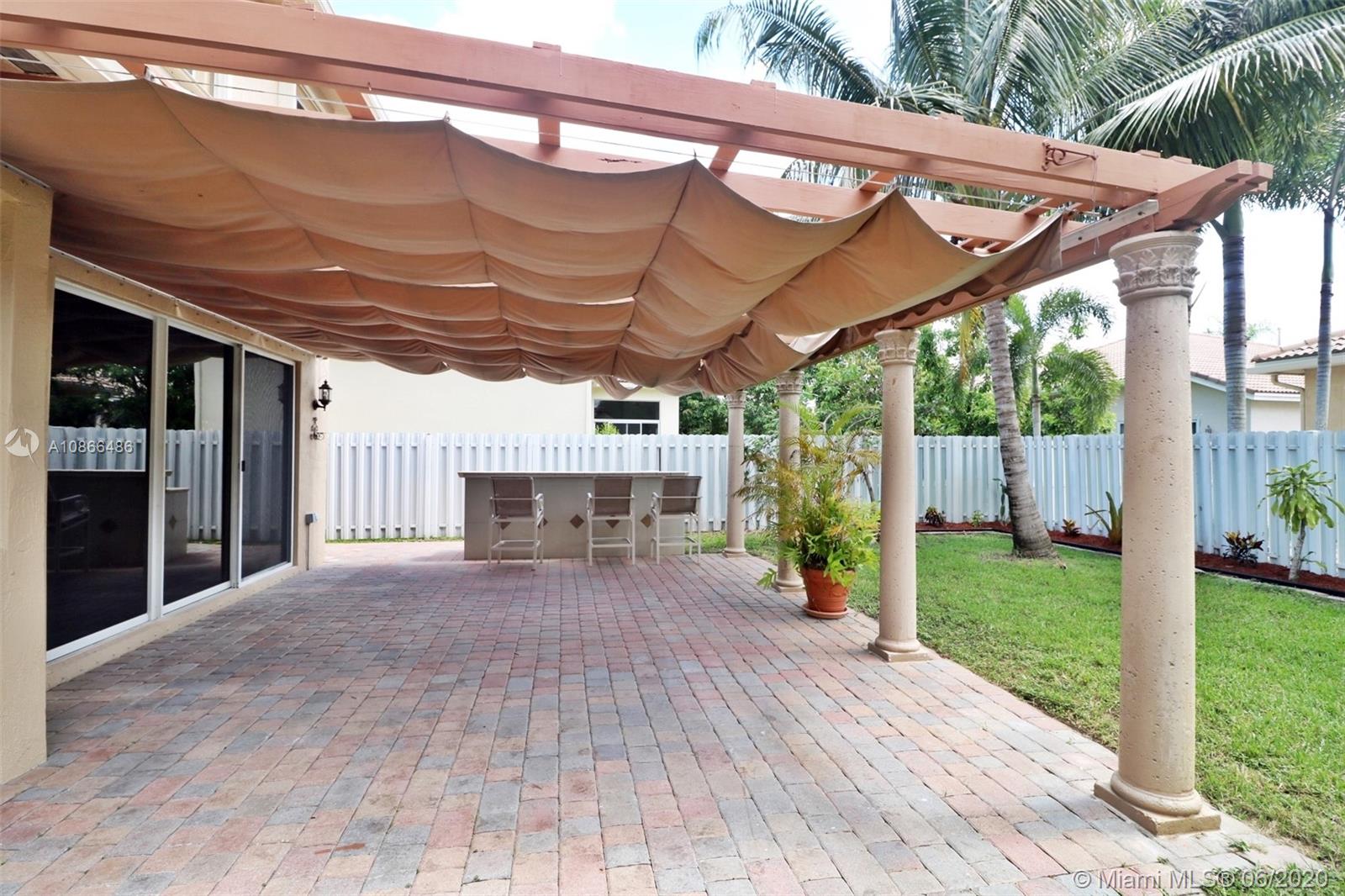 Desirable location in West Pembroke Pines, Impeccable 4 bedrooms 3 1/2 bathrooms office/den family room and loft, two-story single-family house, large patio with Pergola built-in barbecue and room for a pool, master bedroom on the ground floor, tile flooring downstairs, laminated wood flooring upstairs, dual a/c unit, natural gas available, kitchen with granite counters cooking island and stainless steel appliances, three-car garage, vaulted ceilings, laundry room, large corner lot. Community amenities include a clubhouse with children playground tennis courts exercise room community pool, 24 hours guard gated, lawn maintenance, and cable included in the maintenance fees. Must see it to appreciate it. Call today to schedule a private showing.