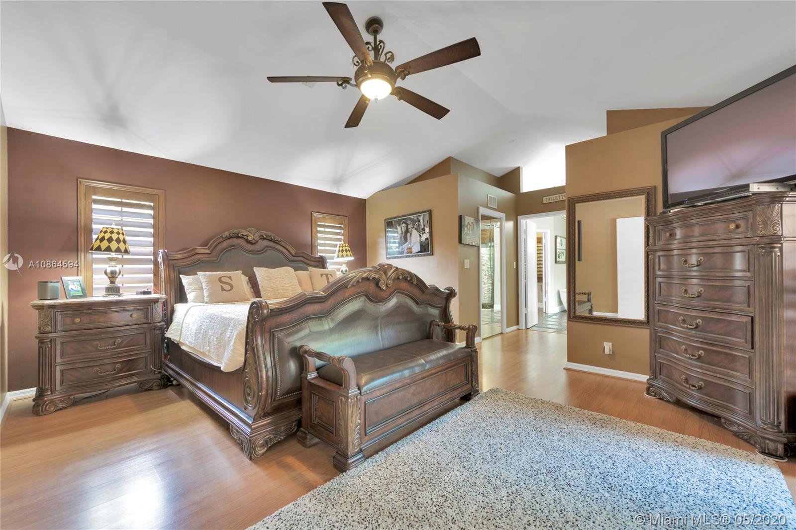 This exceptional 5 bedroom 4 bathroom residence is set on a lushly landscaped 1/3 acre private berm lot in charming tree-lined neighborhood. Enter foyer and be greeted by spacious living room and dining room with volume ceilings and French doors opening to tropical backyard paradise. The outside is an alluring resort-style oasis with free-form heated salt pool w/waterfall and beach entry, stunning marble patio, hot tub, fire pit and Bocce court. Interior features custom chef's kitchen with double ovens, cook top/hood, pot rack and wine cooler which overlooks the breakfast area and family room with fireplace , spa-like Zen master bathroom, completely remodeled with custom cabinets, marble counters, his and her toilets, luxurious tub and inside/outside shower. Steps to park and playground.