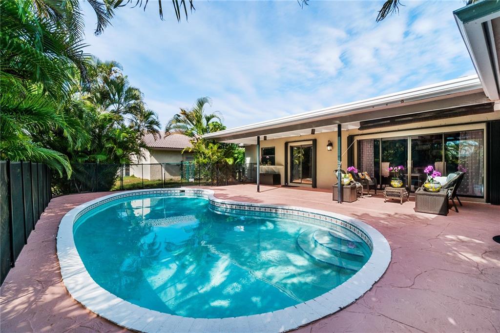 Updated home in highly desirable Cypress Run neighborhood of Coral Springs! Situated on a waterfront corner lot with impact windows & accordion shutters for hurricane protection. The kitchen features an eat-in area plenty of counter space. Vaulted ceilings make this large house feel even larger! Tile & laminate wood flooring throughout the house – NO CARPET! 2nd bathroom has been beautifully updated with new vanity, new tile, & granite counter top! Oversized master bedroom features a large walk-in closet, his/hers vanities in the updated bathroom, and a walk-in shower. Master bathroom cabana door leads out to the private pool deck with tropical views. No HOA! Walking distance to Cypress Park, Cypress Water Park, & Orchid Park. Near shops, restaurants, great schools, and major highways!
