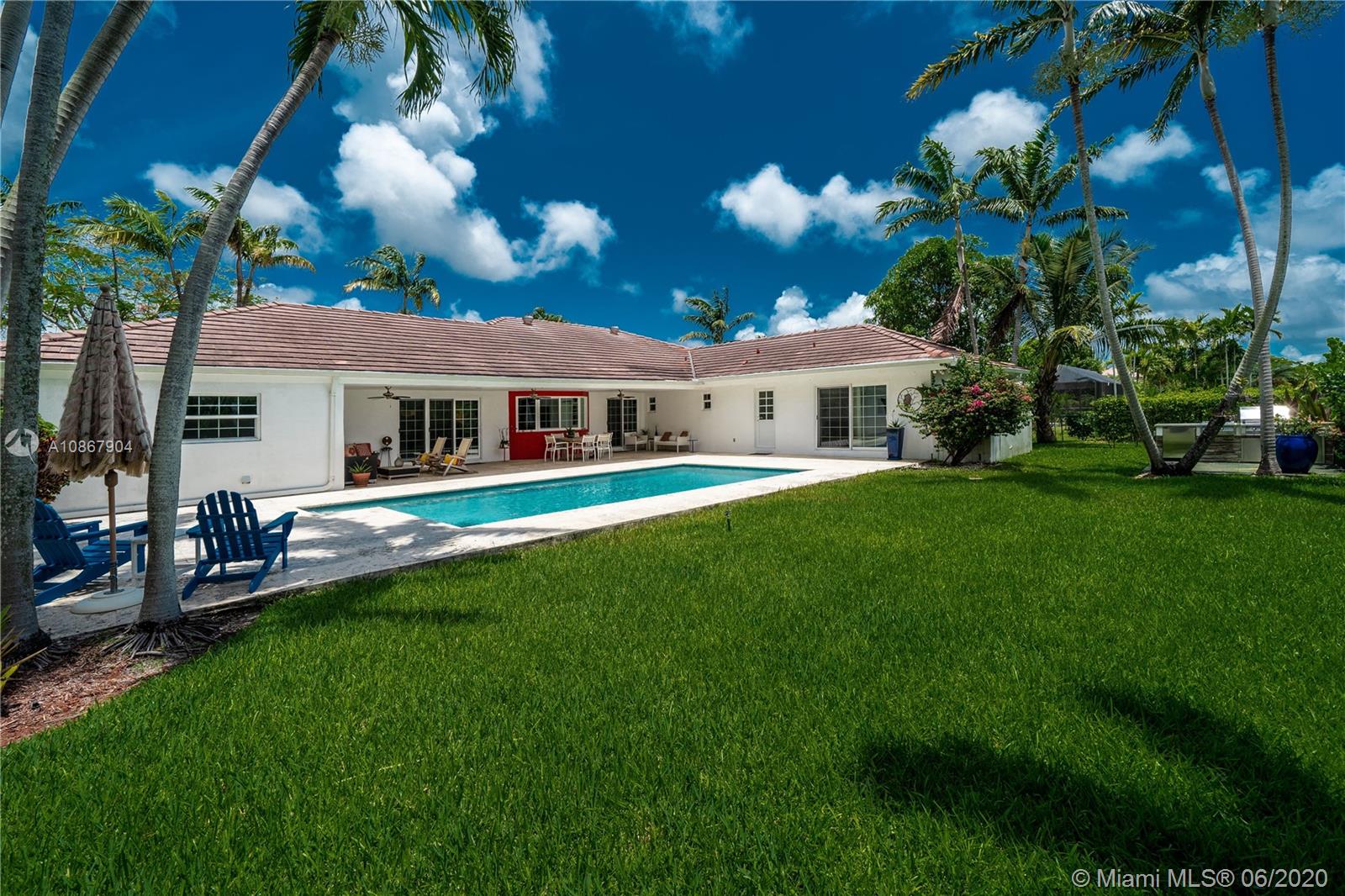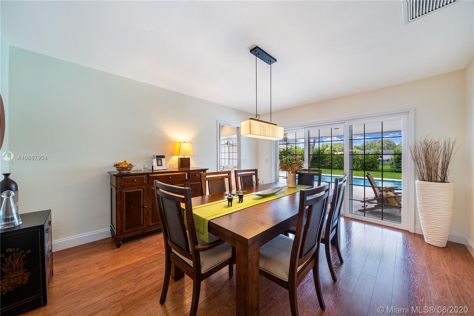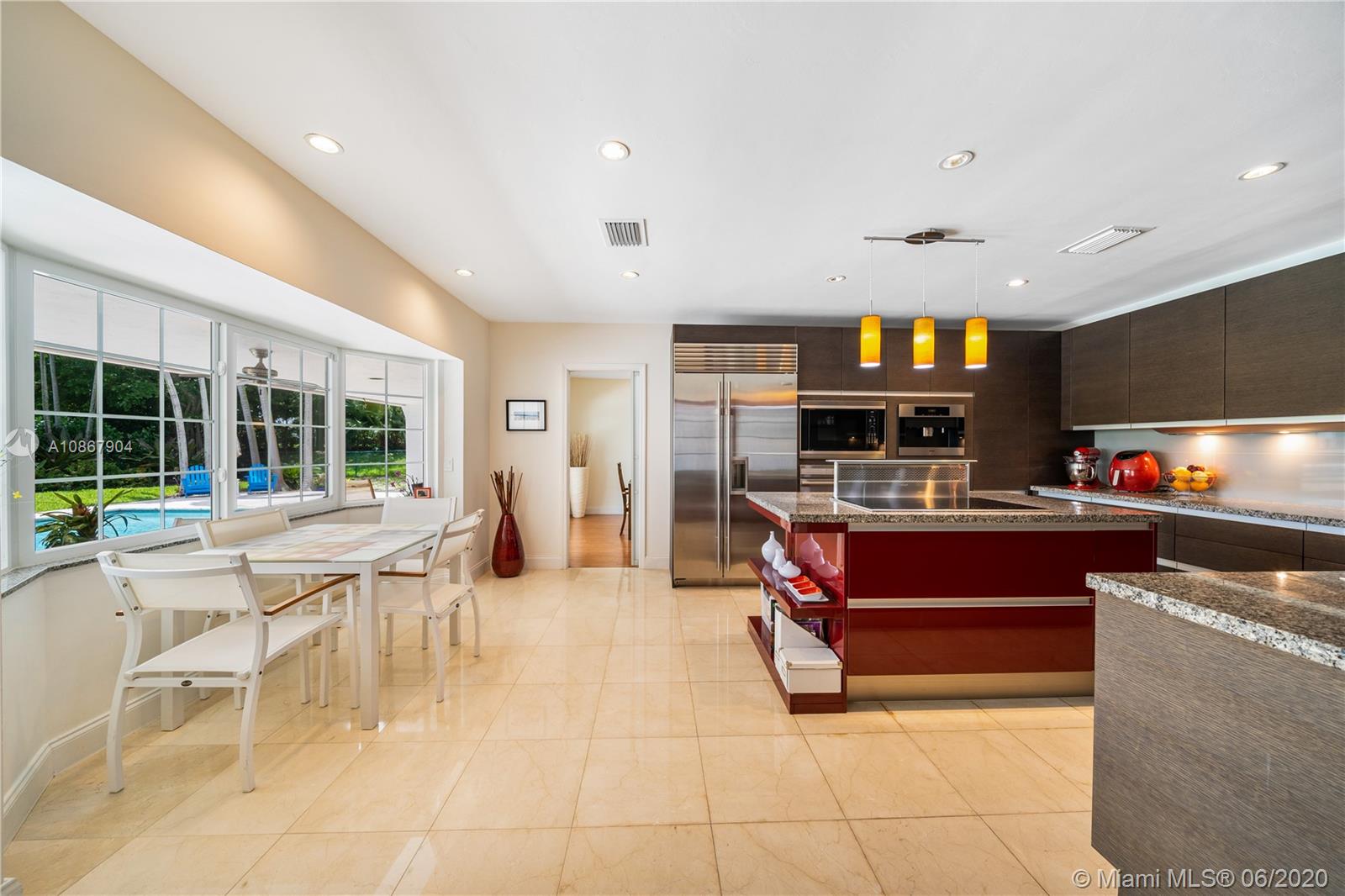 Open airy & rarely available water front 1 story home in one of the most tranquil streets of north Pinecrest. Gorgeous home features 4 bed,2 1/2 bath + DEN, 2 car garage+ 6 parking spaces, formal living & dining, a family room w/vaulted ceilings & built in bar area. La Finestra impact doors & windows, marble/wood floors ,designer bath w/ Duravit & Hans Grohe fixtures. True chef's kitchen w/top of the line appliances (Sub Zero,Wolf, Miele) & Poggenpohl cabinetry & Italian granite counter tops. Independent Laundry Room under A/C. Breathtaking backyard w/ integrated mosquito control system,salt water pool & large patio w/ coral stone granite over looking the canal.Built in BBQ perfect for entertaining.This property is fenced w/access to canal good to navigate & go fishing. 3096 SQ per owner.