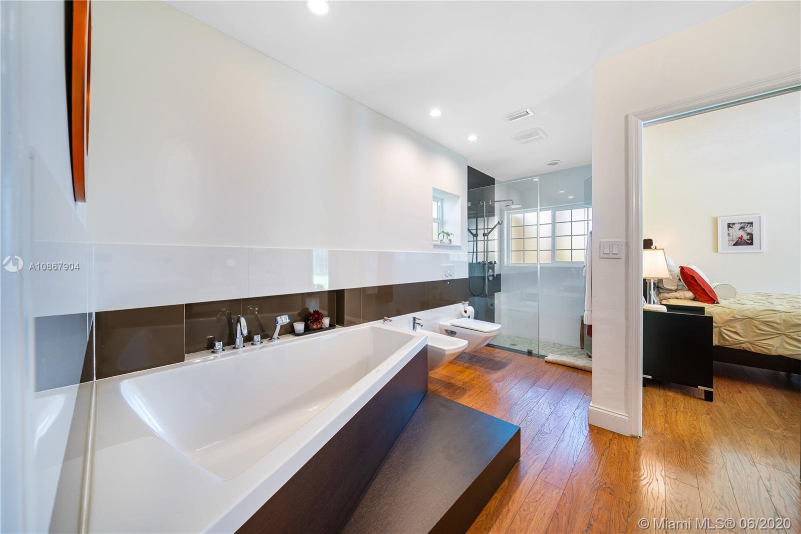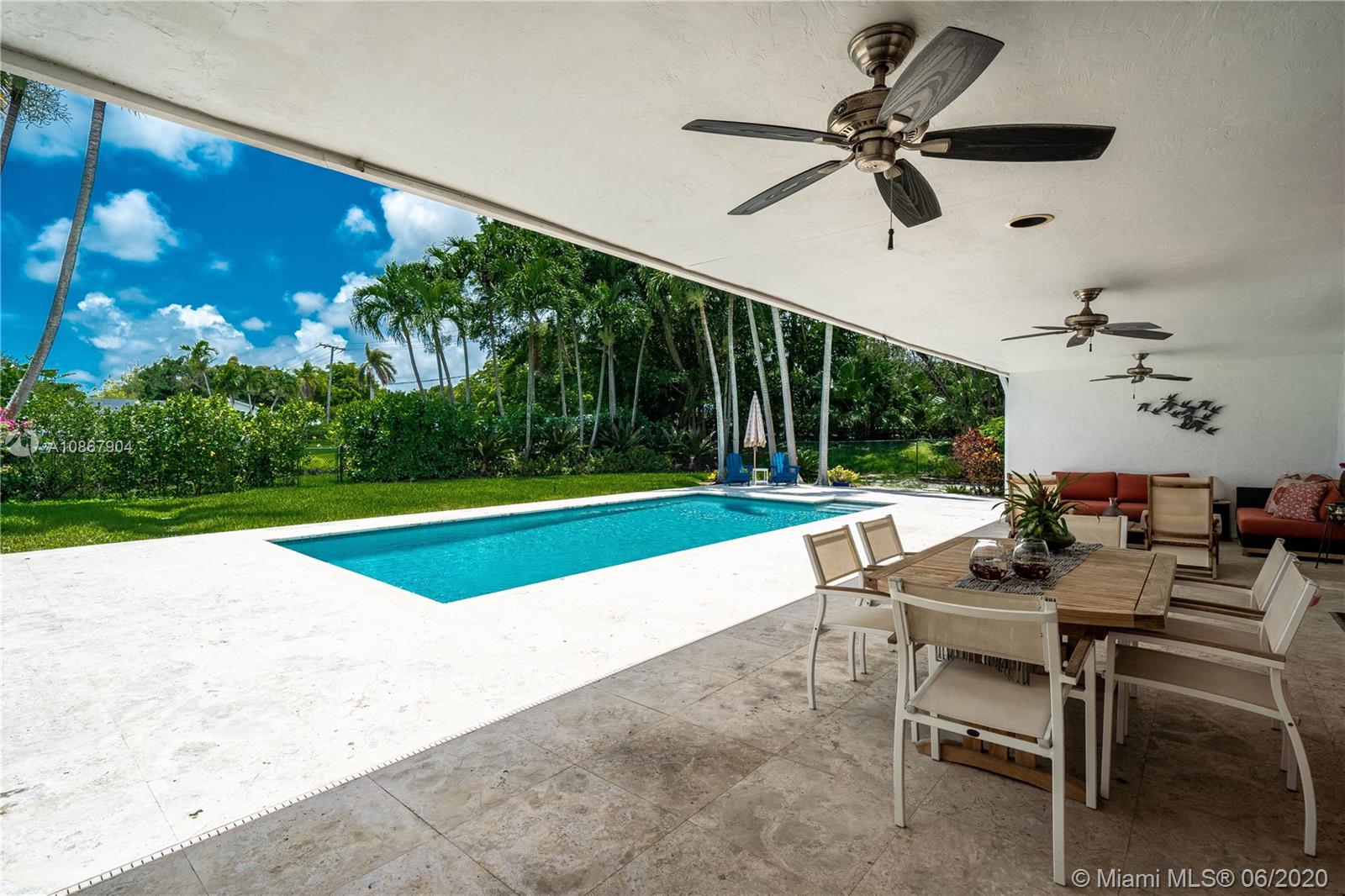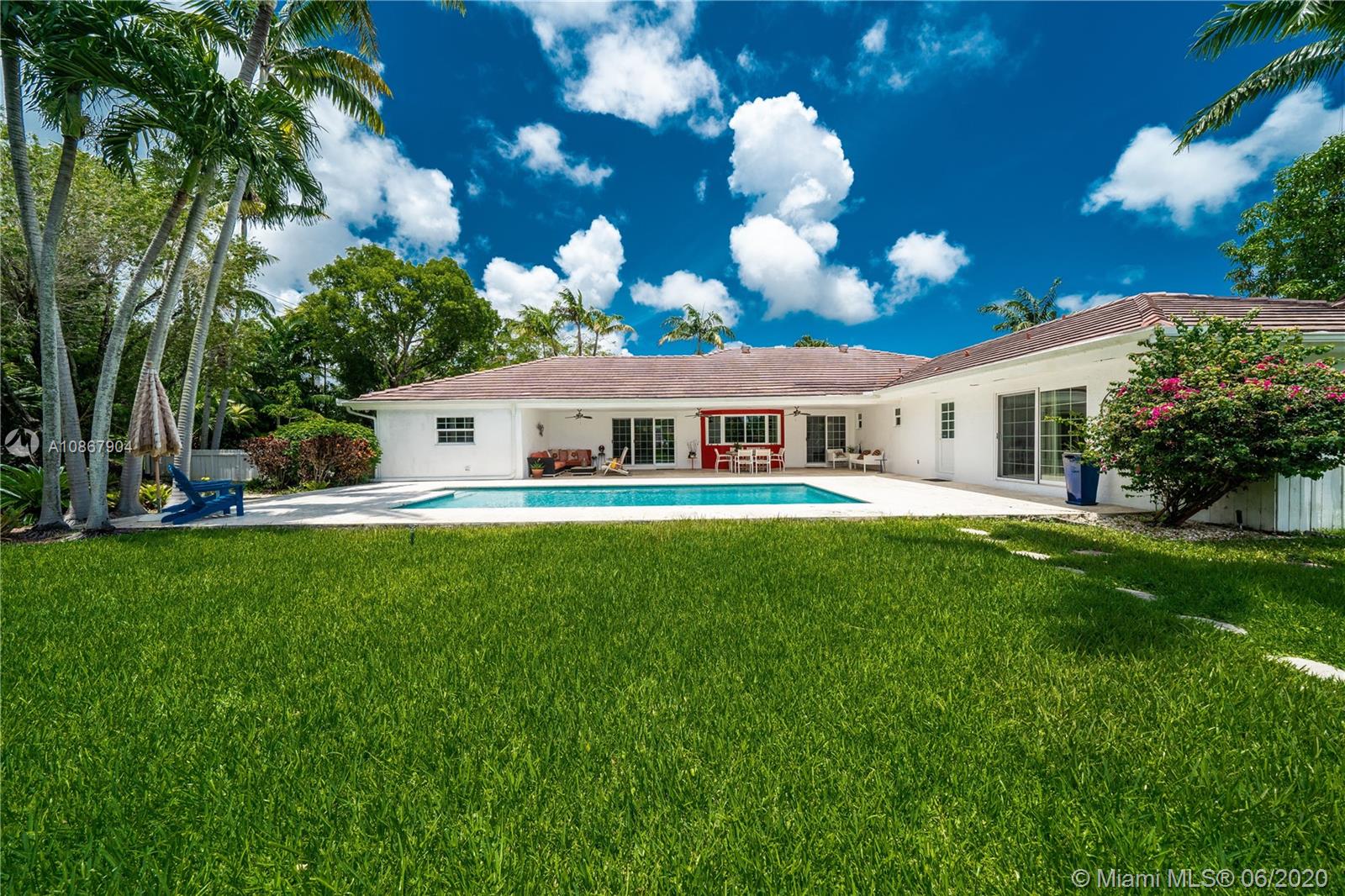 Open airy & rarely available water front 1 story home in one of the most tranquil streets of north Pinecrest. Gorgeous home features 4 bed,2 1/2 bath + DEN, 2 car garage+ 6 parking spaces, formal living & dining, a family room w/vaulted ceilings & built in bar area. La Finestra impact doors & windows, marble/wood floors ,designer bath w/ Duravit & Hans Grohe fixtures. True chef's kitchen w/top of the line appliances (Sub Zero,Wolf, Miele) & Poggenpohl cabinetry & Italian granite counter tops. Independent Laundry Room under A/C. Breathtaking backyard w/ integrated mosquito control system,salt water pool & large patio w/ coral stone granite over looking the canal.Built in BBQ perfect for entertaining.This property is fenced w/access to canal good to navigate & go fishing. 3096 SQ per owner.