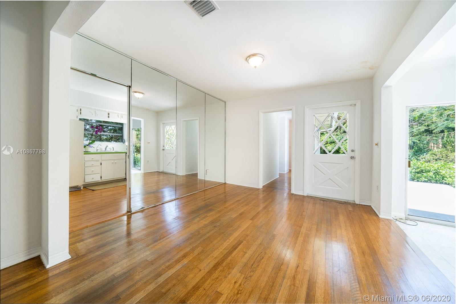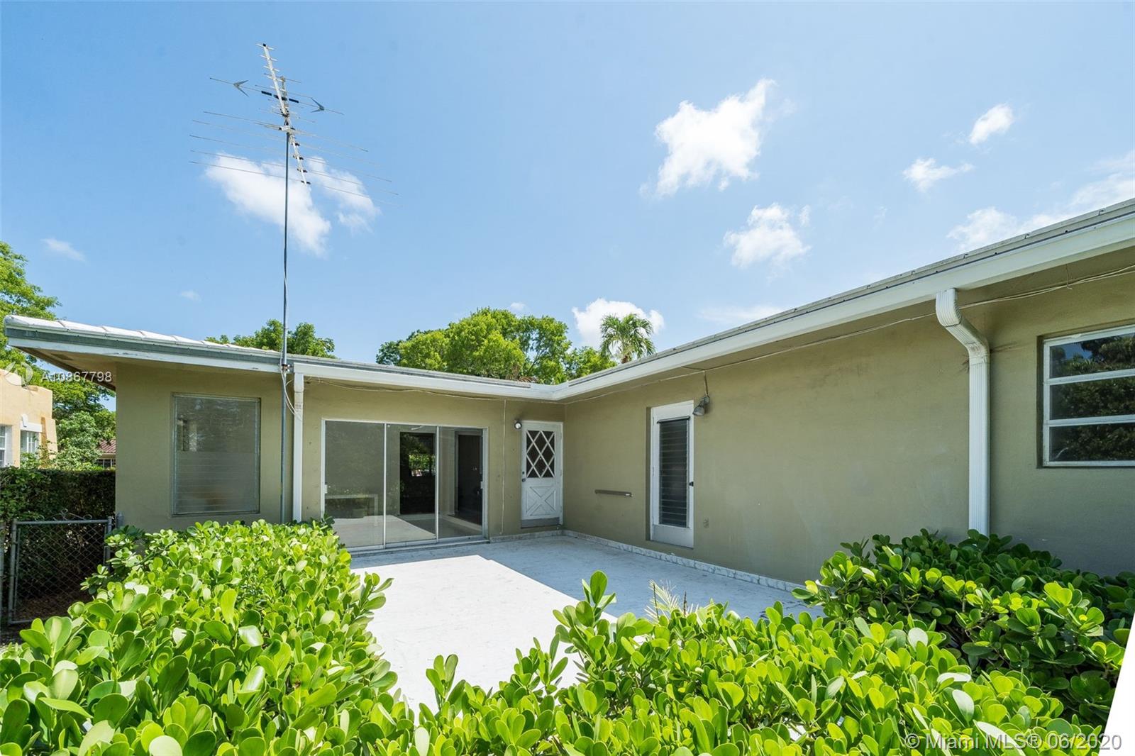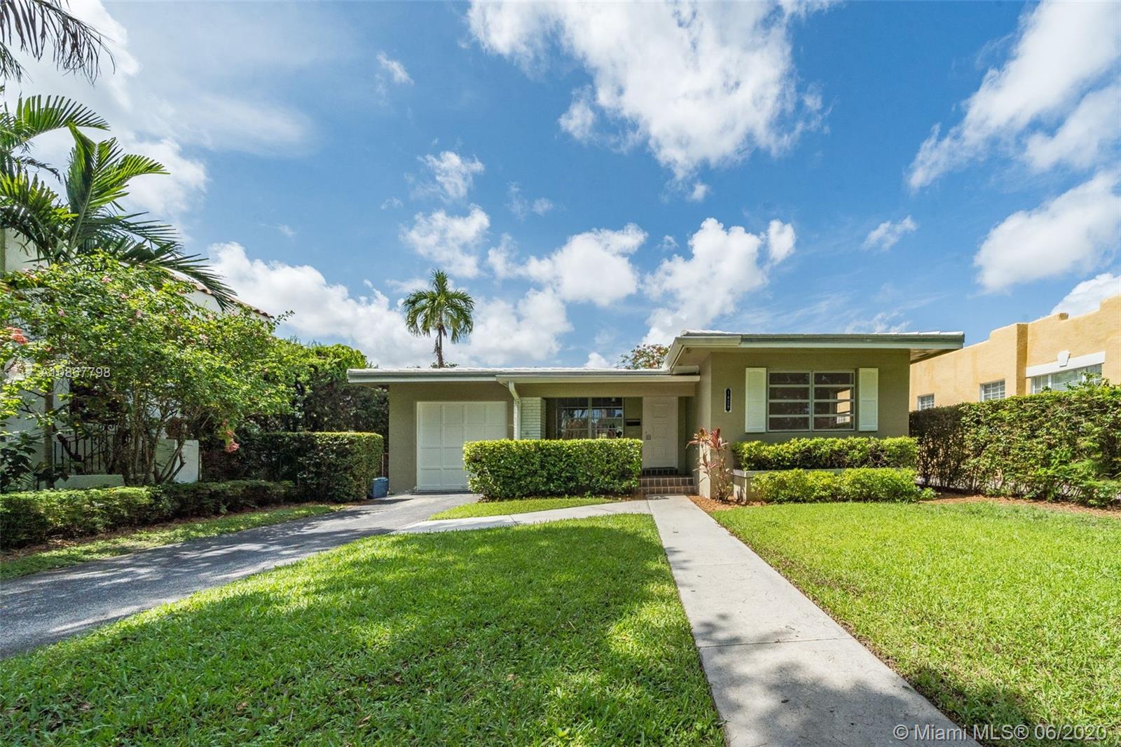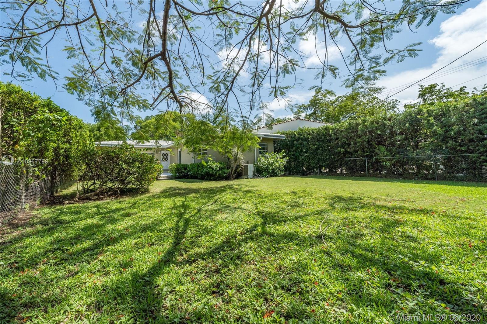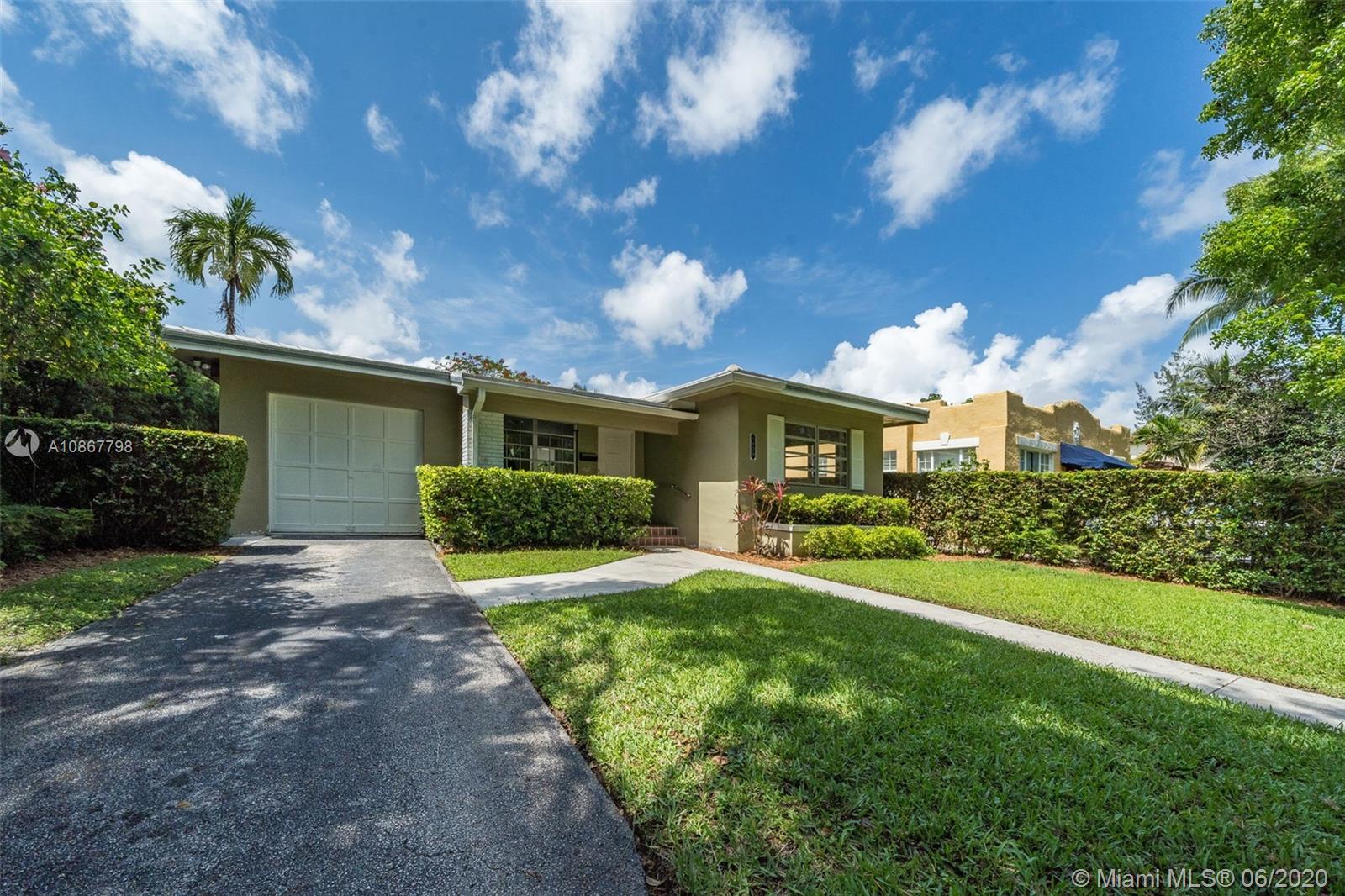 Mid-Century Gem! 4 bedroom and 2 bath home on an interior large lot, easily can be expanded and/or add a custom pool. Renovate home to your taste. Family room overlooking open terrace. Master could be converted to grand master suite with home office/nursery or walk-in closet. Large formal living room and dining room. Great Gables location walking distance to Granada Golf Course, Country Club Prado. Close to downtown Gables. Very central location in Miami-Dade, just miles from airport, downtown Miami and Coconut Grove. A must see!!