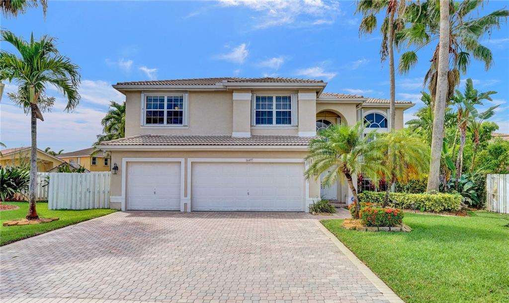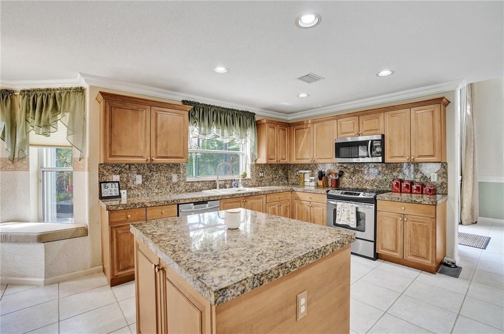 Gorgeous 5 bedroom + Loft/3 bath/3 Car Garage home located in a quiet cul-de-sac with extensive lot (over a quarter acre! One of the largest lots in the community) in desirable guard-gated community of Silver Shores, excellent location with "A" rated schools screened in patio and separate fenced in Pool! Lots of fruit plants & trees in this huge yard, even has a basketball court!. This spacious home boasts 3417 Living Square feet and features soaring ceilings, lots of natural light, accordion hurricane shutters, stainless steel appliances, granite countertops, wood cabinets, tile & wood laminate floors throughout (no carpet), 1 bedroom & full bathroom downstairs, spacious Master bedroom with elegant tray ceiling + 3 other bedrooms + loft upstairs, crown molding, near everything