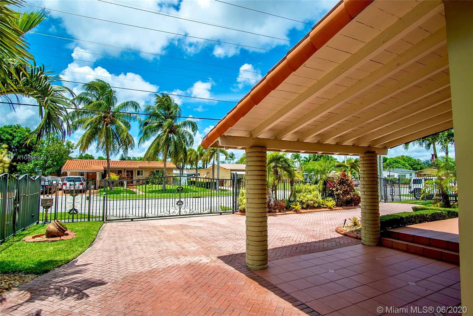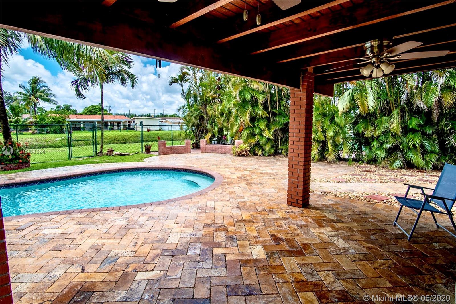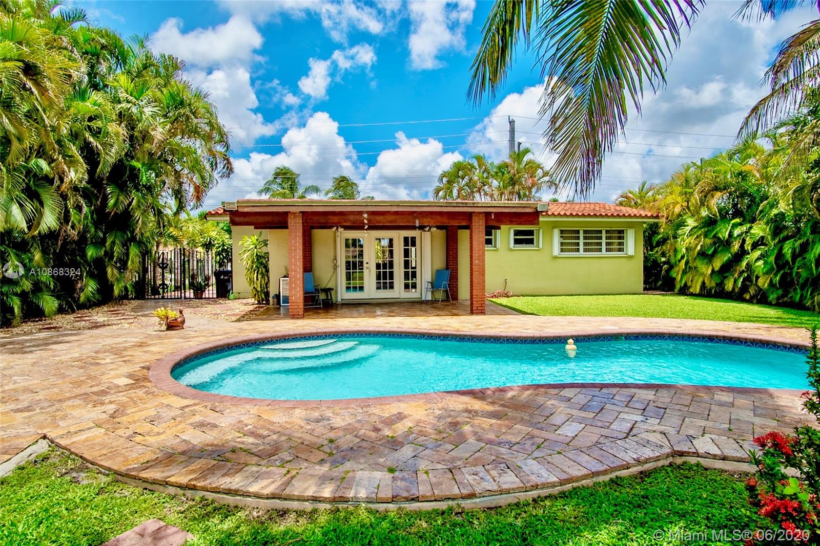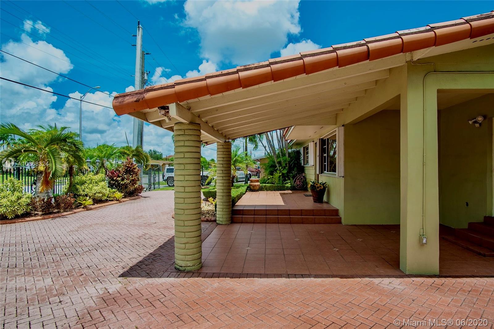 Stunning pool home in the heart of West Hialeah’s Palm Springs! This home has been completely renovated and really has it all! Enjoy summer days in a backyard paradise. Splash around in the pool, catch some shade under the covered patio and enjoy the privacy of canopies of trees lining each side of the property. A canal right out back means no back neighbors and a large open bonus green space. One of the largest lots in the area at 9,000sf! Features include: granite countertops, polished 24 x 24 porcelain tile, travertine pavers, fruit trees, accordion shutters, french doors, gas appliances, well sprinkler system, a concrete shed & zoning to build a 2nd story. When you arrive, you will be greeted by stylish motorized gates, red brick pavers and lush gardens. Park up to 6 cars + a carport