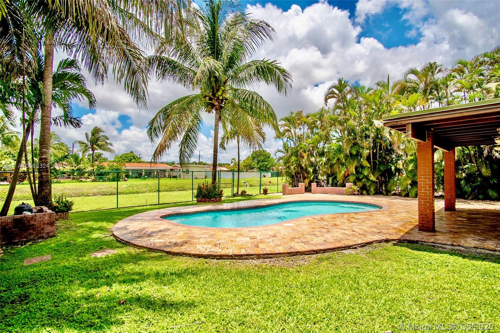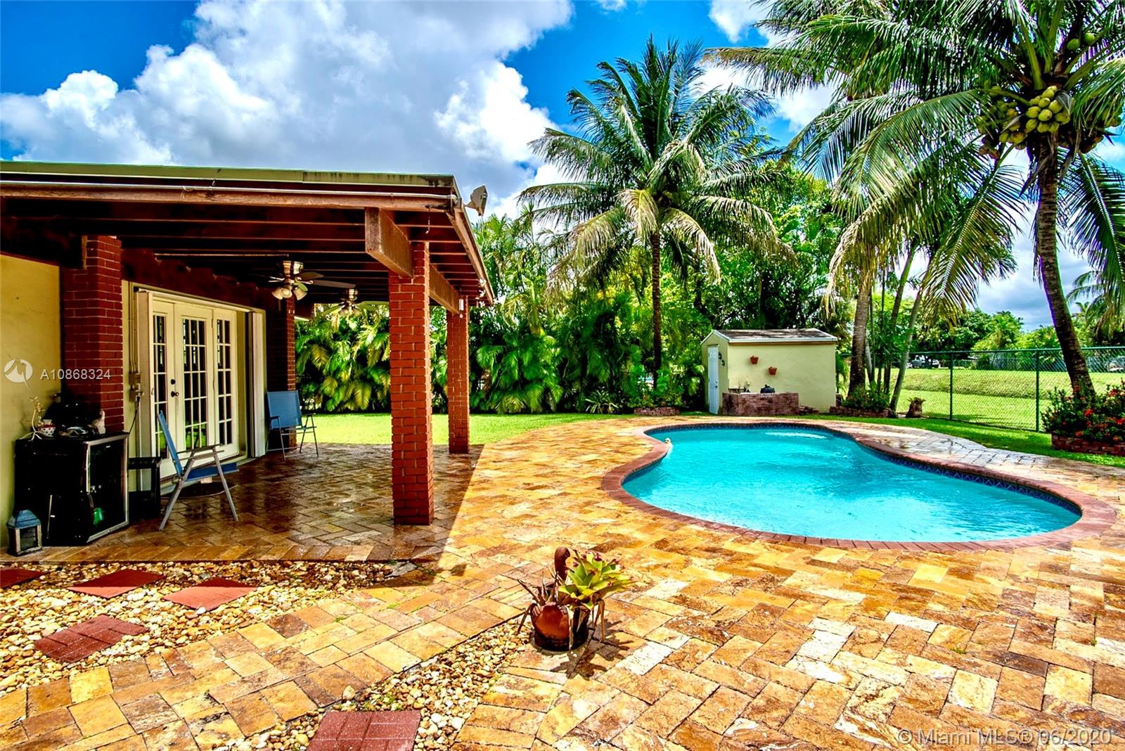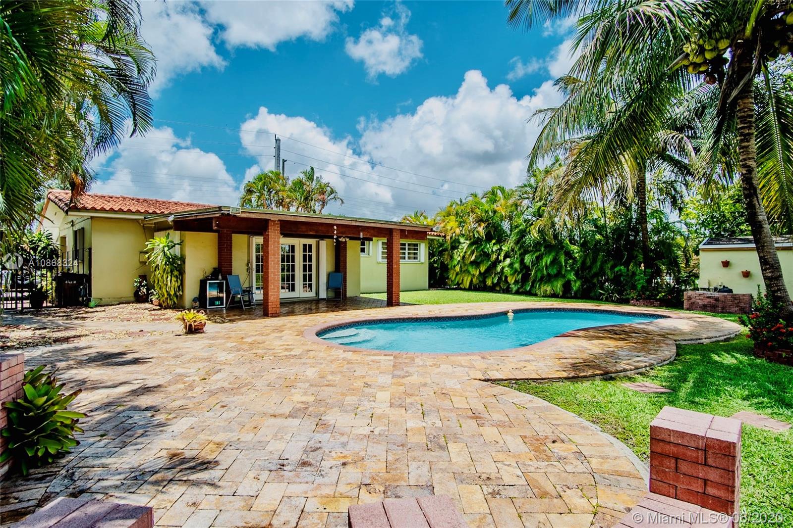 Stunning pool home in the heart of West Hialeah’s Palm Springs! This home has been completely renovated and really has it all! Enjoy summer days in a backyard paradise. Splash around in the pool, catch some shade under the covered patio and enjoy the privacy of canopies of trees lining each side of the property. A canal right out back means no back neighbors and a large open bonus green space. One of the largest lots in the area at 9,000sf! Features include: granite countertops, polished 24 x 24 porcelain tile, travertine pavers, fruit trees, accordion shutters, french doors, gas appliances, well sprinkler system, a concrete shed & zoning to build a 2nd story. When you arrive, you will be greeted by stylish motorized gates, red brick pavers and lush gardens. Park up to 6 cars + a carport