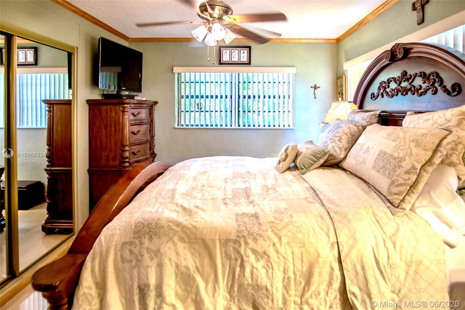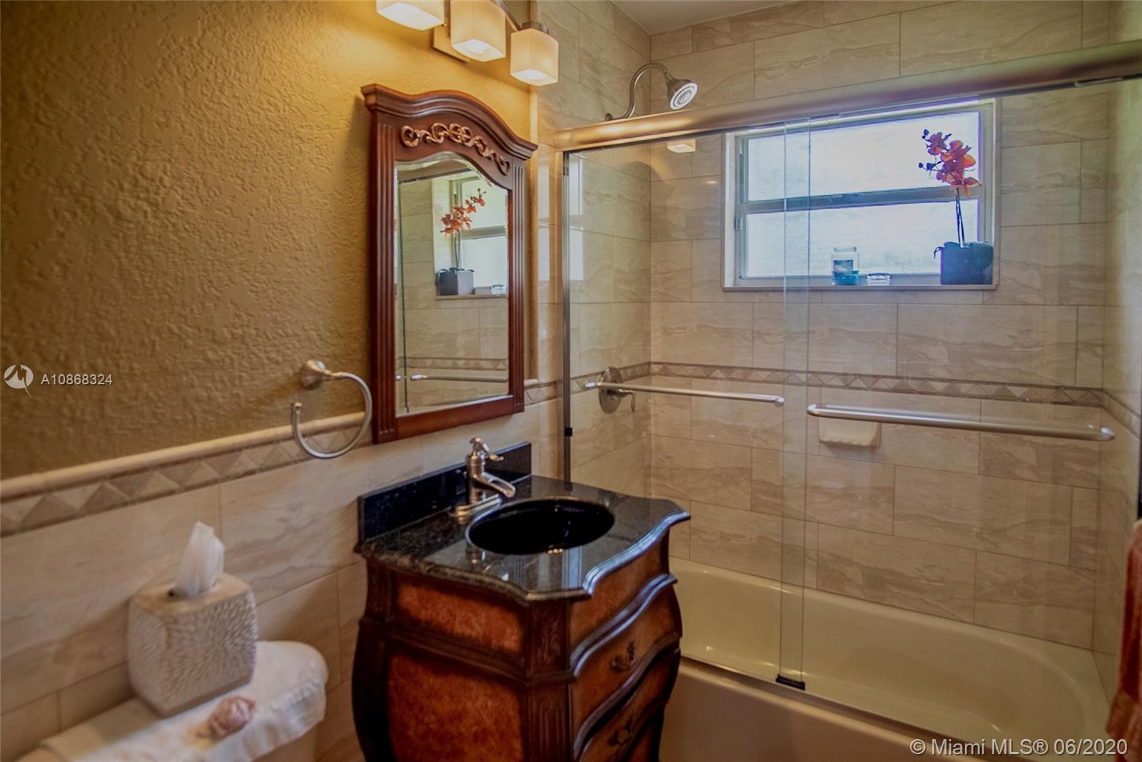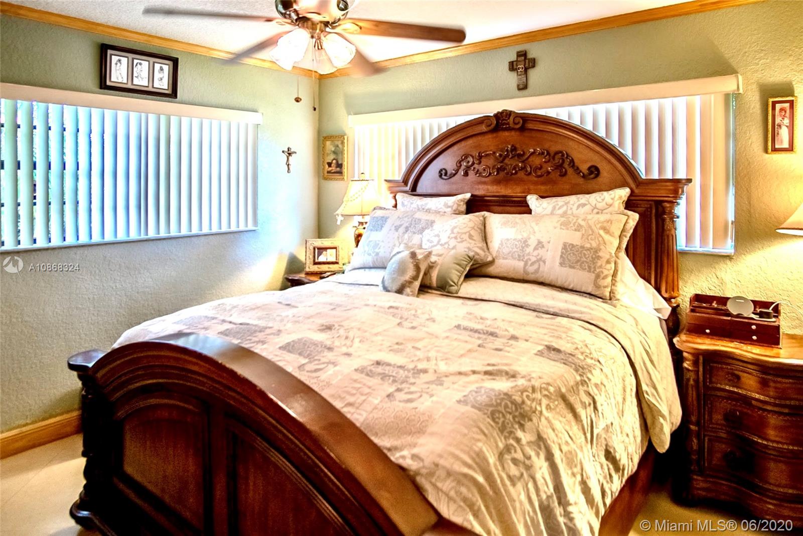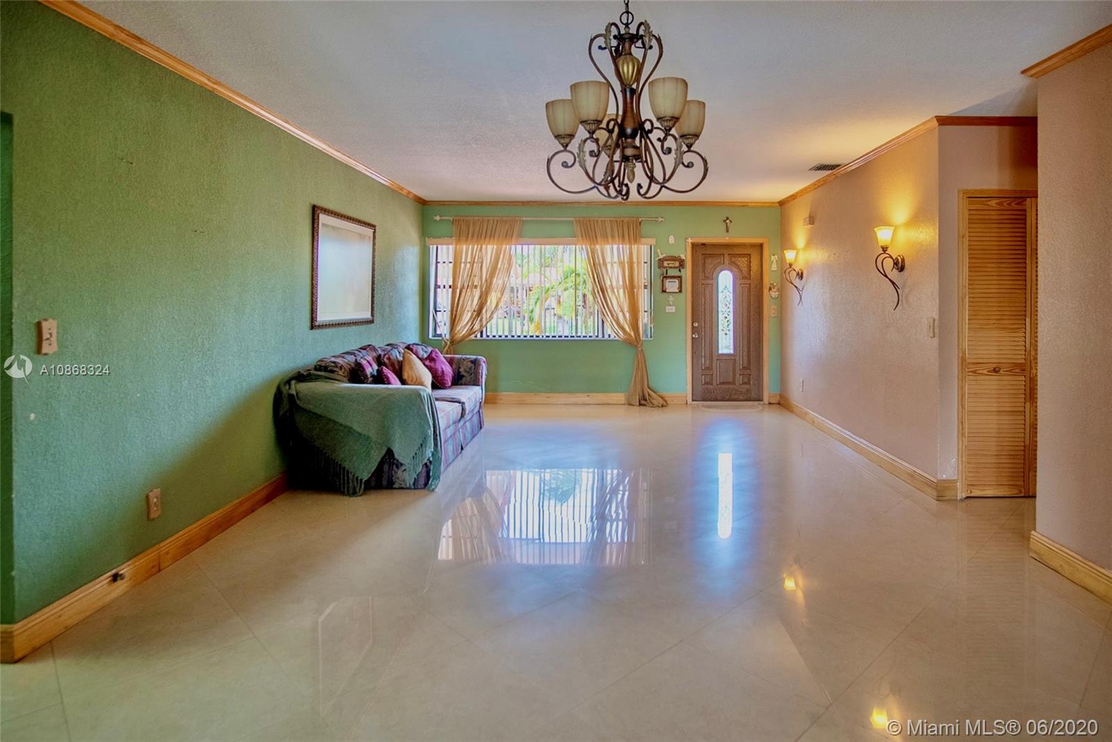 Stunning pool home in the heart of West Hialeah’s Palm Springs! This home has been completely renovated and really has it all! Enjoy summer days in a backyard paradise. Splash around in the pool, catch some shade under the covered patio and enjoy the privacy of canopies of trees lining each side of the property. A canal right out back means no back neighbors and a large open bonus green space. One of the largest lots in the area at 9,000sf! Features include: granite countertops, polished 24 x 24 porcelain tile, travertine pavers, fruit trees, accordion shutters, french doors, gas appliances, well sprinkler system, a concrete shed & zoning to build a 2nd story. When you arrive, you will be greeted by stylish motorized gates, red brick pavers and lush gardens. Park up to 6 cars + a carport