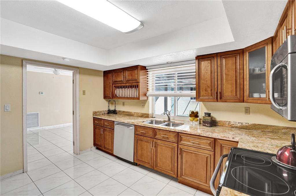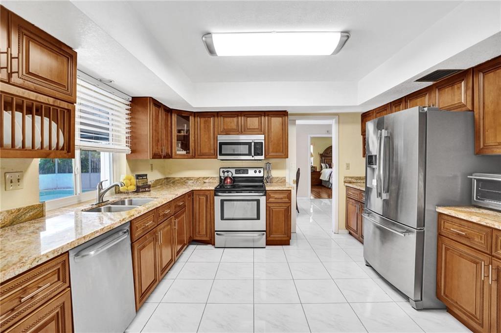 4 bedroom home with pool on a huge lot located in a cul-de-sac. Gorgeous renovated kitchen with hardwood cabinets, granite counters & newer stainless steel appliances. New bathrooms and impact sliding glass doors leading to the patio. Split floor-plan has the master bedroom ensuite with a cabana bathroom on one side of the home and three generous size bedrooms on the other side of the home. You'll find tile flooring in the living areas and Bamboo floors in all of the bedrooms. Huge interior laundry room with tons of storage. Screened patio with pool on a huge fenced pie-shaped lot that features an avocado & mango tree and a shed.. Roof (2003). Come make this home yours. Conveniently located near I-595, shopping, transportation and the airport. NO HOA.