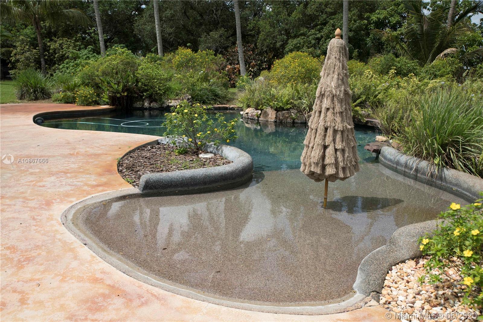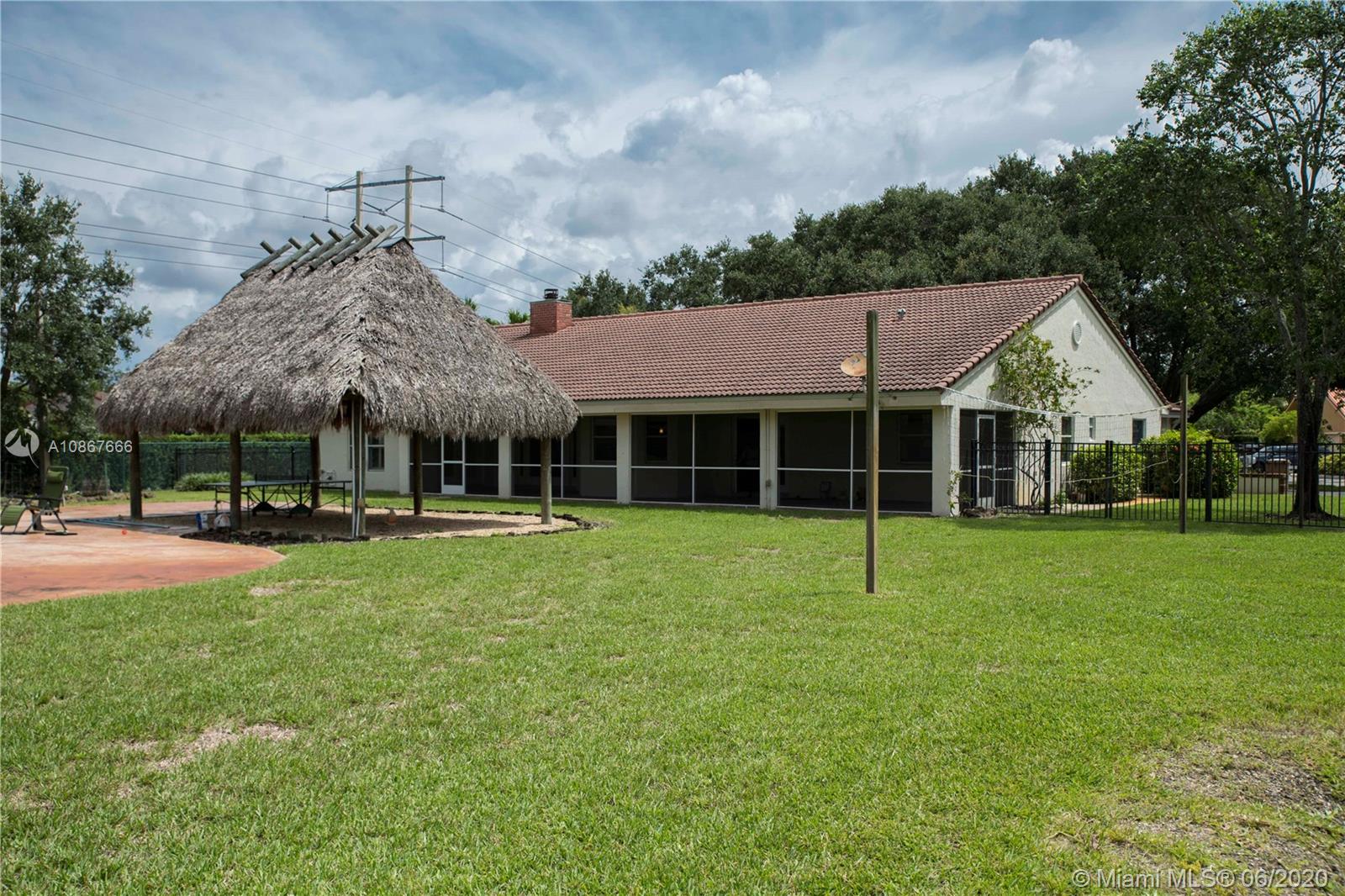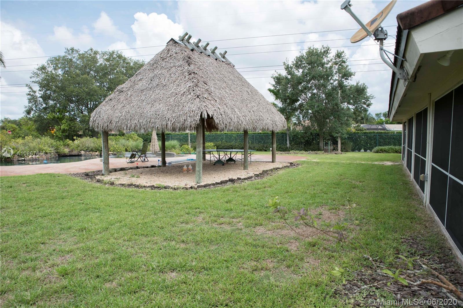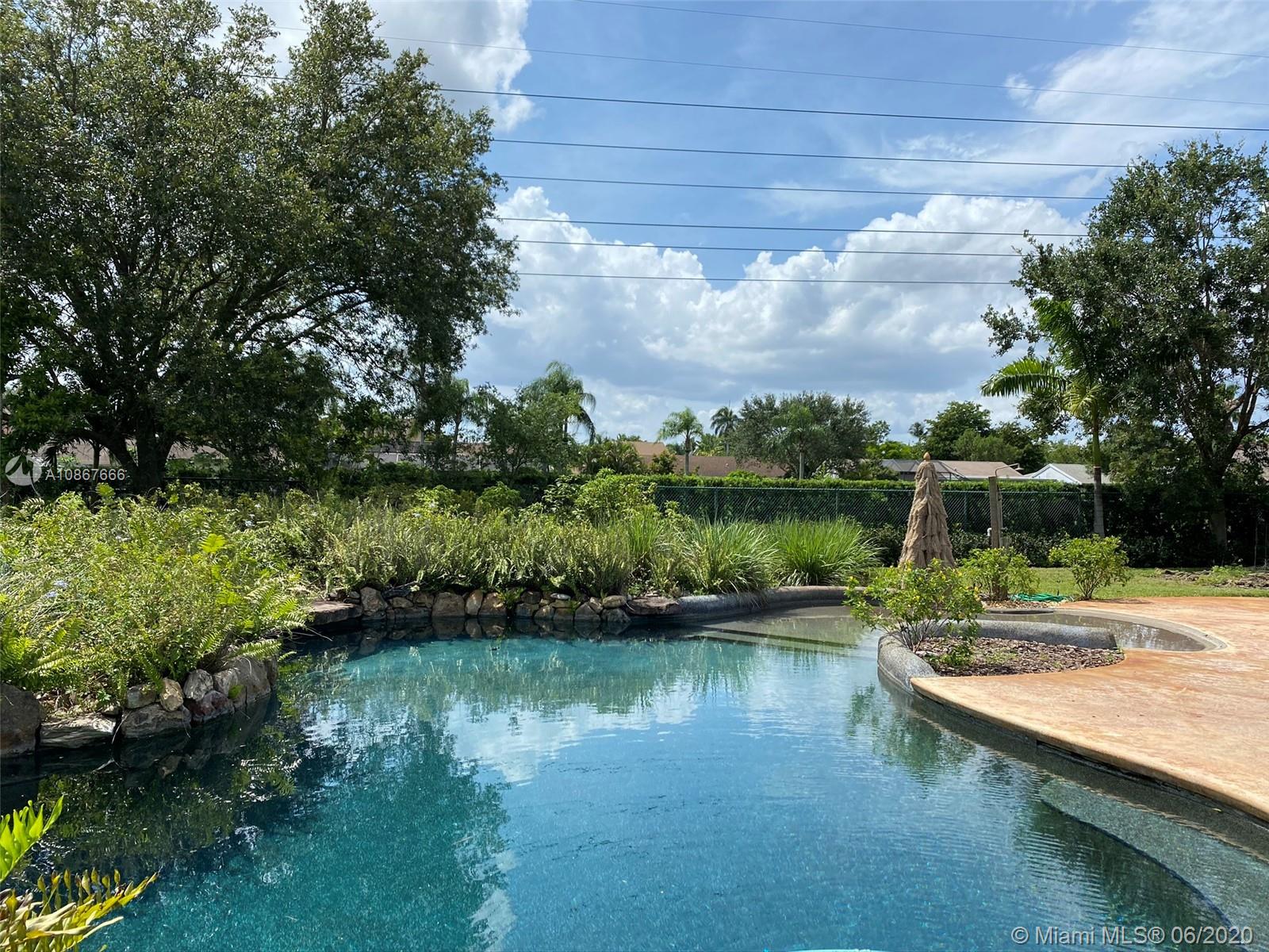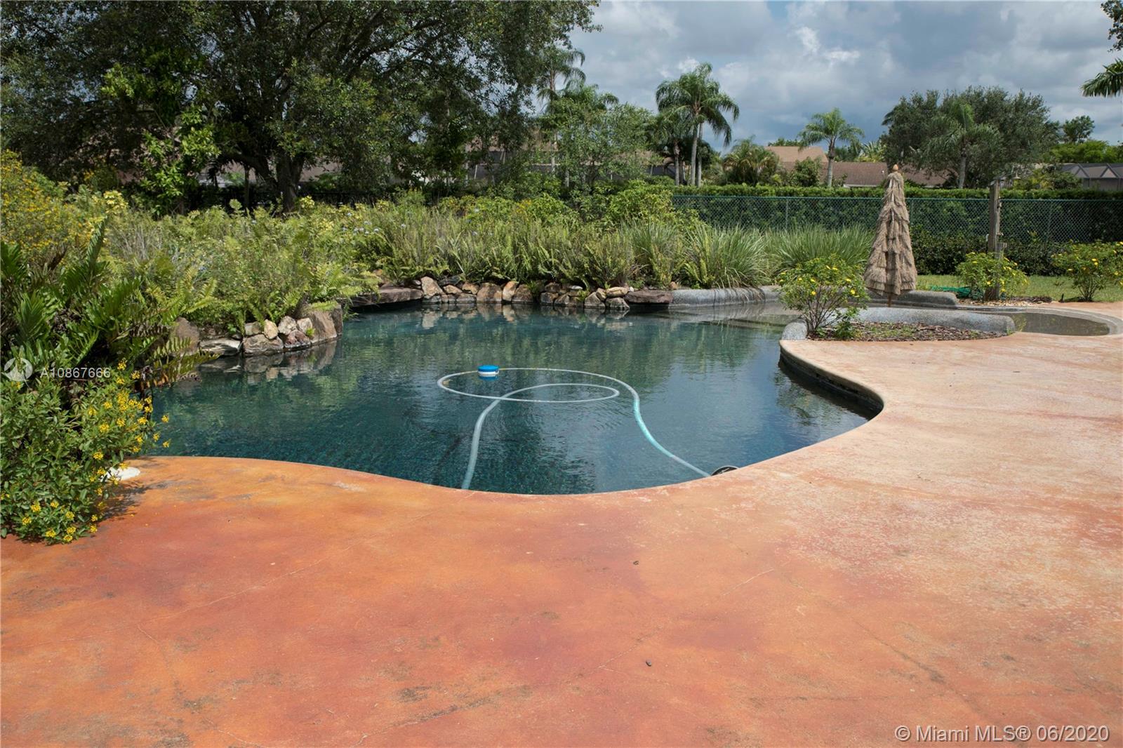 This beautiful five bedroom/three & a half spacious property sits on an acre lot and features an oversize resort style lagoon pool with a beach entrance & water feature, large tikki hut, sunk in trampoline, volleyball area & lots of additional space to make it your own. This property is located on a quiet street at the end of a cul-de-sac & backs up to Shenandoah Park. The living room features a wood burning fireplace. It has a two way split plan & two master suites with plenty of closet space, granite counters, walk in shower in both plus a custom tub in main suite. The updated & spacious eat in kitchen features granite, stainless steel appliances & a large side by side Frigidaire refrigerator. Located in a top rated school zone. Easy assess to highways, Sawgrass Mills & Weston!