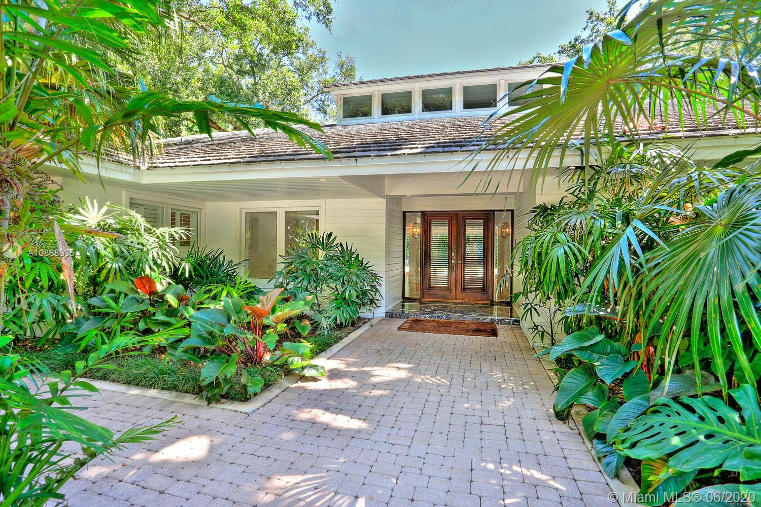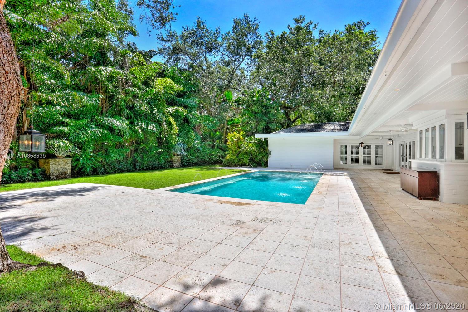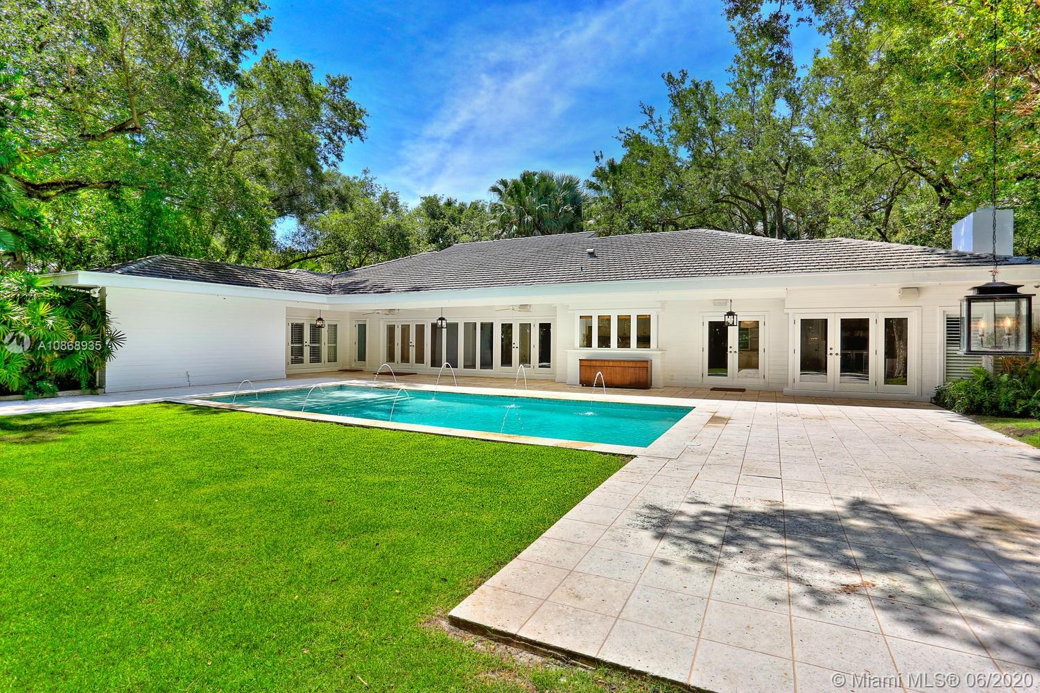 Experience the ultimate in privacy & tranquility in this stunning, island-style estate on a quiet cul-de-sac in a coveted Ponce/Davis neighborhood. Spectacular grounds, w/lush tropical landscaping & heated pool, surround this totally renovated home. Enter into light-filled living spaces w/vaulted, exposed beamed ceilings, extensive custom millwork & built-ins + new hardwood flooring. Fabulous kitchen features breakfast area, center island, onyx countertops & Miele, Sub-zero & Wolf appliances. 5 BR’s including expansive master suite w/ luxurious marble bath, soaking tub & frameless glass shower. Bonus media room + large playroom. Full house generator & Smart Home features include “Control 4” system. Just minutes to world-class shopping & dining in S. Miami, Coconut Grove & Coral Gables.