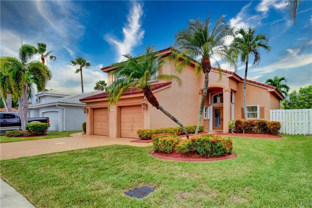 BEAUTIFUL UPGRADED TWO-STORY HOME . ORIGINALLY 4/ 2.5 WITH 4th BEDROOM BEING USED AS A LOFT OR SECOND FAMILY ROOM UPSTAIRS. ELEGANT TILE FLOORING FIRST FLOOR & LUXURY HARDWOOD FLOORS UPSTAIRS . LARGE OPEN KITCHEN W/ GRANITE COUNTER TOPS & SS APPLIANCES, RECESSED LIGHTING THROUGHOUT HOUSE,NEW ROOF $$ W/MODERN TILE IN THE PROCESS TO BE INSTALLED NEXT WEEK FRESHLY PAINTED INSIDE, NEUTRAL COLORS, CROWN MOULDING ,KNOCK DOWN CEILINGS, MARBLE TILES IN THE MASTER BATH,SLATE/NATURAL STONE TILE IN THE SECOND BATH,LAUNDRY ROOM. SPACIOUS & BRIGHT,AUTOMATIC OUTDOOR LIGHTING & SPRINKLER SYSTEM IN ALL AROUND FENCED BACKYARD W/BEAUTIFUL POOL, ONE GARAGE CONVERTED TO AN OFFICE W/PERMITS. ACCORDION SHUTTERS, HOA INCLUDES HIGH SPEED INTERNET, CABLE, LANDSCAPING, 24/7 SECURITY PATROL, A + PLUS SCHOOLS, .