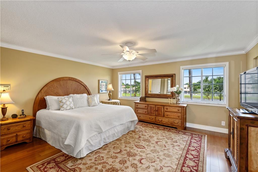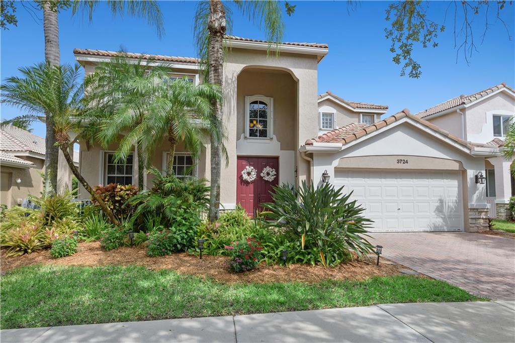 Meticulously cared for 5/4 lakefront home in the much sought after Ridges community. The flow of this home is great for entertaining and the outdoor patio sensational for relaxing at the end of the day with breathtaking water and sunset views. The kitchen has 42” solid maple cabinets with granite countertops and stainless steel appliances. With one bedroom and full bathroom on the first floor, guests can have a space of their own or it can be used as a home office. Finer finishes include crown molding, custom window blinds, hardwood floors on 2nd floor, custom built-in closets, and accordion hurricane shutters. 24 hour security, walking trails, beautiful new clubhouse with a pool, kiddie pool and water playground, tot lots, basketball, soccer and pickleball courts. Walk to A rated schools.
