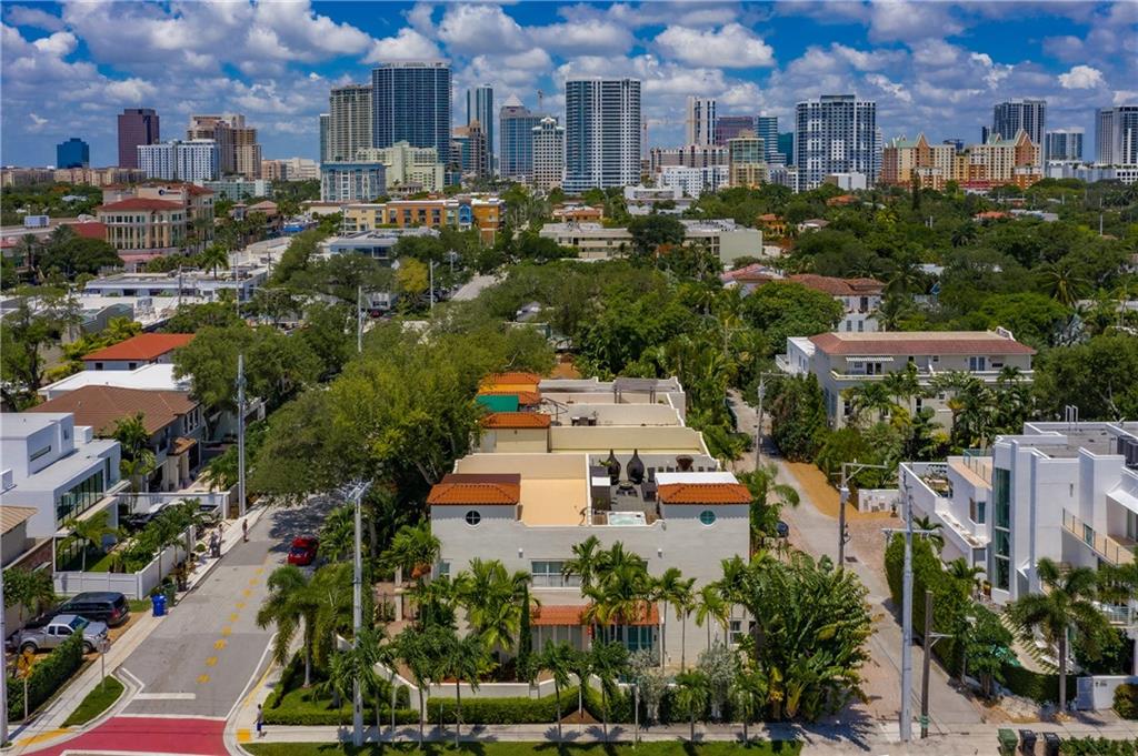 Fall in love with this beautifully updated three-story townhouse, just steps to Las Olas Blvd!! This corner unit's open floor plan, lots of natural light & private pool make it feel more like a single family home! Features include 2 car garage w/ plenty of extra parking, lush landscaping, high end finishes throughout, all impact doors & windows, walk-in closets, maple & porcelain floors, security system & Lutron lighting. Eat-in kitchen with high end appliances. Two large suites plus a den/office that can be converted into a 3rd bedroom. Enjoy City views & breathtaking sunsets on the rooftop terrace - equipped with summer kitchen, sauna, outdoor shower, jacuzzi & plenty of space for entertaining. Close proximity to fine dining, shopping, the beach & airport.