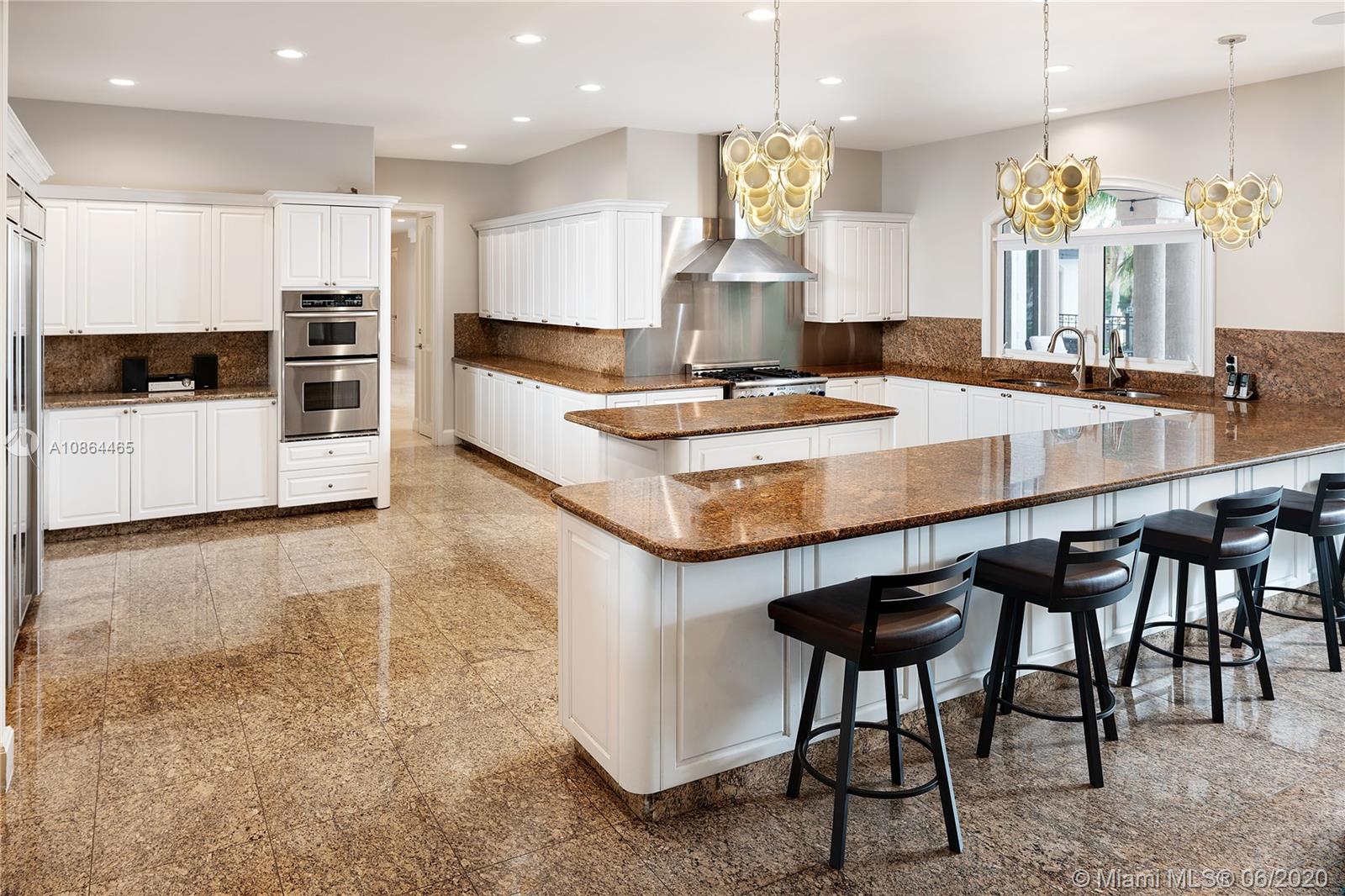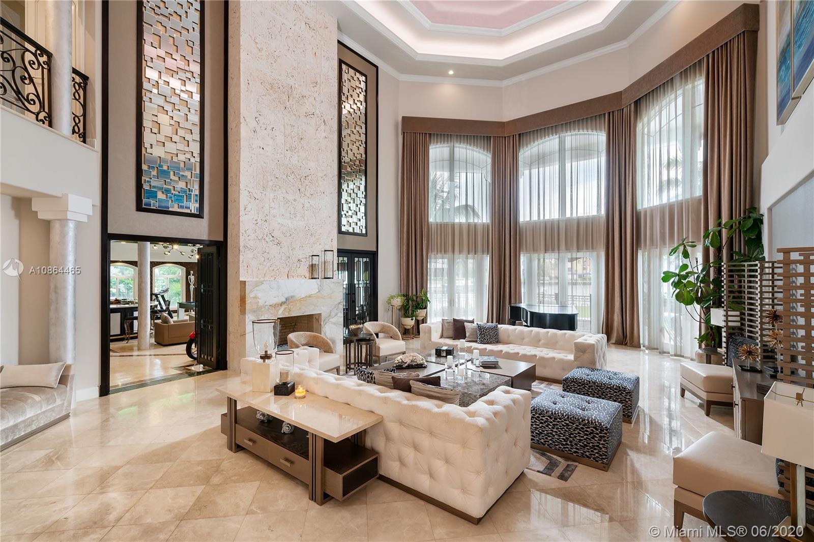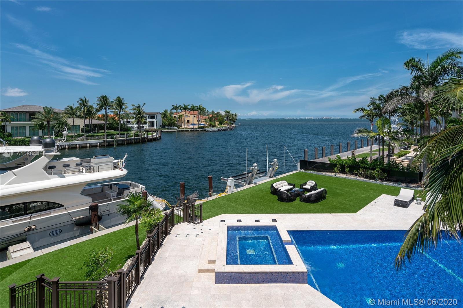 Nestled in exclusive, 24 hr guard gated Tahiti Beach Island, this private estate offers a 49,045 SF lot and 119ft water frontage w direct ocean access and private dock. This elegant property features a grand entryway greeted by double height ceilings in the formal living and dining areas, fireplace, media and recreation rooms w bar, expansive chef’s kitchen, all surrounded by large terraces overlooking the pool and bay. Large master suite offers a spacious bath, sauna and walk in closets, sitting area and balcony to enjoy the city and bay views. Extras include elevator, gym, office, 3 car garage w lift to accommodate 3 additional cars, porte-cochere for additional covered parking and private entry to service quarters. Community amenities include private beach, tennis and basketball courts.