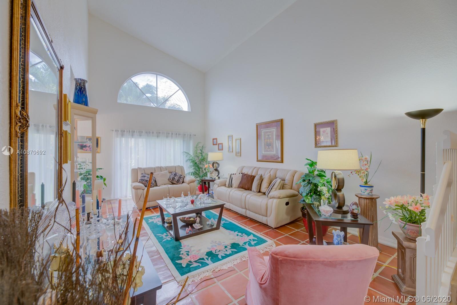 Beautiful 3 bedroom, 2.5 baths + family room home with 2 car garage, located in the highly desirable family friendly community of Costa Verde in Doral. This property has a new A/C unit. Spacious kitchen with quartz countertops. Handmade Saltillo/terra cotta tile downstairs and hardwood floors in the stairways and second floor level. Large master bedroom with double door entry and cathedral ceiling with large walk-in his & hers closet. Master bathroom with roman tub & shower. Hurricane accordion shutters throughout. Impeccably manicured backyard. Property located near Publix, Dolphin and International Malls, great restaurants & shopping areas. Low HOA fee, $219 per month includes 24 hr security, pool and children's playground. Your New Home Awaits! OWNER IS VERY FLEXIBLE WITH SHOWING TIMES