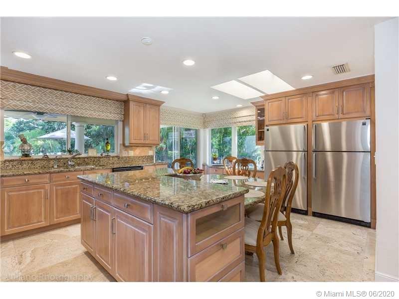 Gorgeous and impeccable house in desirable Boca Bath & Tennis. Saturnia floors in living area and hard wood in bedrooms. Custom stainless/granite kitchen. Floor to ceiling fireplace, volume ceiling. Electric rollup shutters. Custom patio awnings. Heated pool. Bathrooms updated and new a/c units. LED lighting throughout Custom landscaping