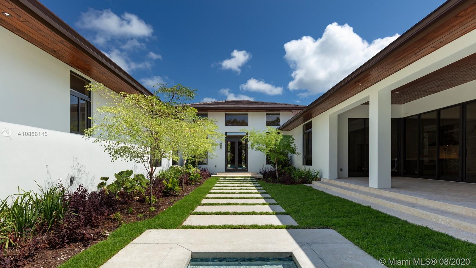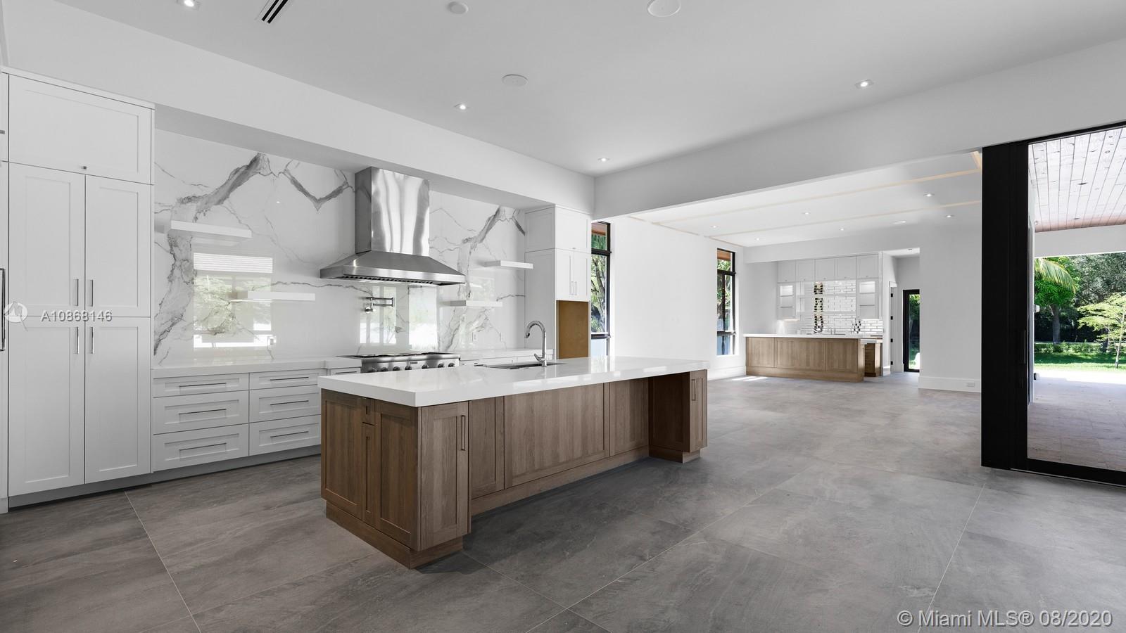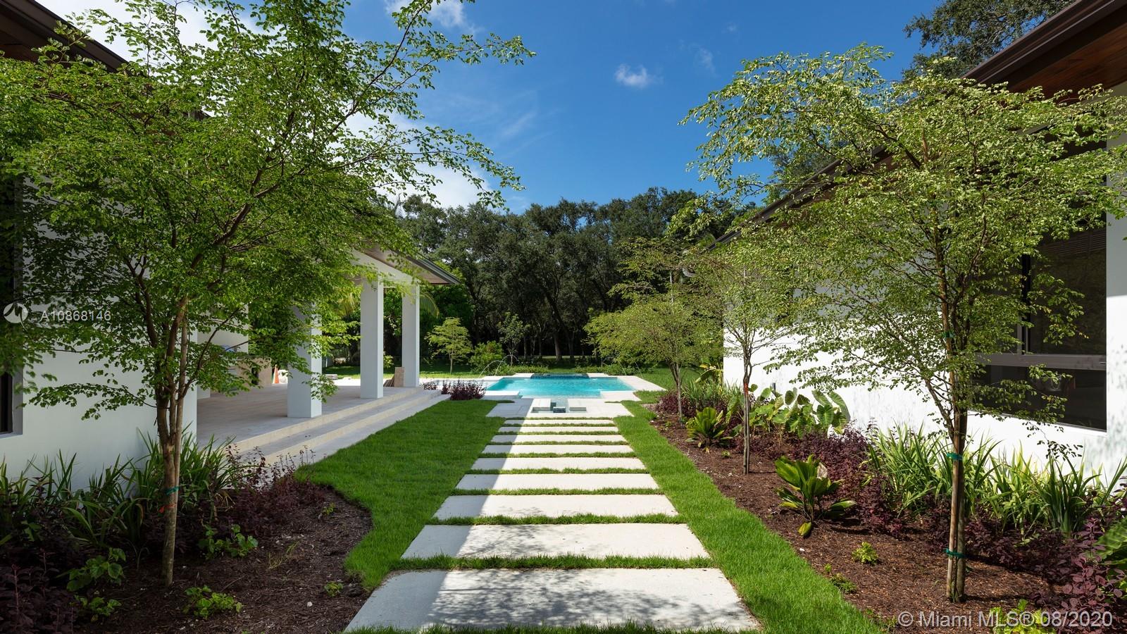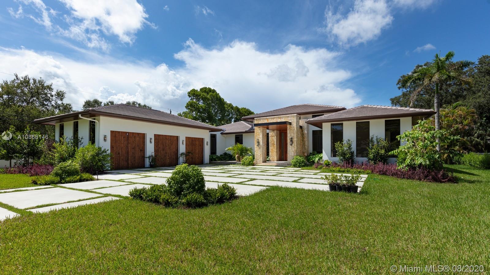 Magnificent New Construction Estate & ready for immediate occupancy in N Pinecrest. Residents will experience ultimate living in this modern luxury 1-story tropical home resting on a 39,770-sqft fully gated & deep lot, showcasing designer landscaping & an elegant water feature at the entrance. Discover a remarkable flr plan w/ oversize porcelain tile throughout and great ceiling height. Designer gourmet kit w/top of the line Thermador appl, hidden walk in pantry, custm-wood cabinetry w/quartz counter tops, wet bar & separate glass wine gallery. An inviting outdr oasis awaits w/an expansive yd w/tranquil reflective pool, water features, jacuzzi, tanning ledge & covered summer kit. Extra Feat: cove lighting, Impact windows/drs, 3 car gar. 1 Yr builder Warr. Premier Pinecrest Schools nearby.