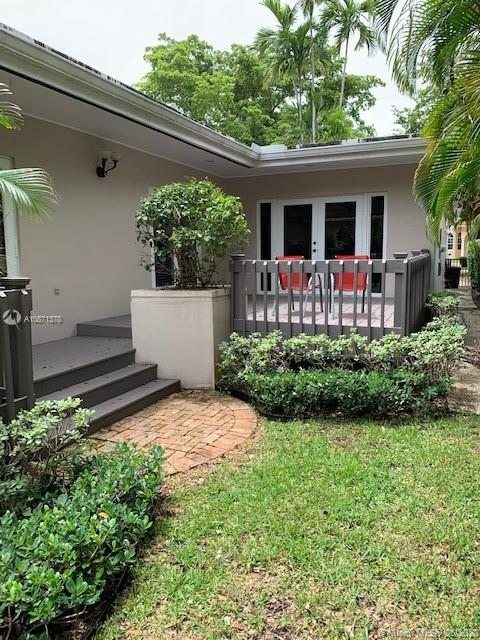 Updated 3/2 home in the heart of Coral Gables within walking distance of Miracle Mile. Porte Cochere gives feel of grand entrance on spacious corner lot. Original hardwood floors and charming original fireplace. Formal living room, dining room, eat in kitchen with new cabinets and quartz counter tops. Spacious family room. Large master bedroom with double doors to deck and large windows for lots of extra light. Walk in closet with built in’s and updated master ensuite bathroom with jacuzzi tub, high end fixtures, custom cabinetry. Second bedroom fits a king size bed with large closet. Hallway bath newly renovated with walk in shower. New outdoor deck with beautiful landscaped fenced yard for privacy. Impact windows and doors, newer roof. Ready for new owner! Priced to sell won’t last!