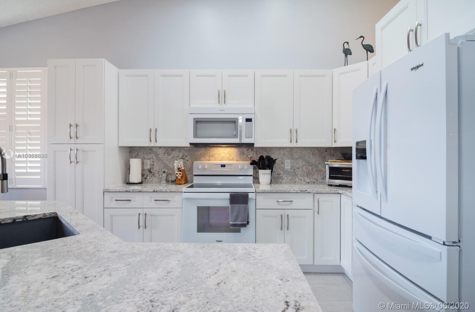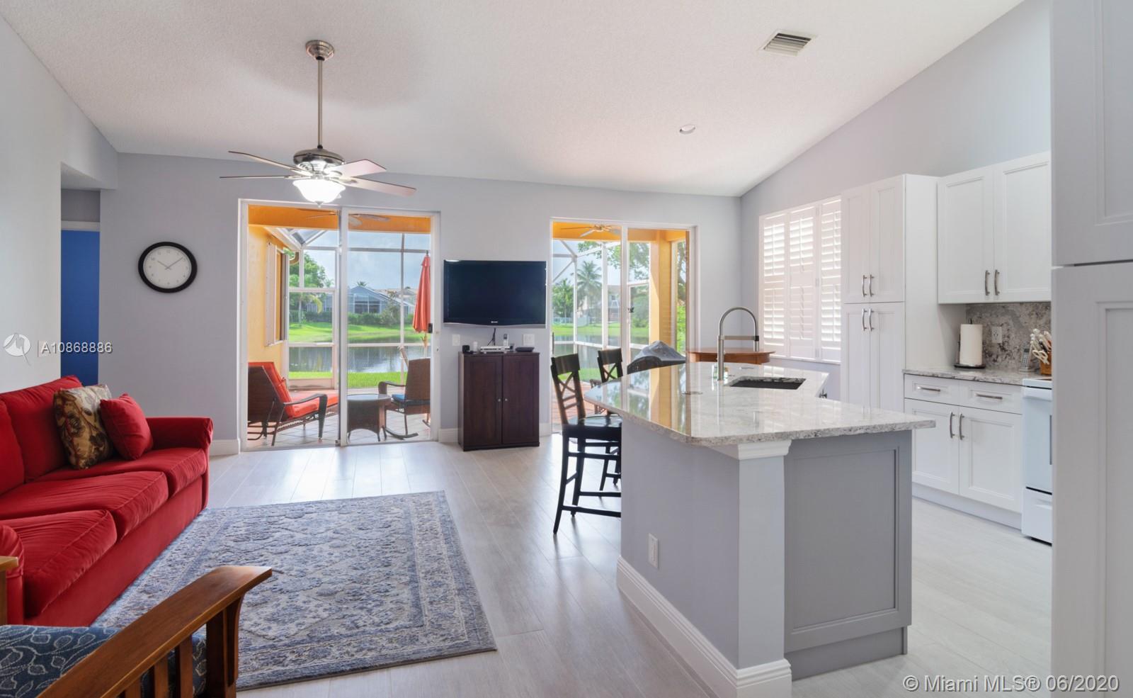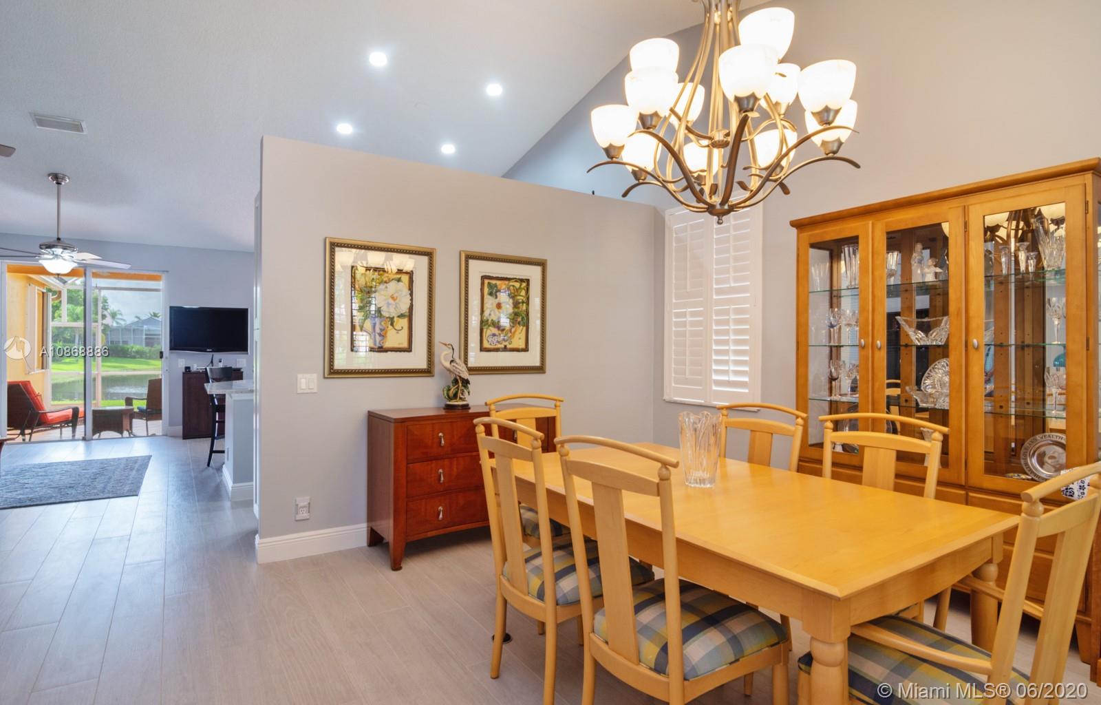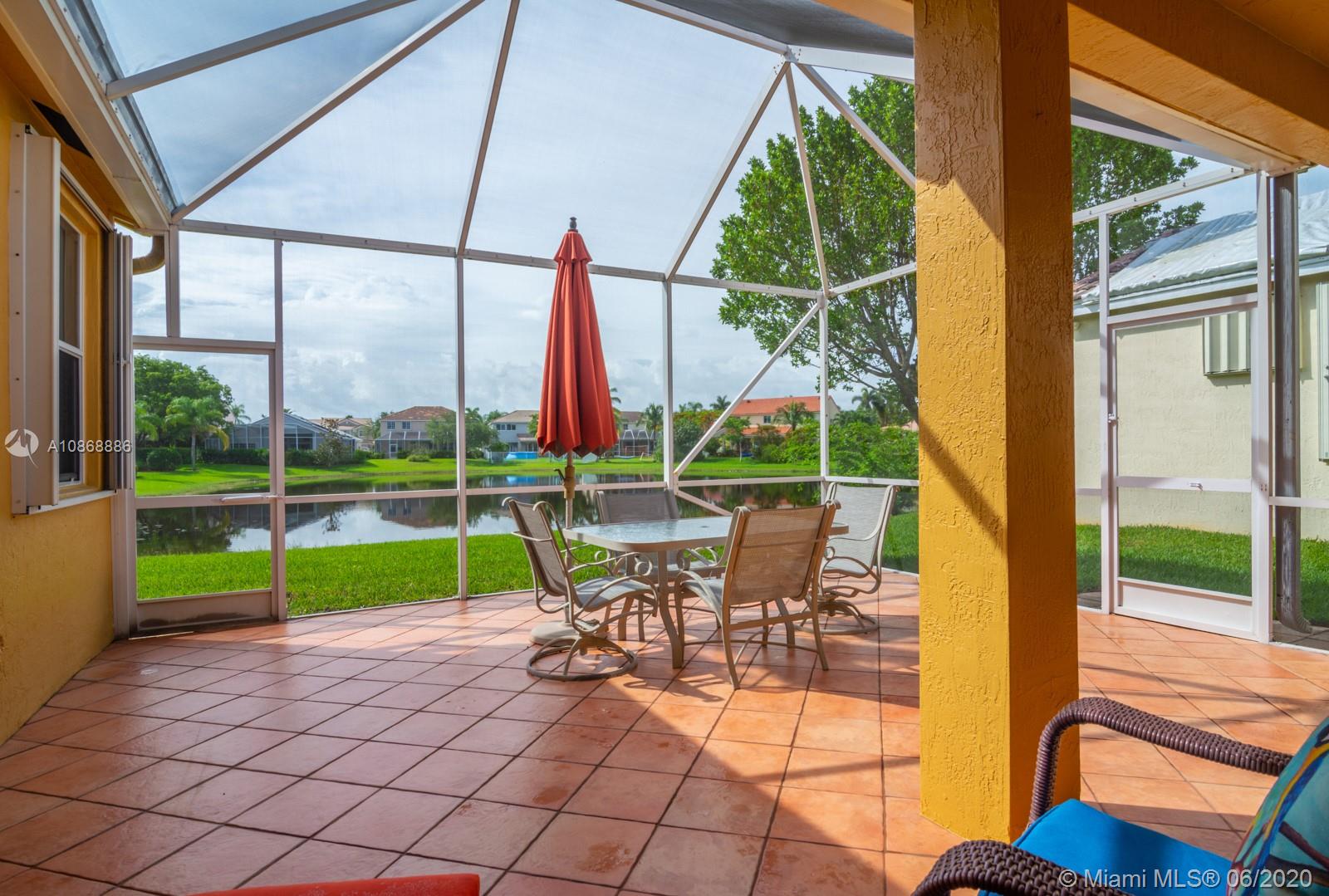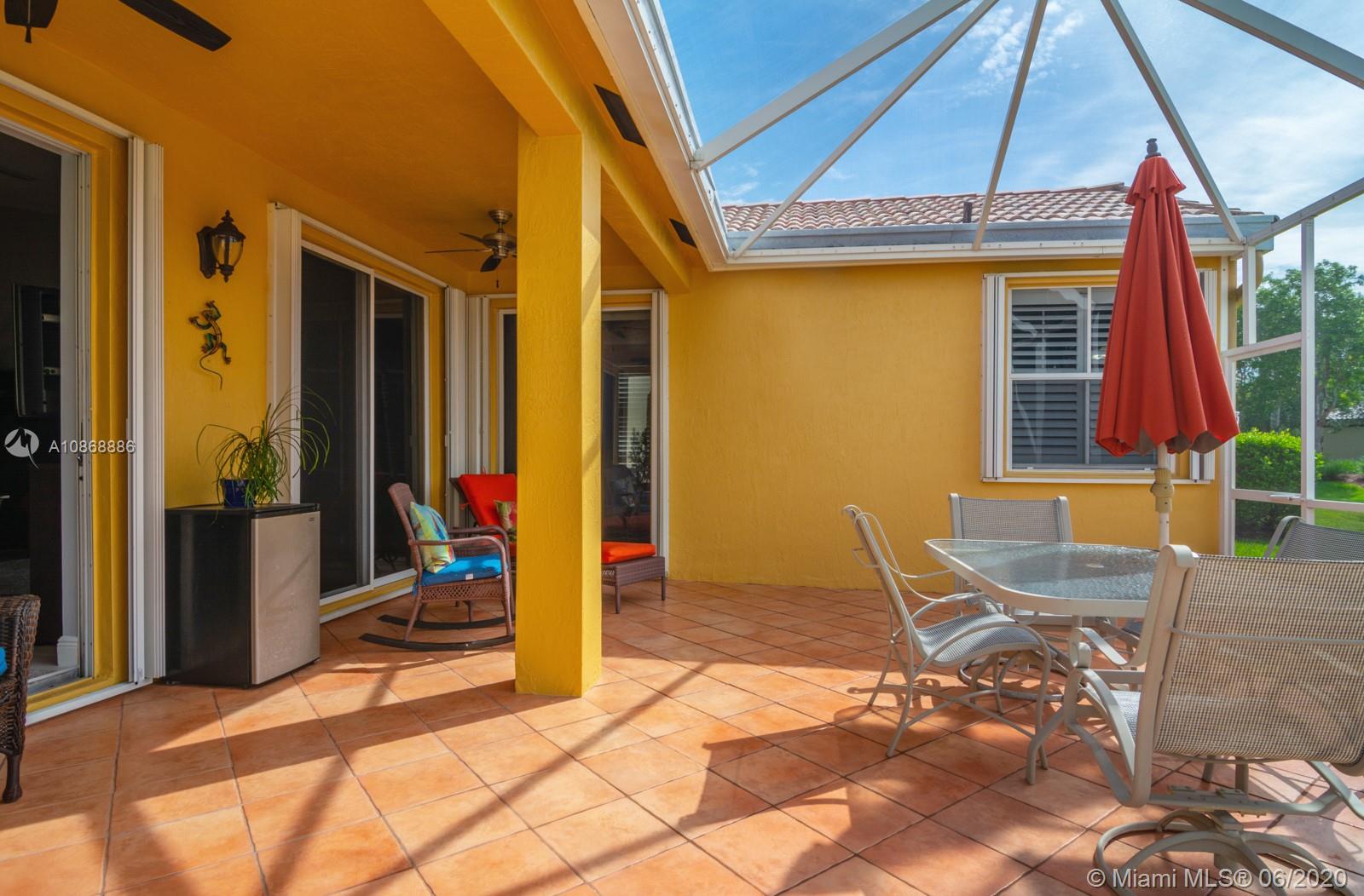 Pristine updated home with tranquil lake view. Kitchen has Cambria quartz countertops, back splash and Jarlin cabinets, Blanco granite sink and faucet, six panel doors with Baldwin brass handles and hinges. Open floor plan, double sliding doors to patio with lake brightening the living and kitchen areas. Plantation shutters in all rooms, walk-in closets, separate laundry room, porcelain rectified tile, laminate floors in bedrooms. Master bath with custom Wolf in the Wood cabinetry, porcelain rectified tile, custom blue pearl granite imported from Norway, marine grade plywood for extra humidity control, whirlpool tub, walk-in shower. Entire house has hurricane accordion shutters, coach lights and porch lights on front porch and patio, new AC unit. Great community with all A+ Schools