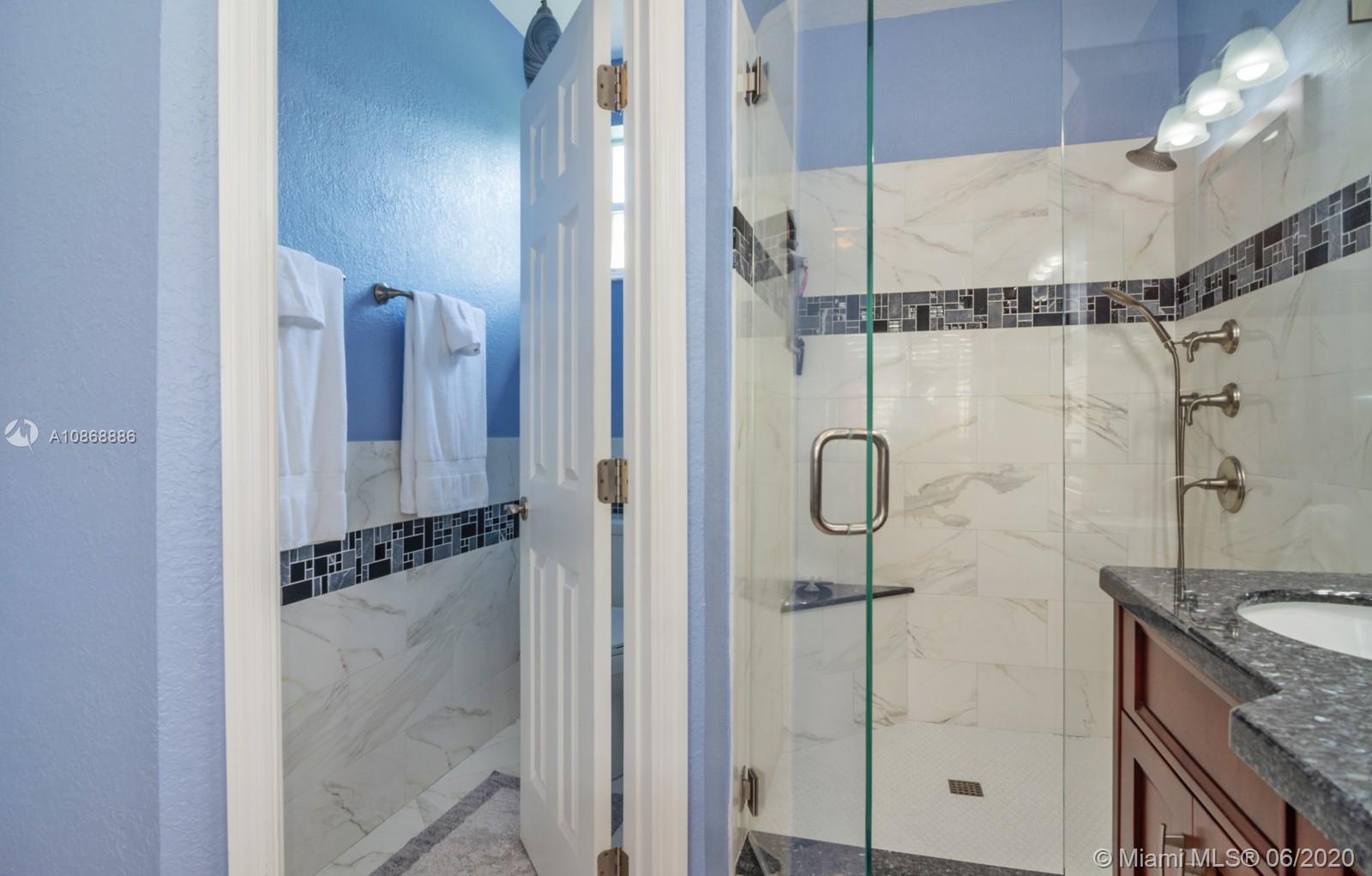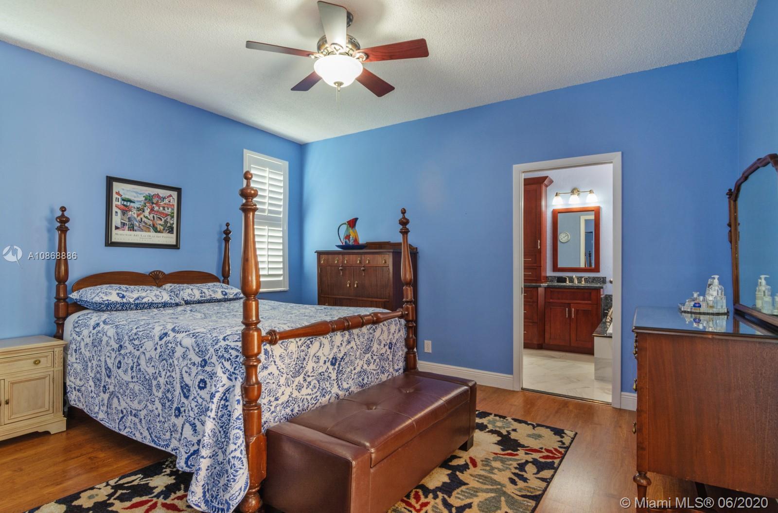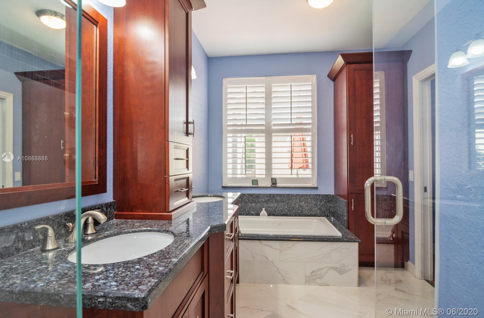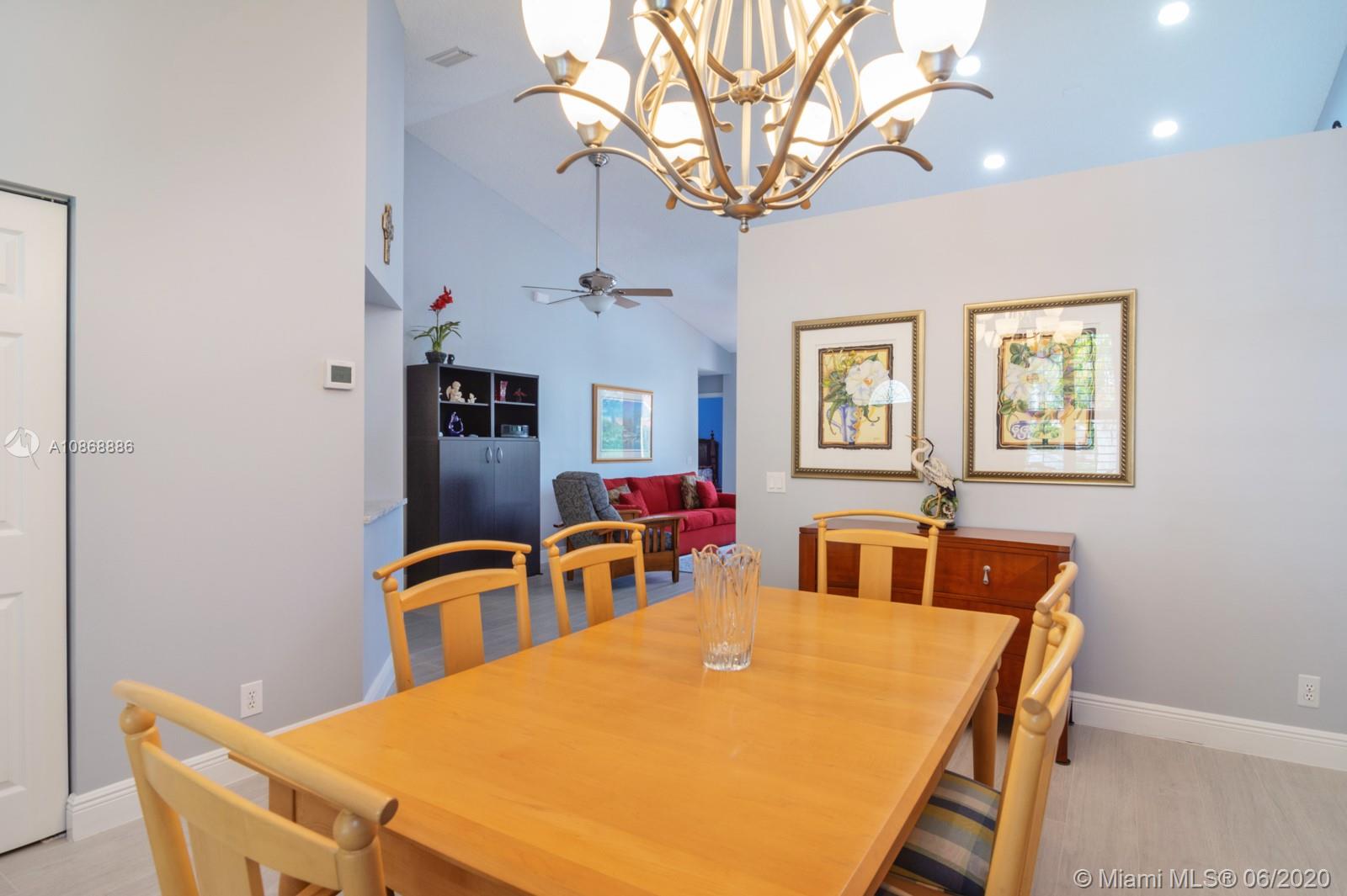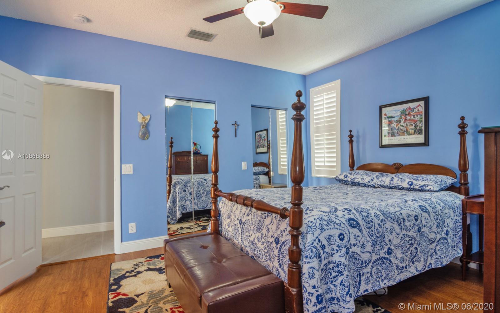 Pristine updated home with tranquil lake view. Kitchen has Cambria quartz countertops, back splash and Jarlin cabinets, Blanco granite sink and faucet, six panel doors with Baldwin brass handles and hinges. Open floor plan, double sliding doors to patio with lake brightening the living and kitchen areas. Plantation shutters in all rooms, walk-in closets, separate laundry room, porcelain rectified tile, laminate floors in bedrooms. Master bath with custom Wolf in the Wood cabinetry, porcelain rectified tile, custom blue pearl granite imported from Norway, marine grade plywood for extra humidity control, whirlpool tub, walk-in shower. Entire house has hurricane accordion shutters, coach lights and porch lights on front porch and patio, new AC unit. Great community with all A+ Schools