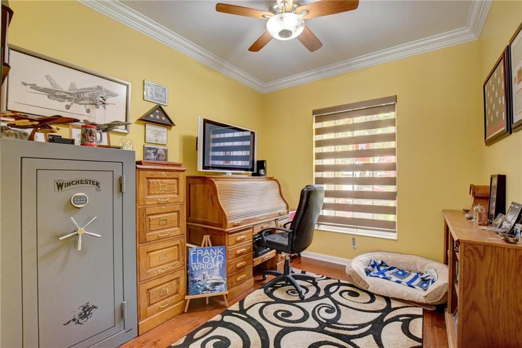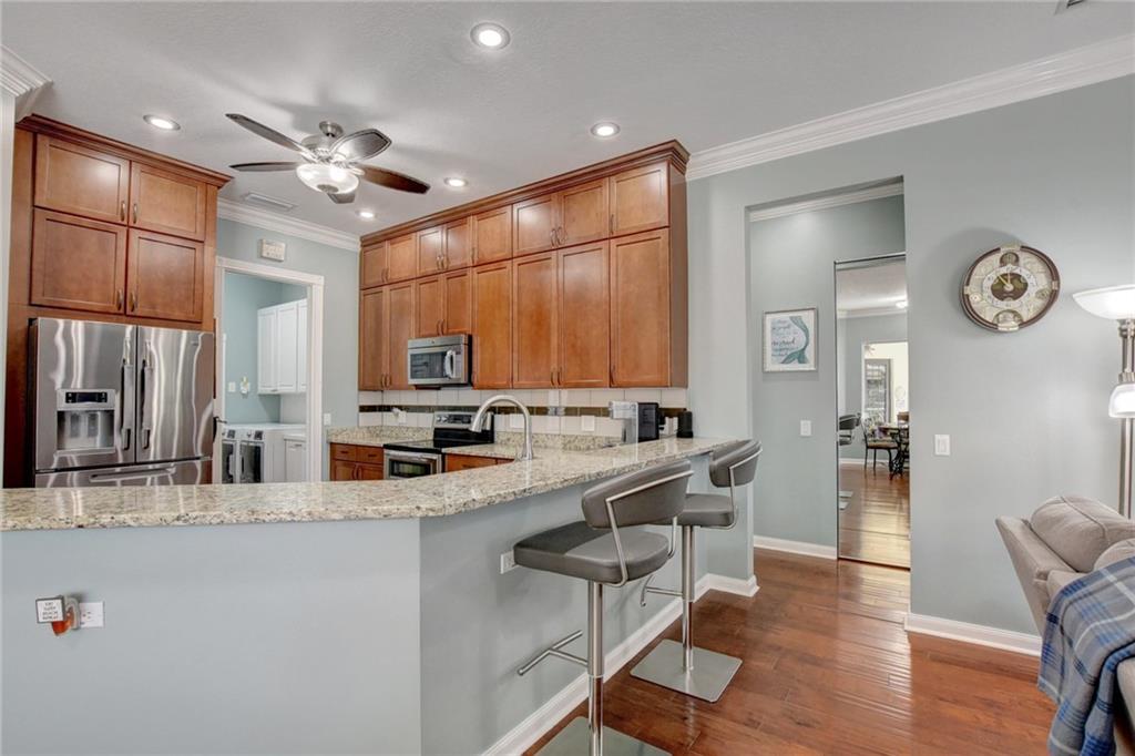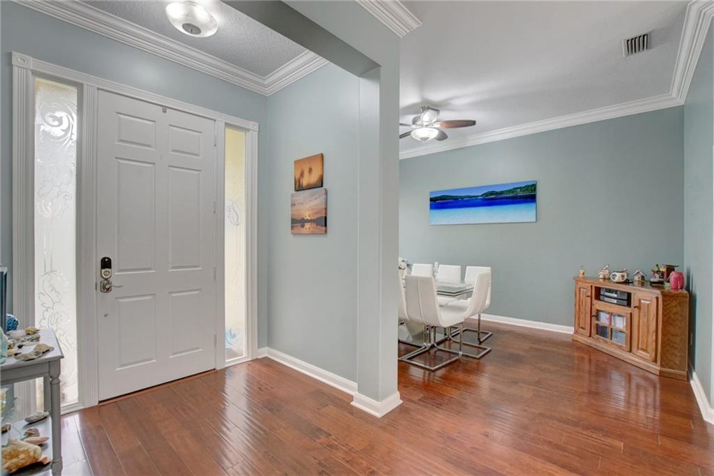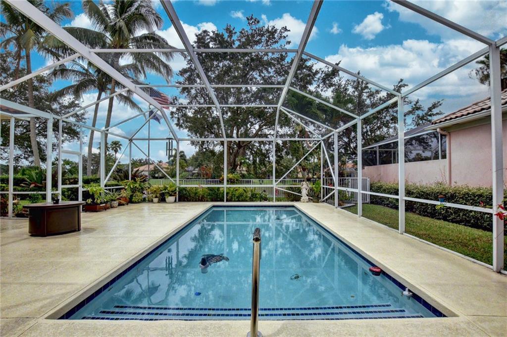 Step in to your new home! This highly updated Windsor shows like a model. Features include gorgeous wood flooring throughout, overlooking lake views & a pool. The kitchen boasts custom cabinetry, high end granite, designer finishes, double oven, custom breakfast bar, double dishwasher, updated stainless appliances, extra lighting & custom crown molding throughout the home. All sliders have been replaced with spectacular french doors all protected with accordian shutters & a generator for hurricane season! 4 bedrooms, plus a den & 3 full baths flow in a split plan for privacy. Newer A/C upgraded vents, central vac system & new marcite in the pool makes this home look & feel brand new. It is meticulously maintained, has absolutely everything for entertaining or enjoying your privacy.