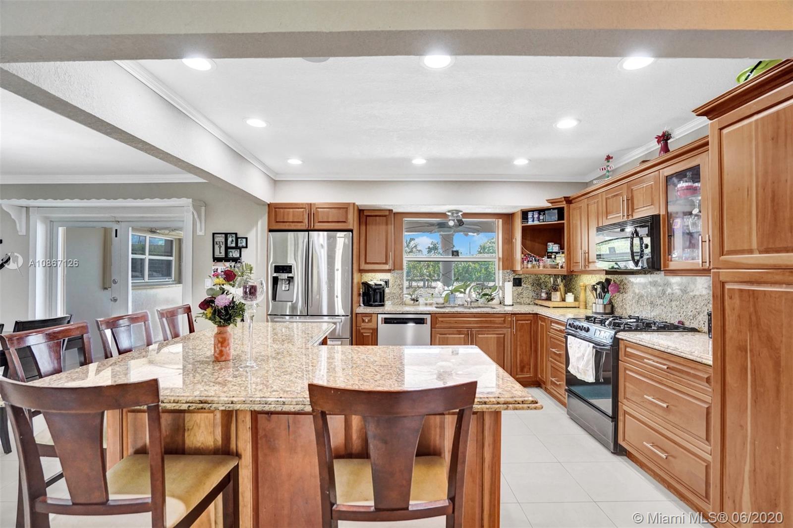 Beautifully updated 4/3 pool home on the water. This one has it all from the open floor plan, perfect for entertaining family & friends, to the beautifully updated kitchen with island custom built for a chef. This home features nicely tiled floors throughout, 5-ton AC, gas water, stainless steel appliances, kitchen has updated wood cabinets topped with granite, all 3 bathrooms updated. Outside is set up for entertaining family/friends with large covered patio & another stainless steel gourmet kitchen with granite counters. Backyard area as a large decking surrounding the heated pool/spa. Plenty of room & grassy area for pets & children to play outback. Home is on the water & perfect for a ride around the waterways of PASADENA LAKES. Home has full Hurricane protection & move-in condition.