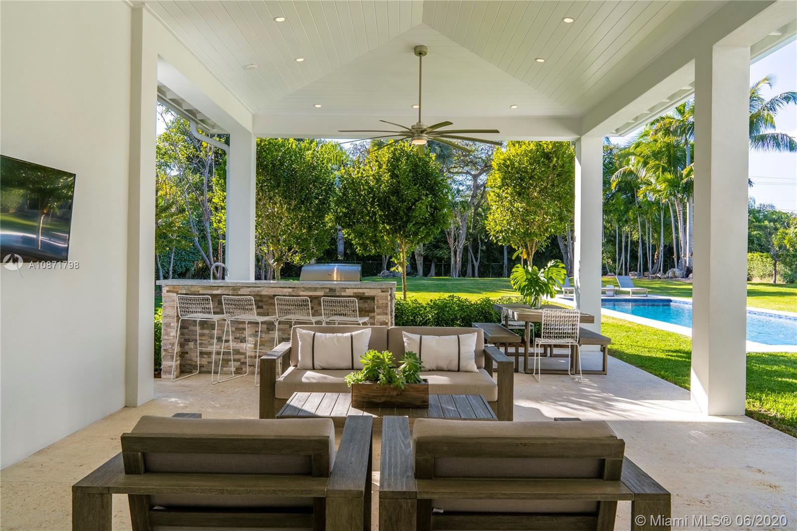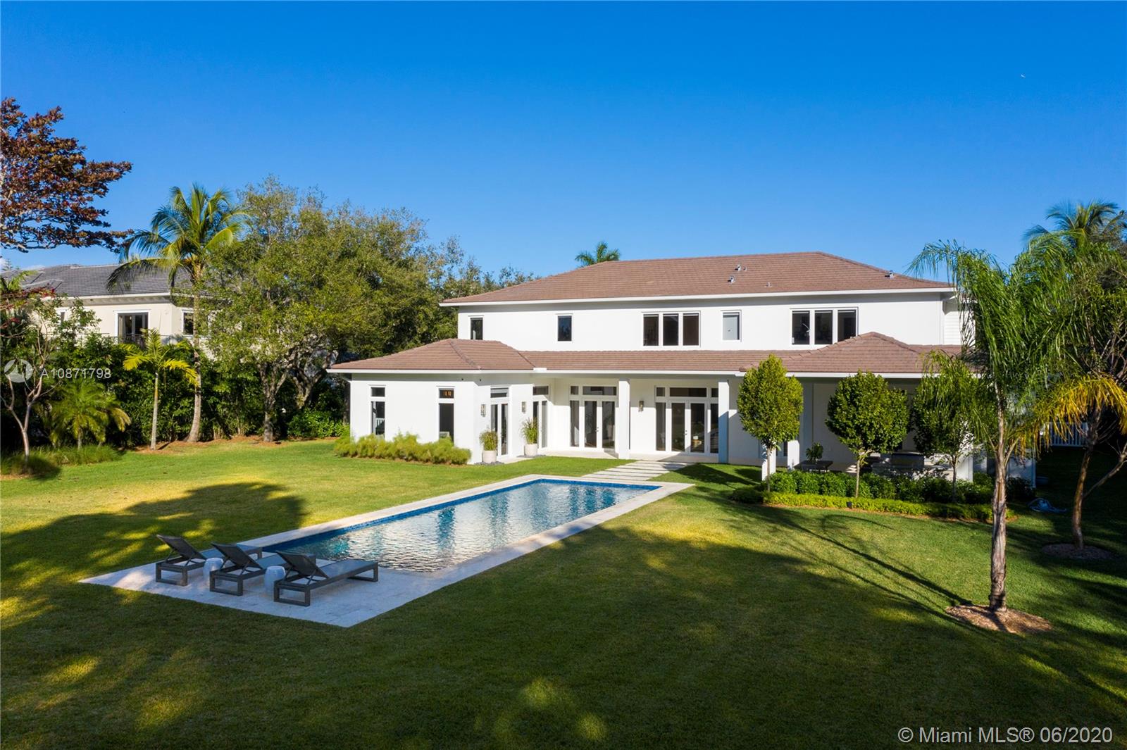 Gated Contemporary Plantation Estate completed 4th quarter 2018. Features include wire brushed white oak floors, coffered ceilings, custom cabinetry, designer lighting fixtures, chef's kitchen w/oversized island, Thermador appliances, gas range, pot filler faucet, 2 dishwashers, microwave drawer, and wine cooler, alarm/camera system, sound system, summer kitchen w/built-in gas grill and fridge, oversized pool with beautiful views to deep acre lot. In addition to the 6 bedrooms and 7.5 baths there is a formal living, formal dining, family room, game room, den, office, 2 laundry rooms and 3 car garage. As per appraisal liv sq. ft. 6,155 - adj. sf. ft. 6,752 - total sq. ft. 8,018 A pleasure to show! A must see!
