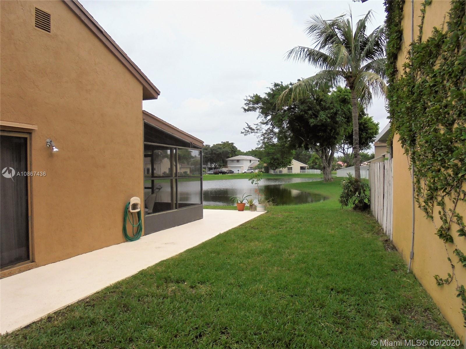 Cozy 3/2 on the water; screened porch overlooking the lake. Open floor plan with many upgrades. New master bath. Quartz counters. Roof replaced in 2007. A/C and water heater replaced in 2015. Garage converted to den and 1/2 bath. Could be 4th bedroom. Property adjoins a green space. Close to shopping, interstate highways, IKEA and Sawgrass Mills. Hurricane Shutters. No Flood Insurance required. Low HOA Fees and No Approval Required. Get it while you can!