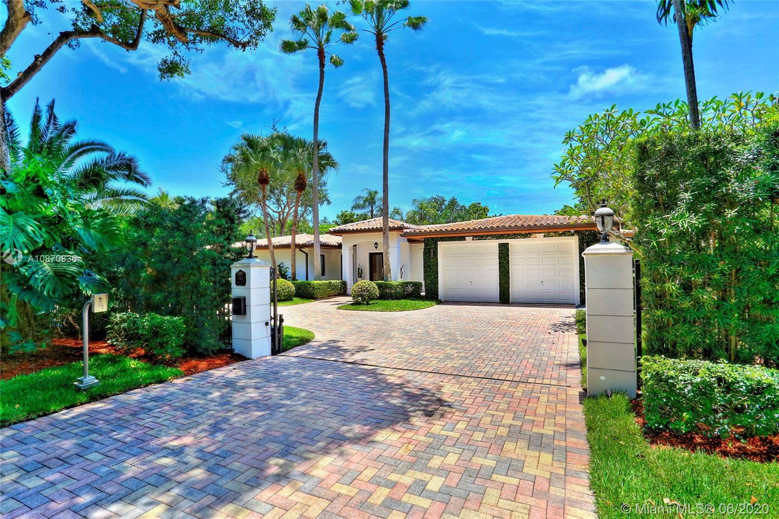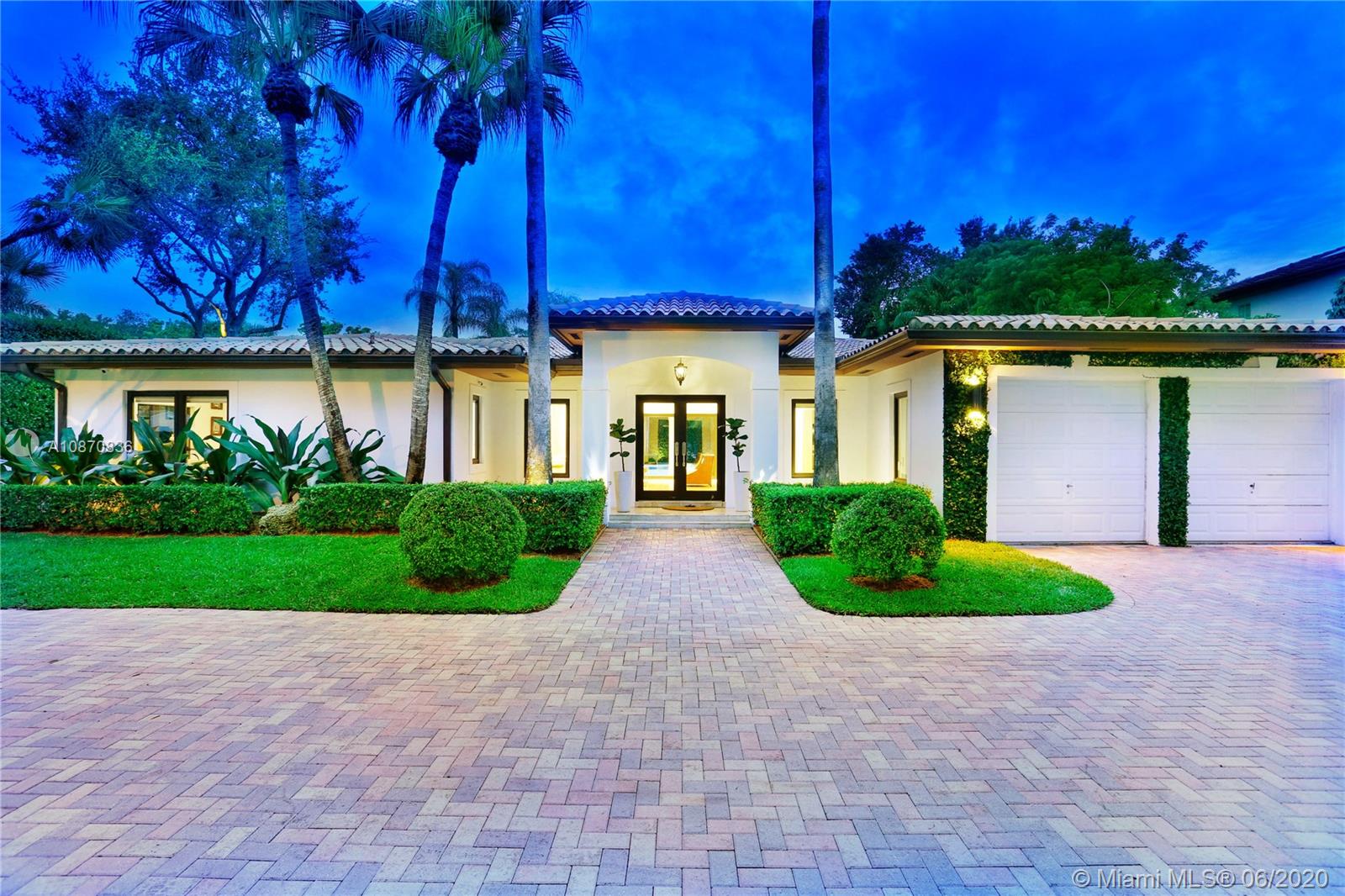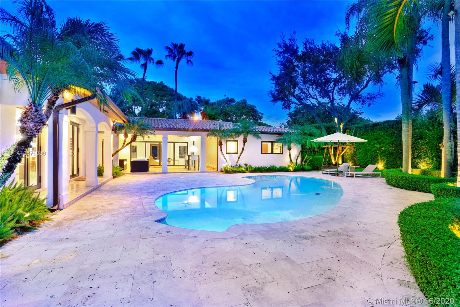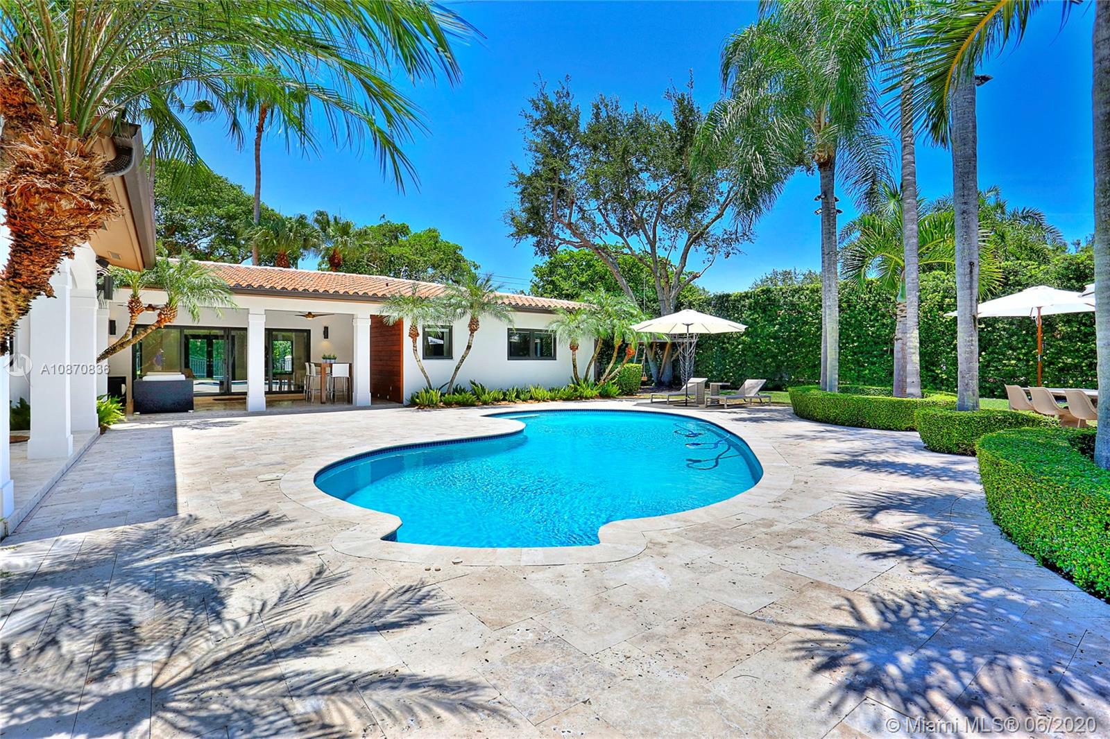 This magnificent 5 beds/4.5 baths gated smart home with pool is nestled on a 19,215 sq ft lot in the desirable Ponce-Davis Platinum Triangle of Coral Gables. Updated beautifully with lots of custom amenities will captivate you from its oversized circular driveway to its gorgeous backyard surrounded by lush tall privacy hedges! Features: 2-car garage, new impact windows & glass doors & shades, custom-built sleek kitchen with wood European cabinetry, quartz counter-tops, Viking appliances, high ceilings, working fireplace. Lots of techy systems: cameras, wireless alarm, intercom, smart control app. The Master suite has 2 custom-built walk-in closets, dual sinks, whirlpool tub & separate shower. Others: laundry room, linear air vents, partial generator, salt-water heated pool.