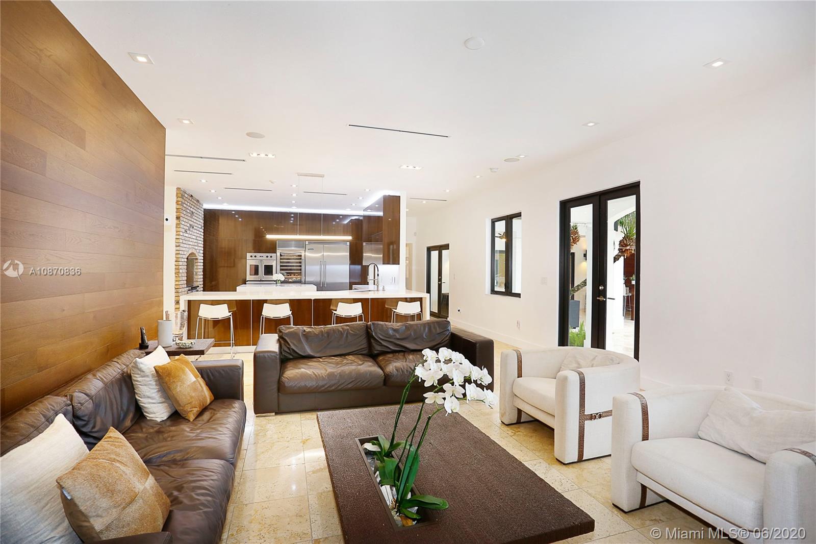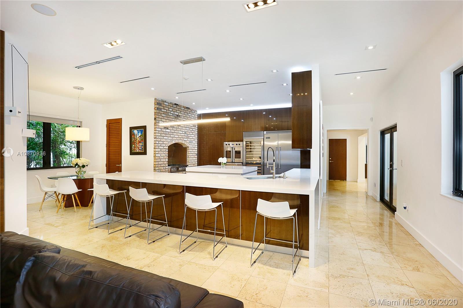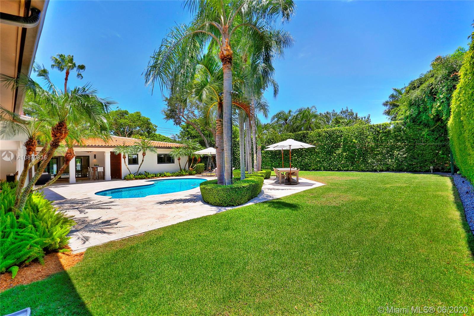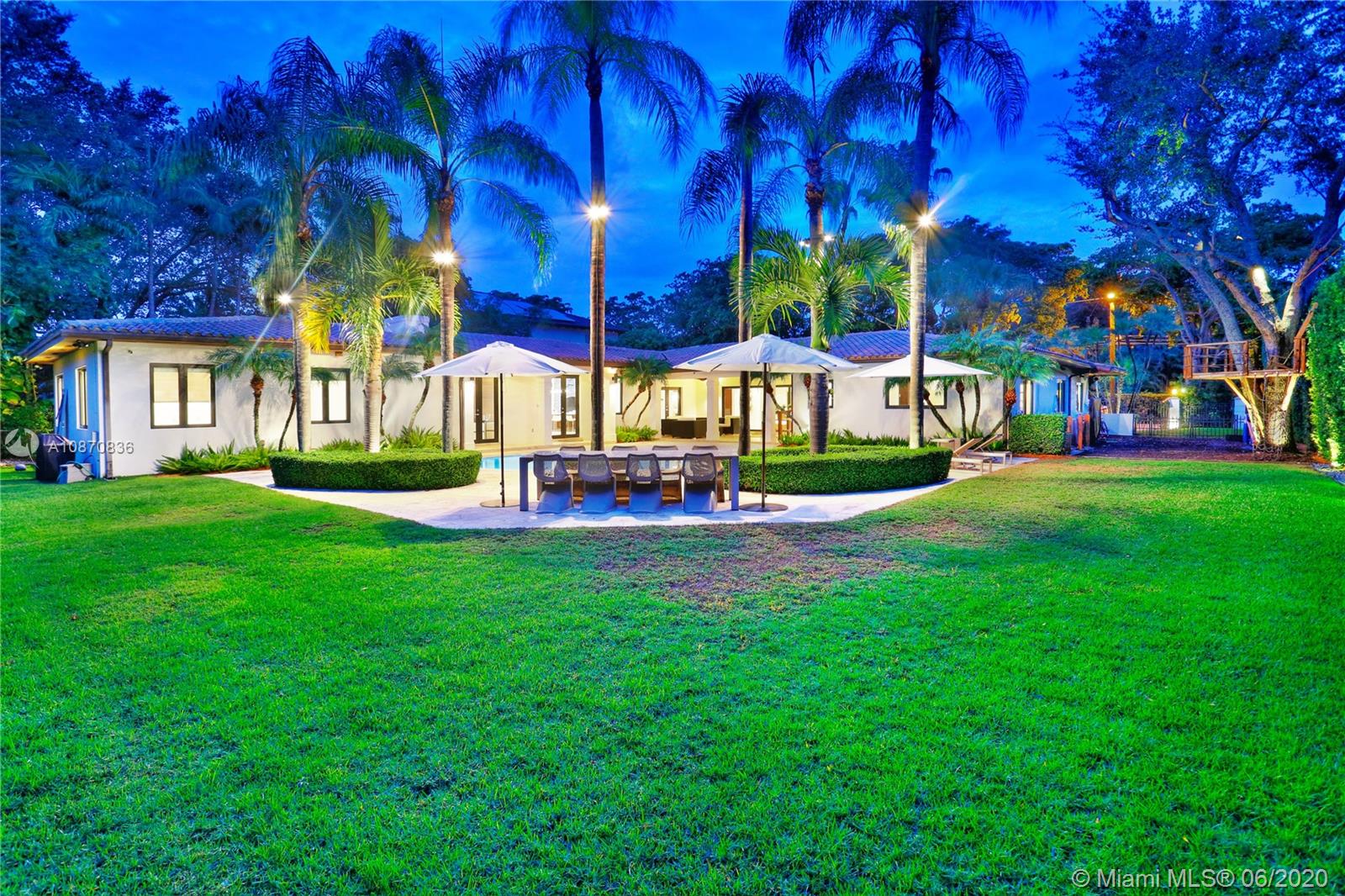This magnificent 5 beds/4.5 baths gated smart home with pool is nestled on a 19,215 sq ft lot in the desirable Ponce-Davis Platinum Triangle of Coral Gables. Updated beautifully with lots of custom amenities will captivate you from its oversized circular driveway to its gorgeous backyard surrounded by lush tall privacy hedges! Features: 2-car garage, new impact windows & glass doors & shades, custom-built sleek kitchen with wood European cabinetry, quartz counter-tops, Viking appliances, high ceilings, working fireplace. Lots of techy systems: cameras, wireless alarm, intercom, smart control app. The Master suite has 2 custom-built walk-in closets, dual sinks, whirlpool tub & separate shower. Others: laundry room, linear air vents, partial generator, salt-water heated pool.