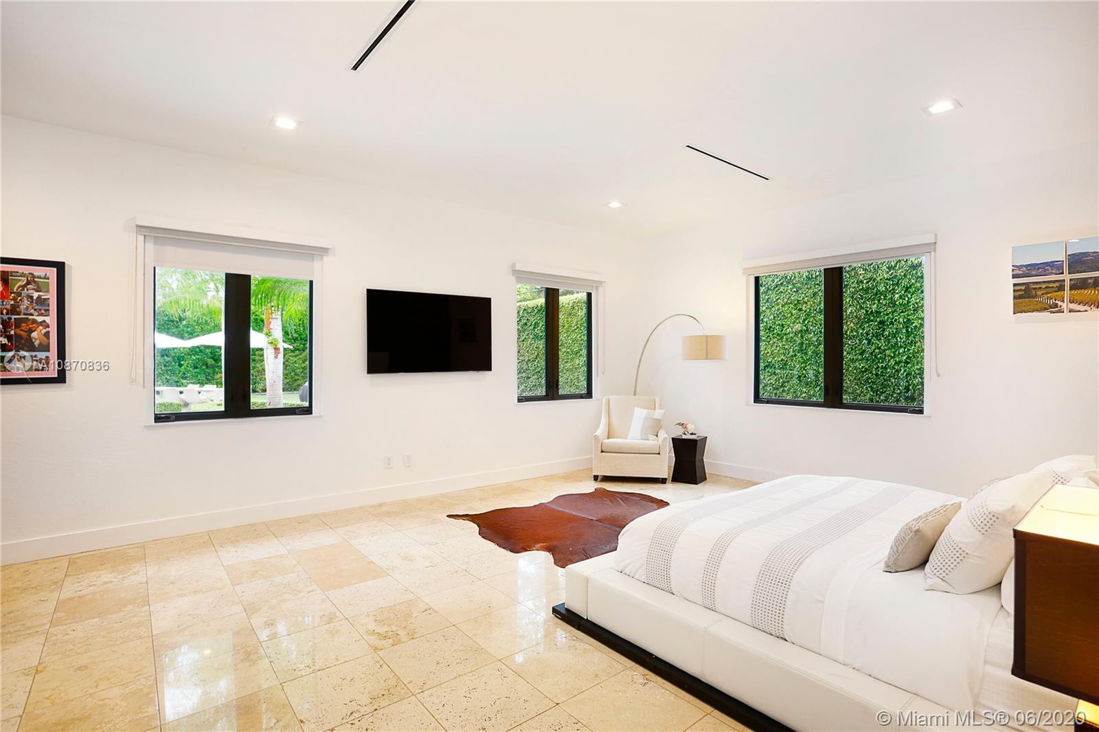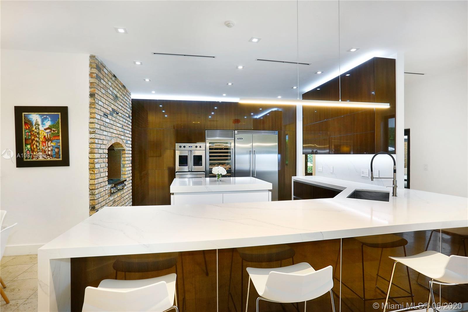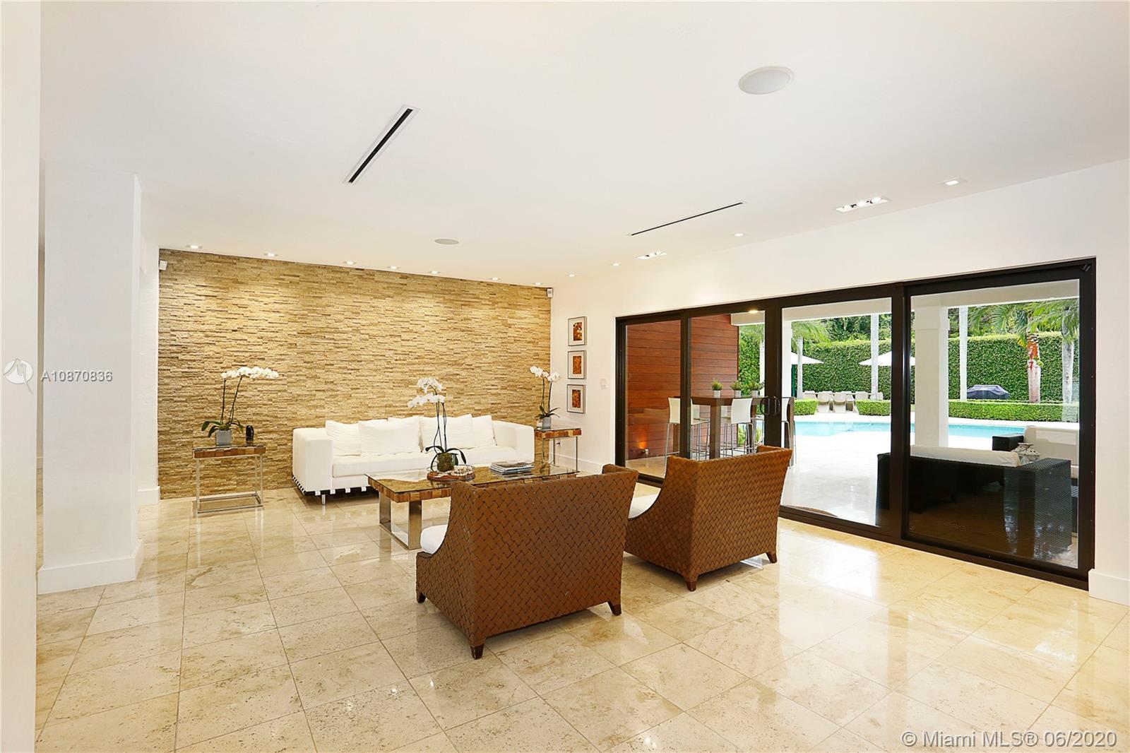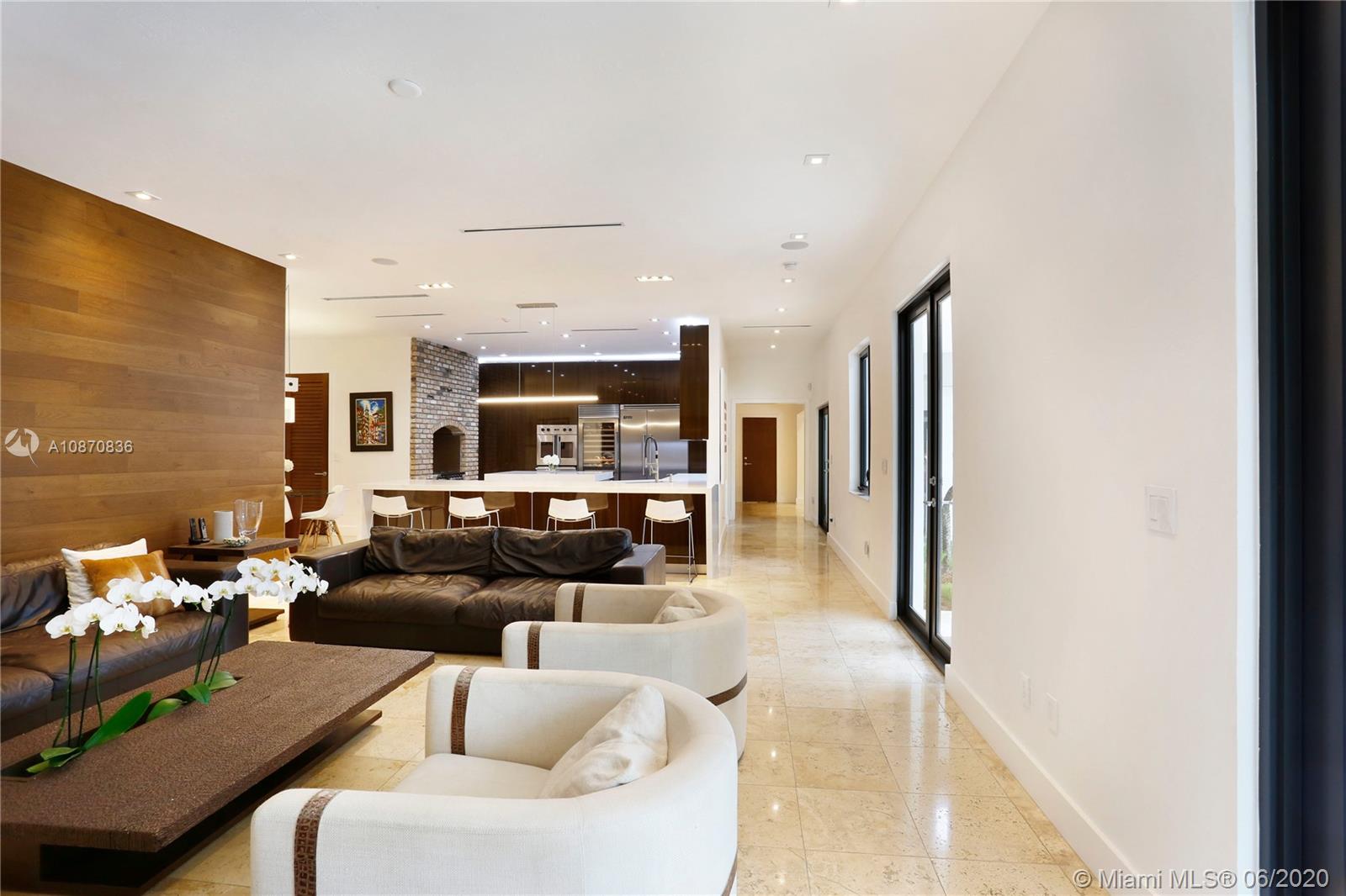 This magnificent 5 beds/4.5 baths gated smart home with pool is nestled on a 19,215 sq ft lot in the desirable Ponce-Davis Platinum Triangle of Coral Gables. Updated beautifully with lots of custom amenities will captivate you from its oversized circular driveway to its gorgeous backyard surrounded by lush tall privacy hedges! Features: 2-car garage, new impact windows & glass doors & shades, custom-built sleek kitchen with wood European cabinetry, quartz counter-tops, Viking appliances, high ceilings, working fireplace. Lots of techy systems: cameras, wireless alarm, intercom, smart control app. The Master suite has 2 custom-built walk-in closets, dual sinks, whirlpool tub & separate shower. Others: laundry room, linear air vents, partial generator, salt-water heated pool.